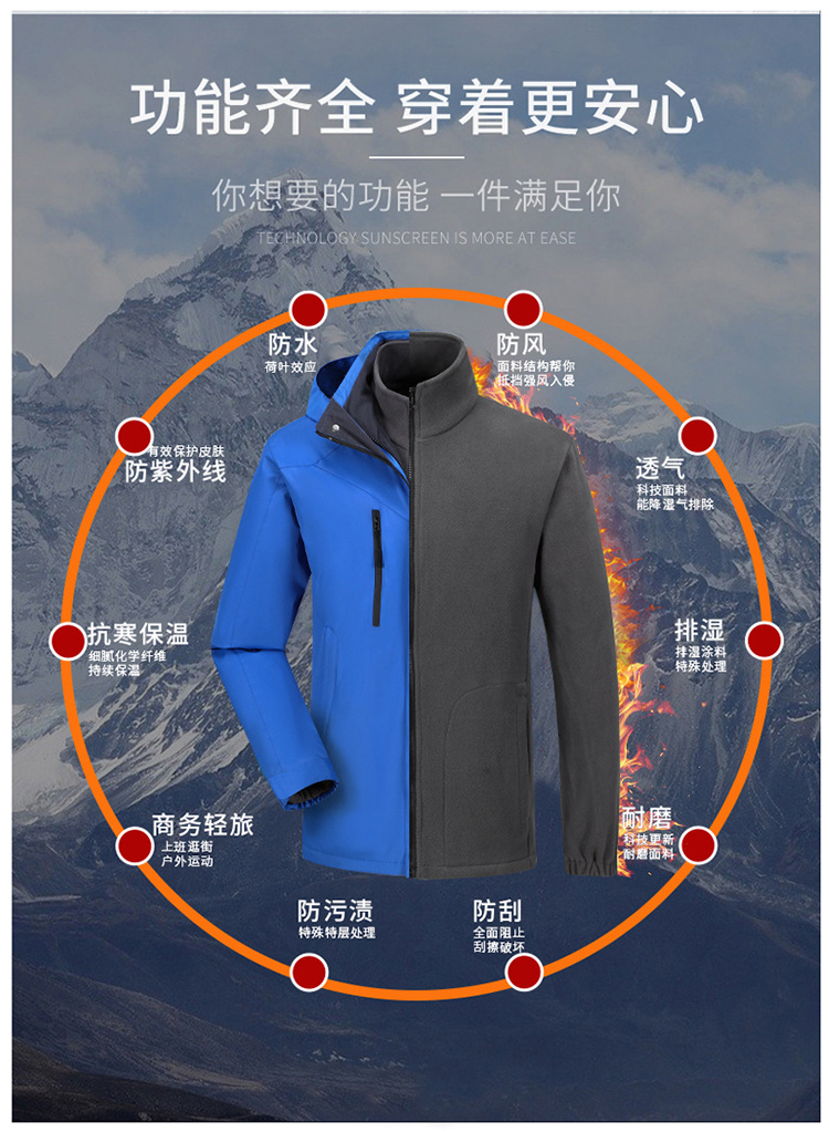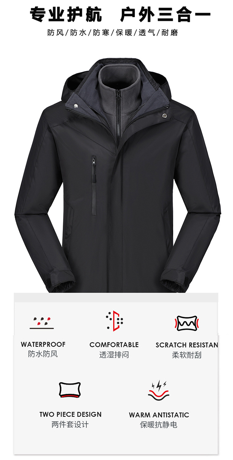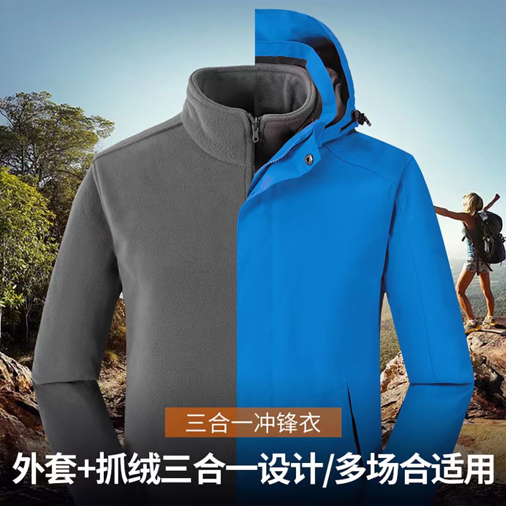 户外新冲锋衣三合一可拆卸登山服秋冬季男女同款防风防水保暖外套