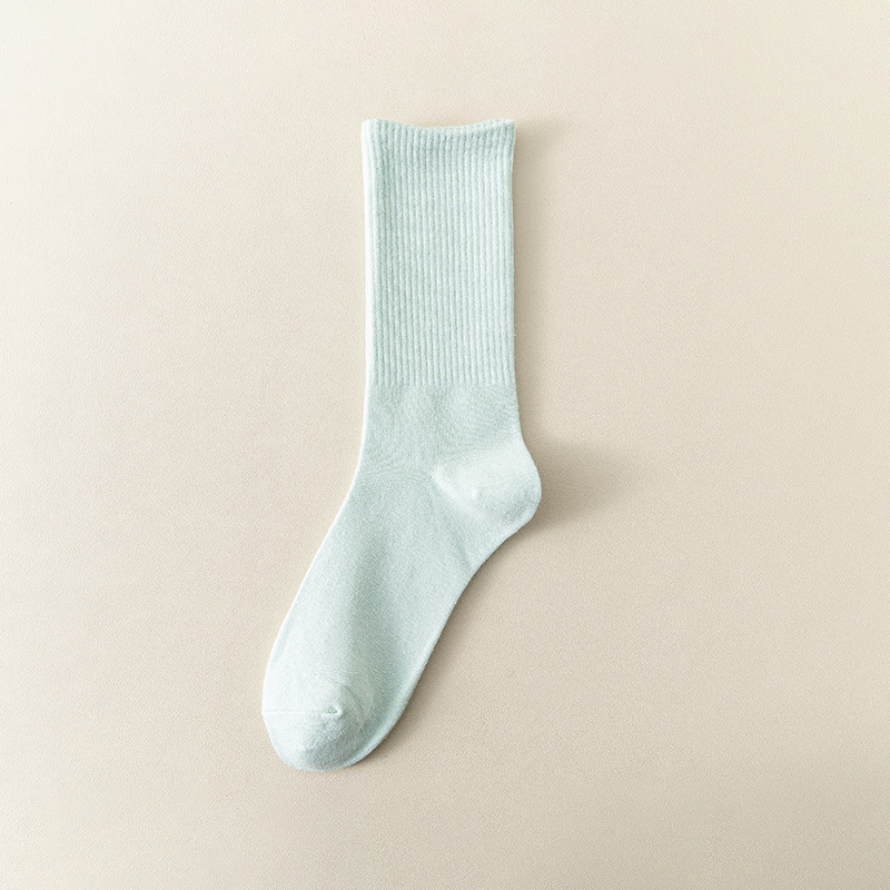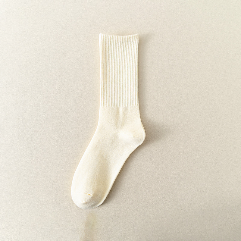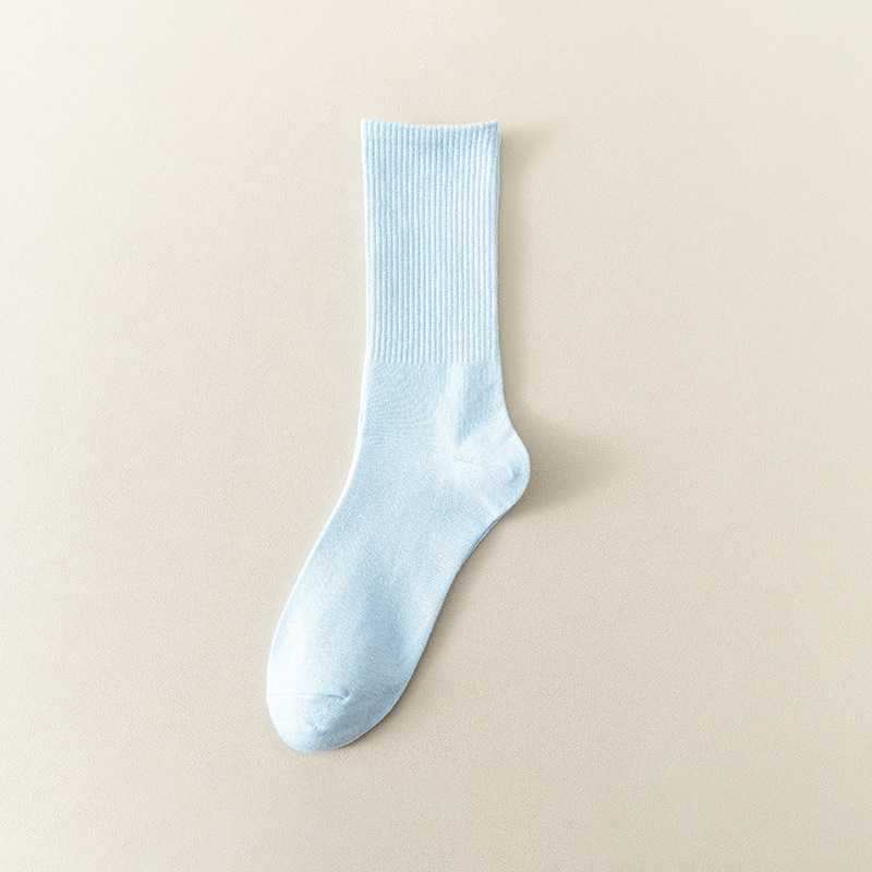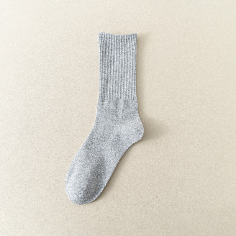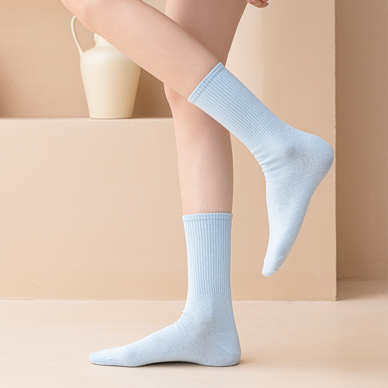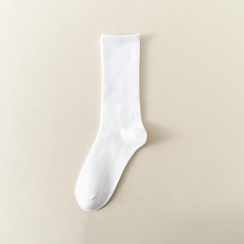 MeetStory情侣运动袜全棉纯色中筒袜长透气吸汗男女士袜子