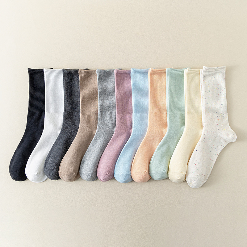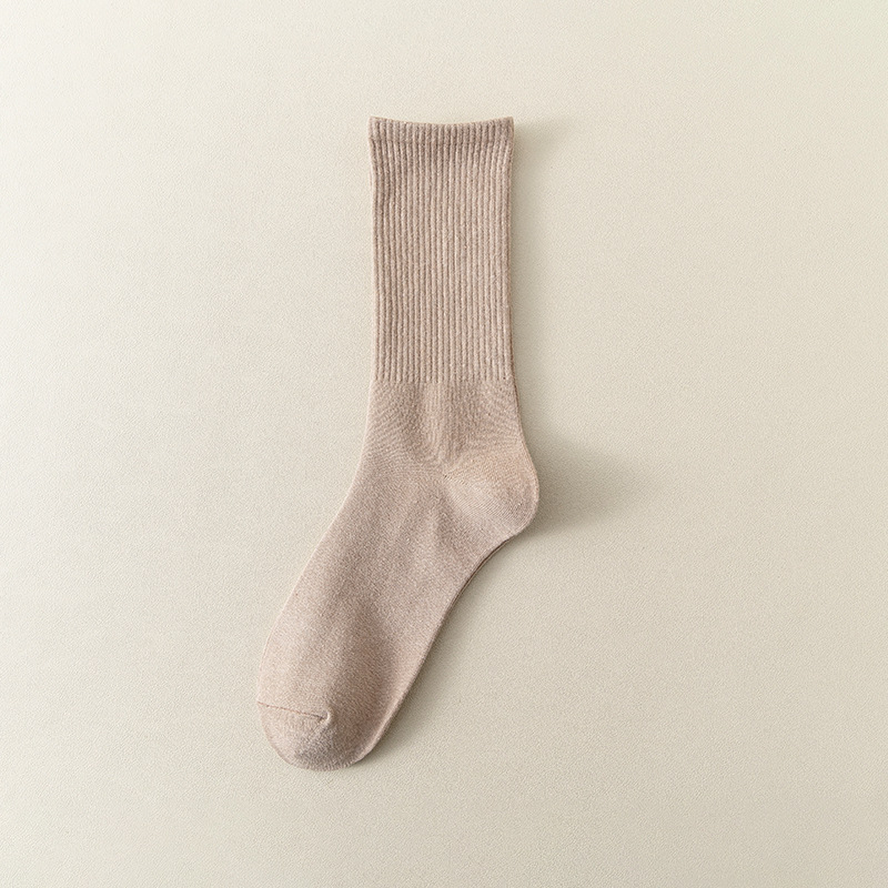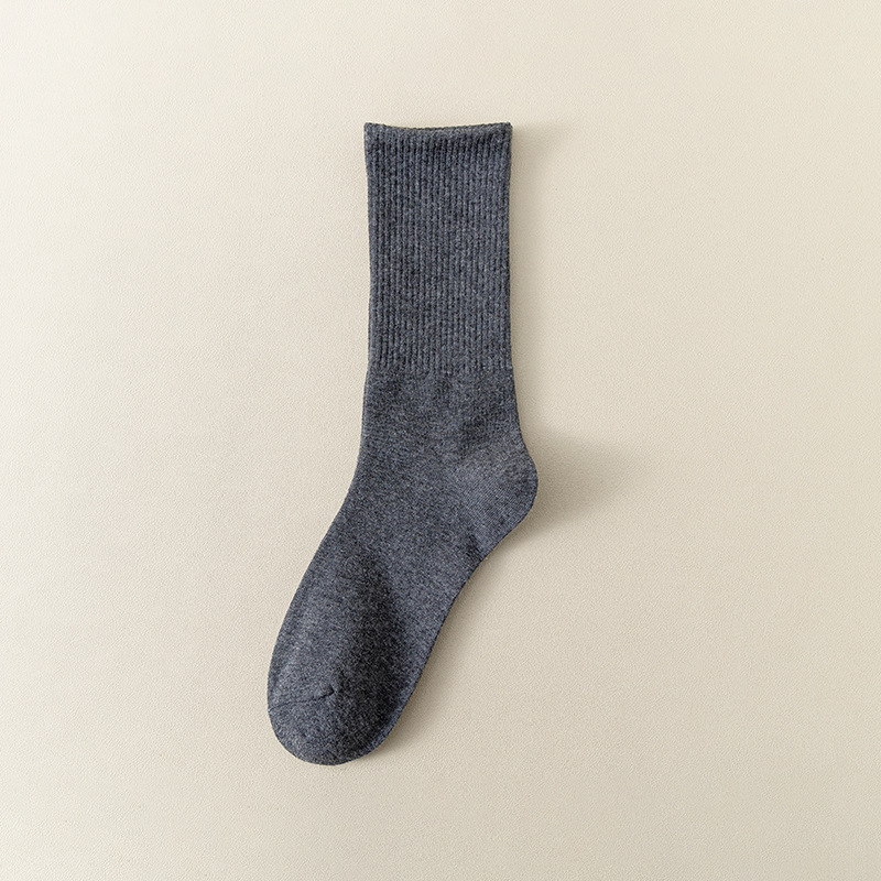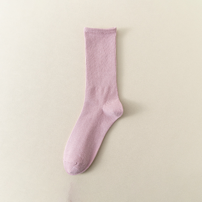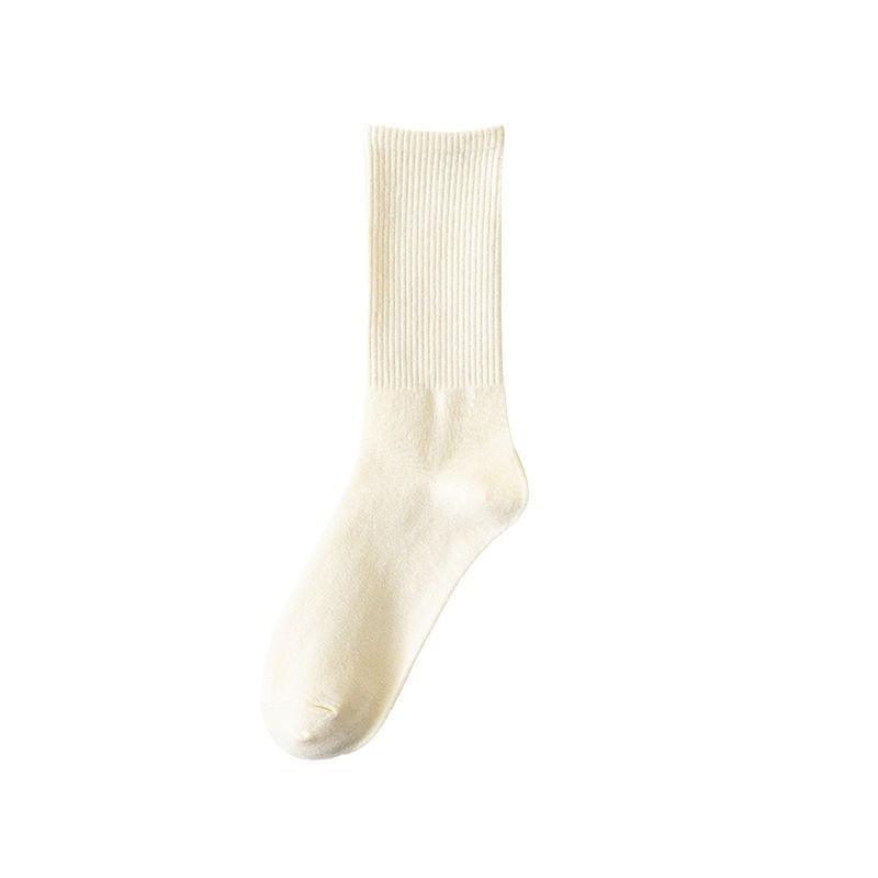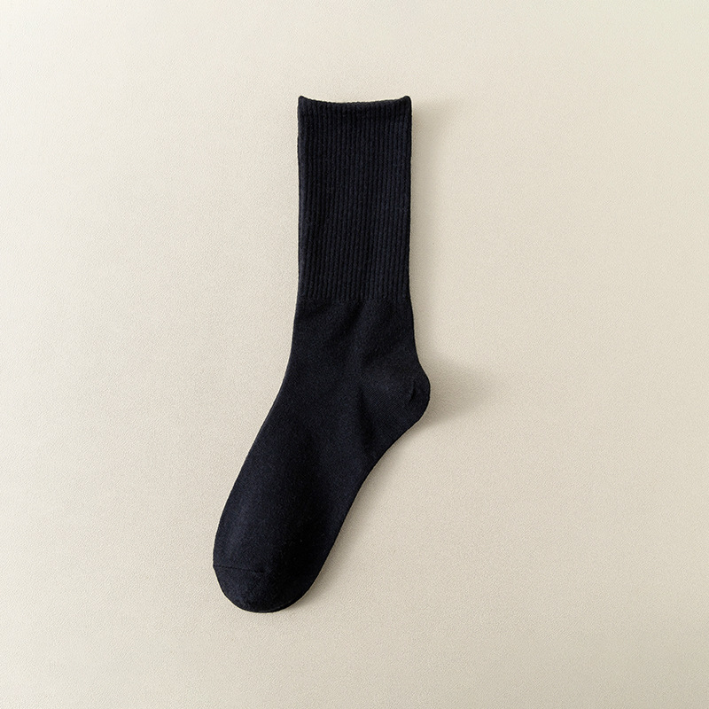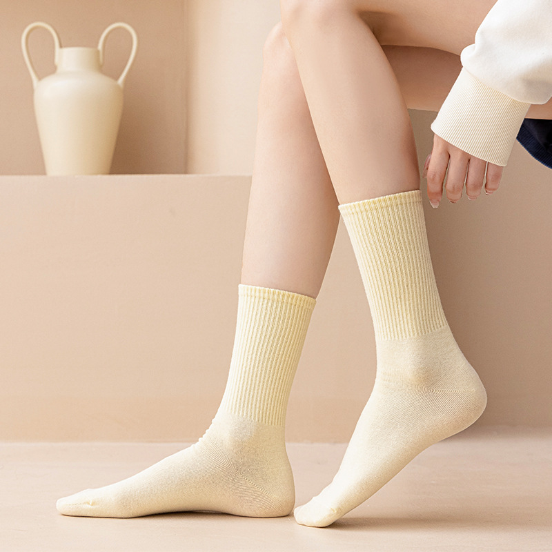 MeetStory情侣运动袜全棉纯色中筒袜长透气吸汗男女士袜子