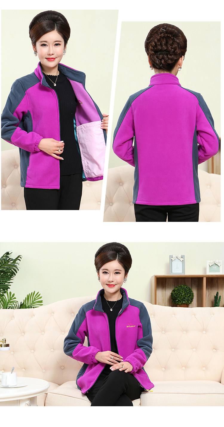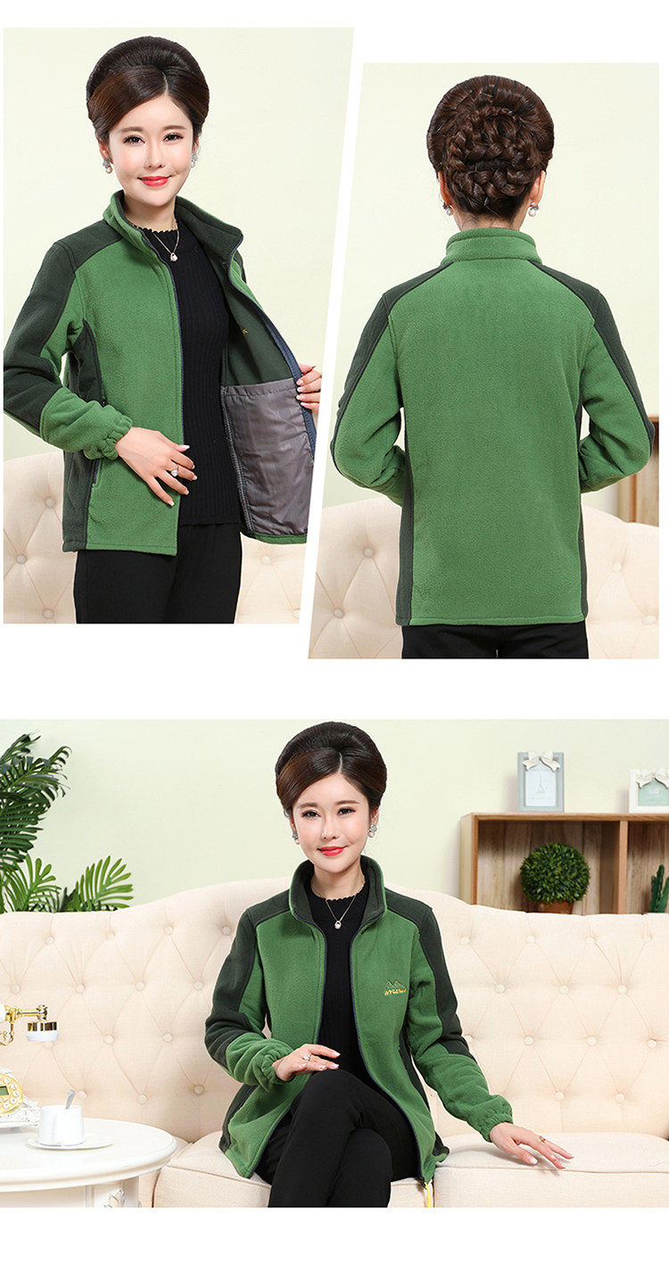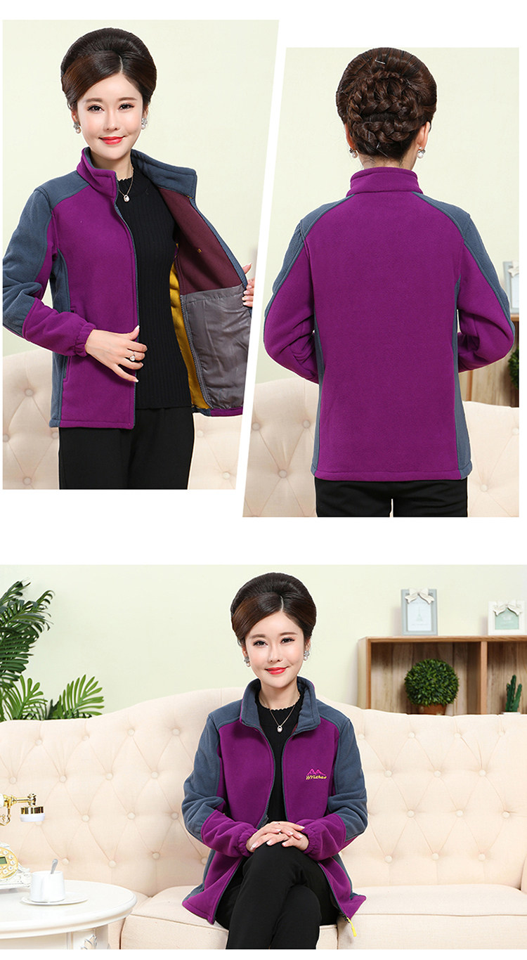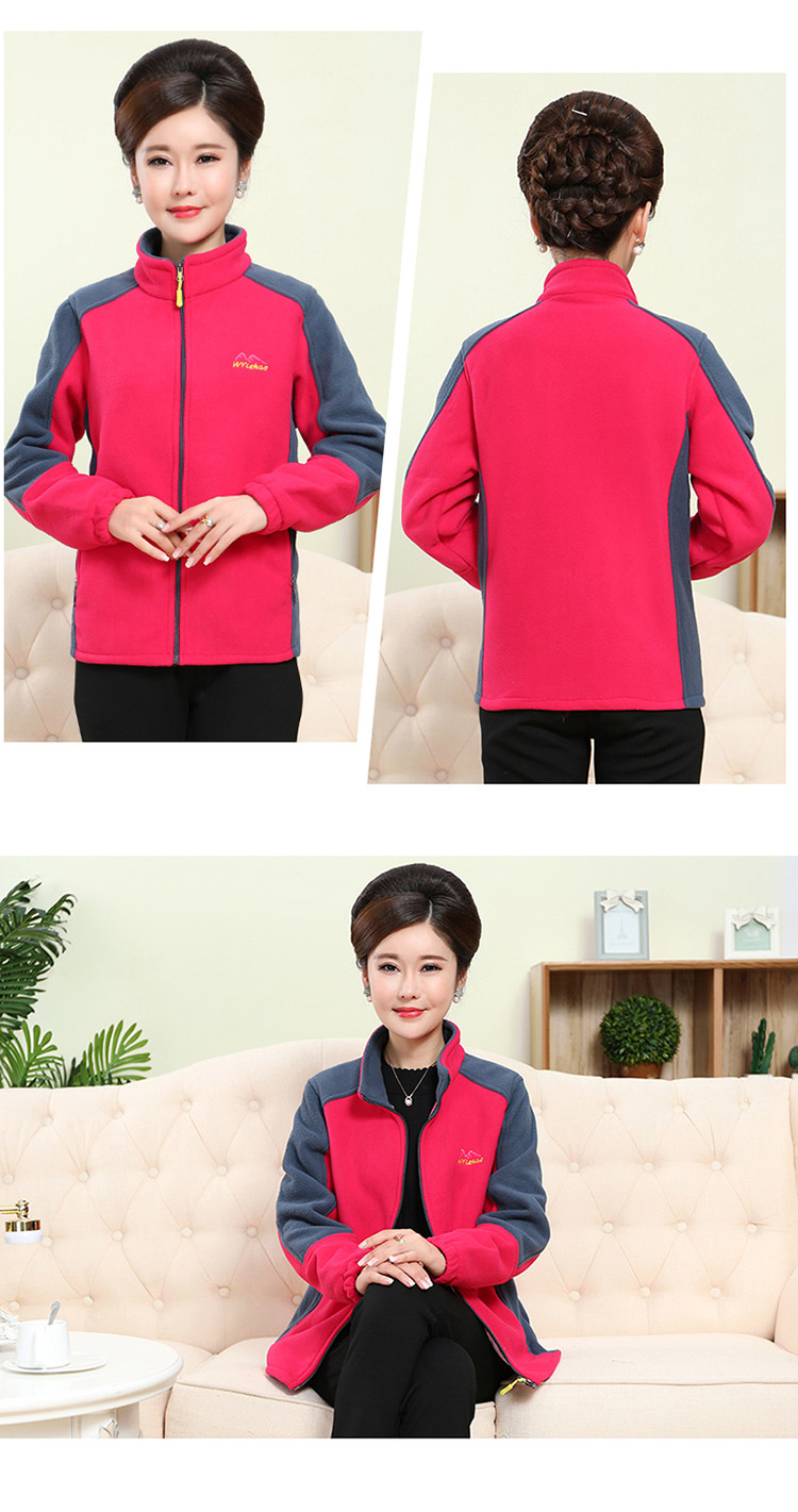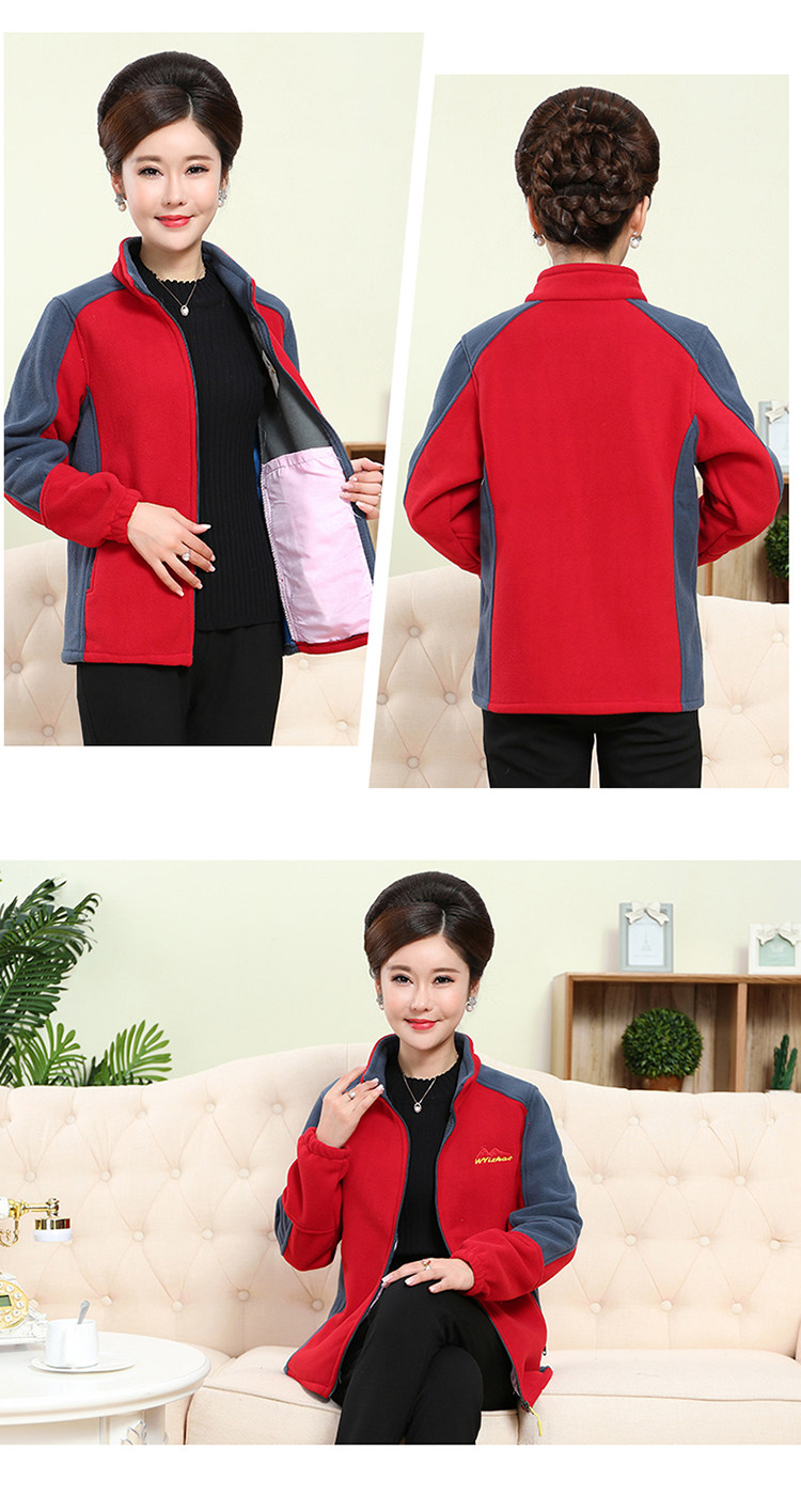 中老年户外抓绒妈妈装保暖拼色女大码开衫拉链立领加厚摇粒绒外套