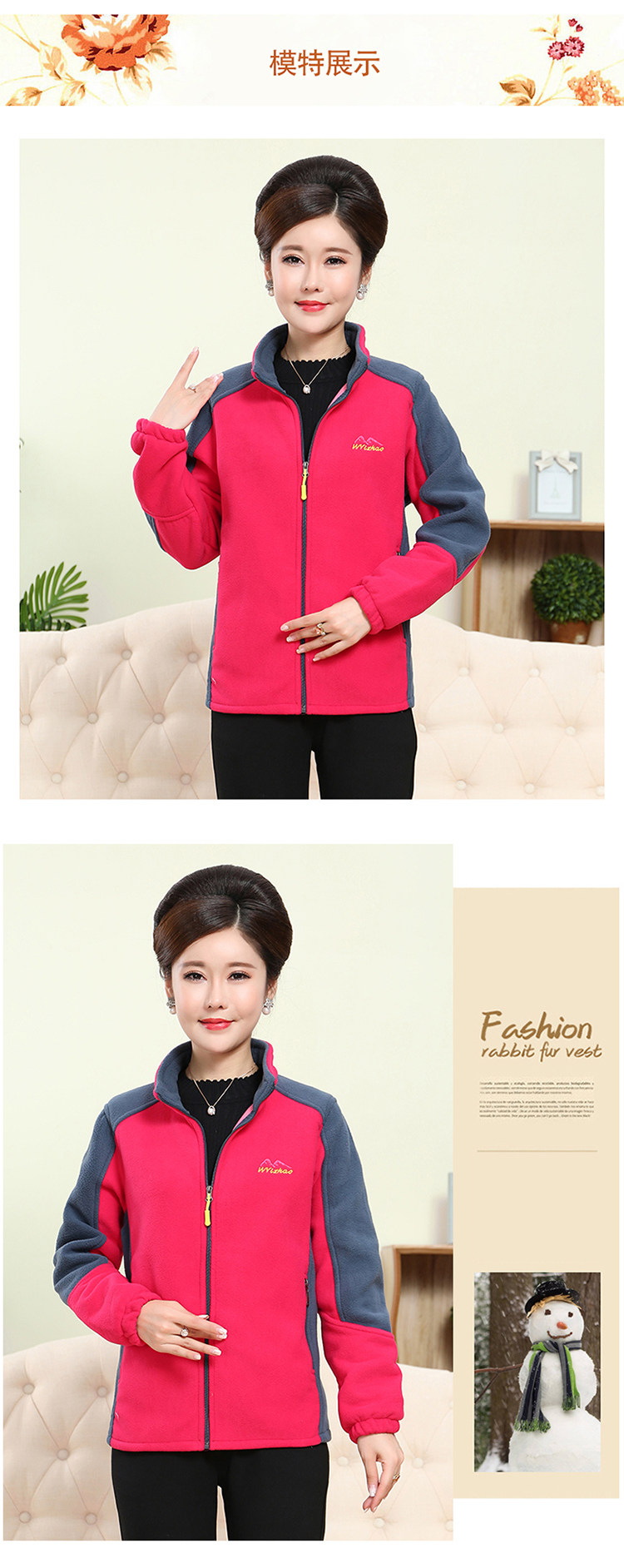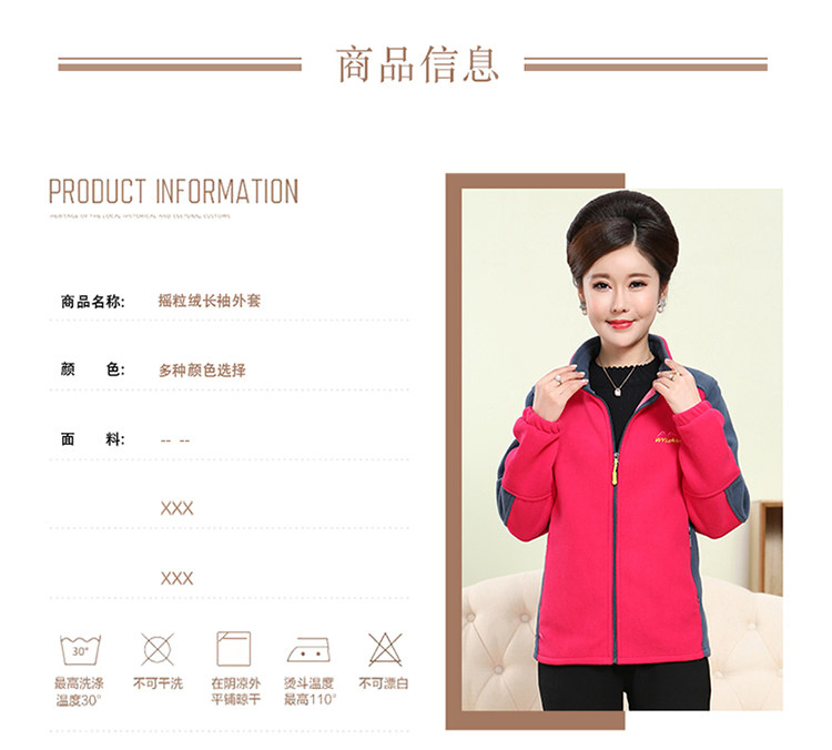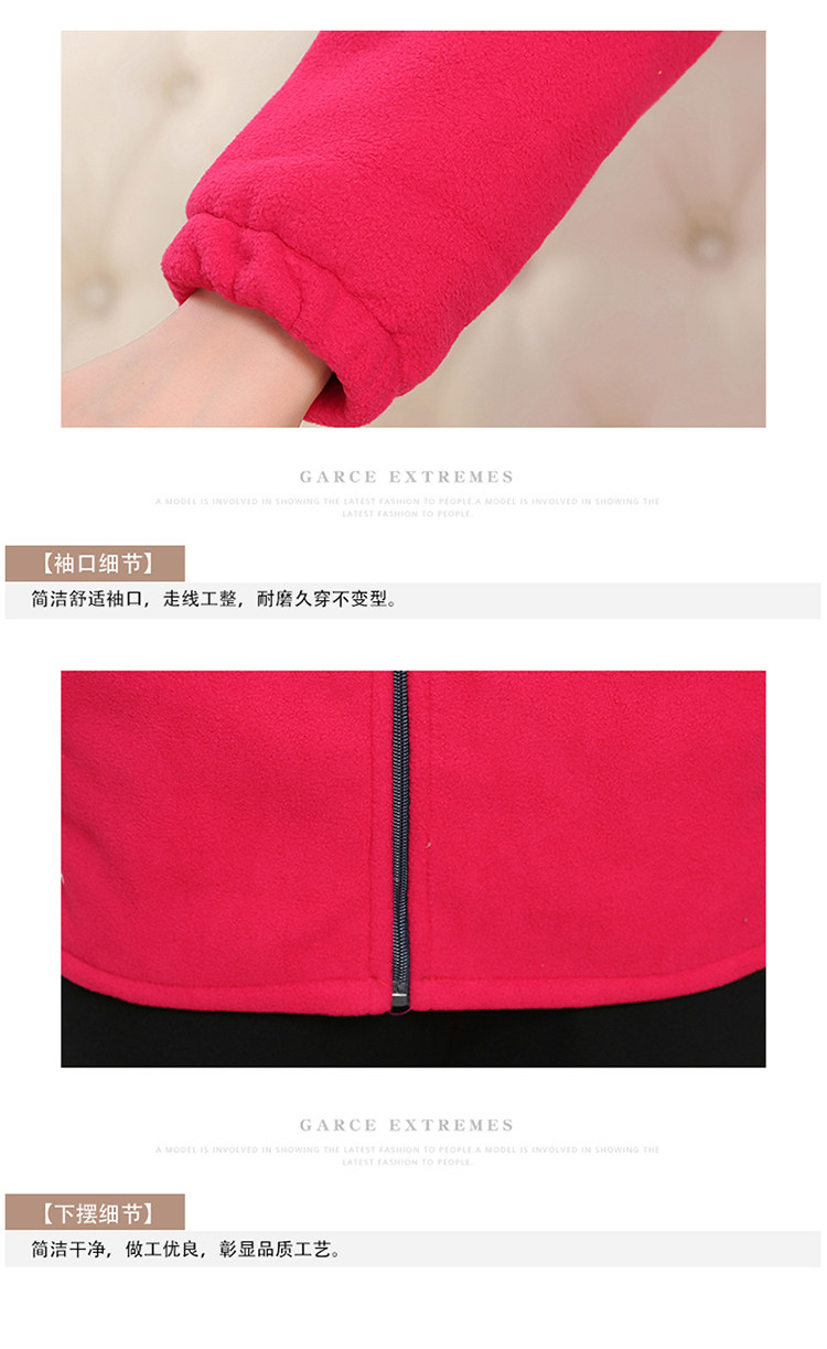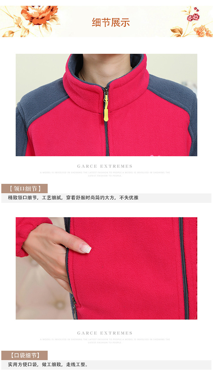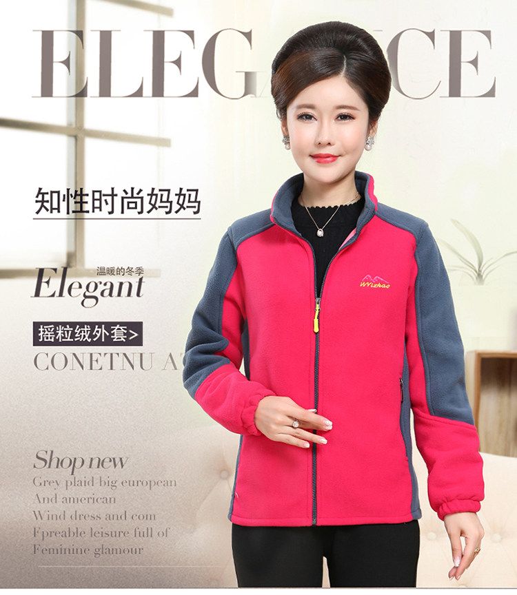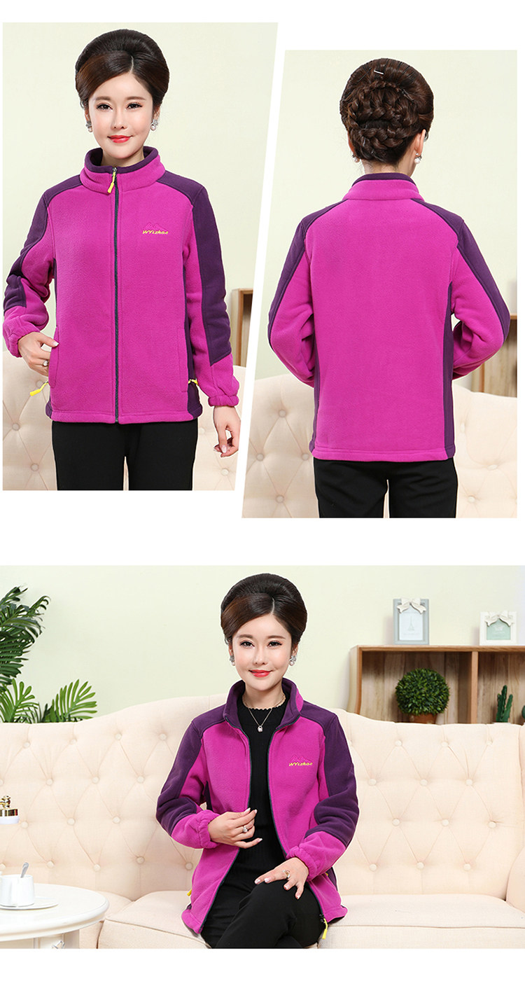 中老年户外抓绒妈妈装保暖拼色女大码开衫拉链立领加厚摇粒绒外套