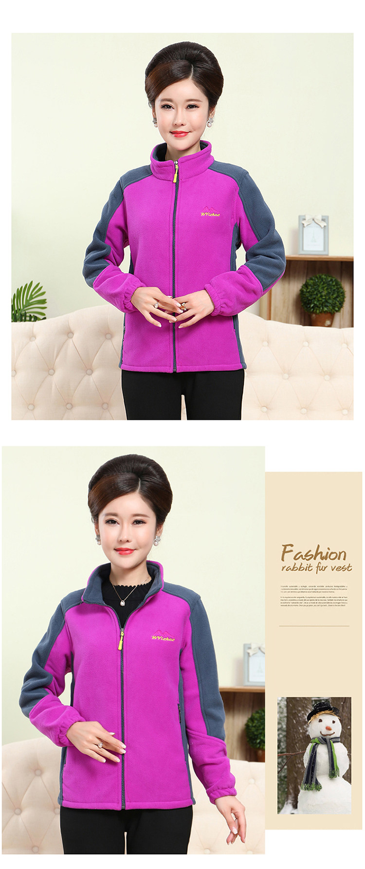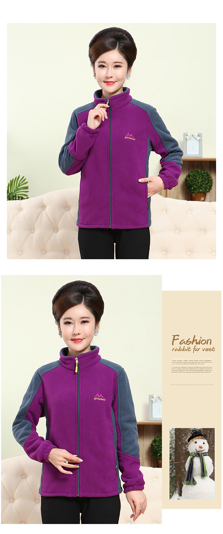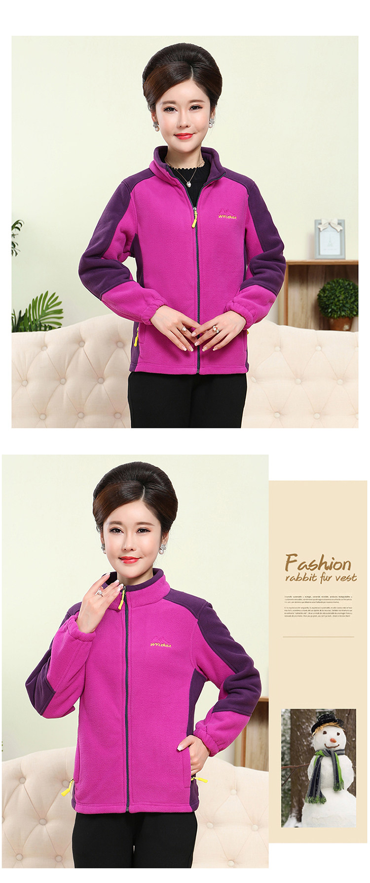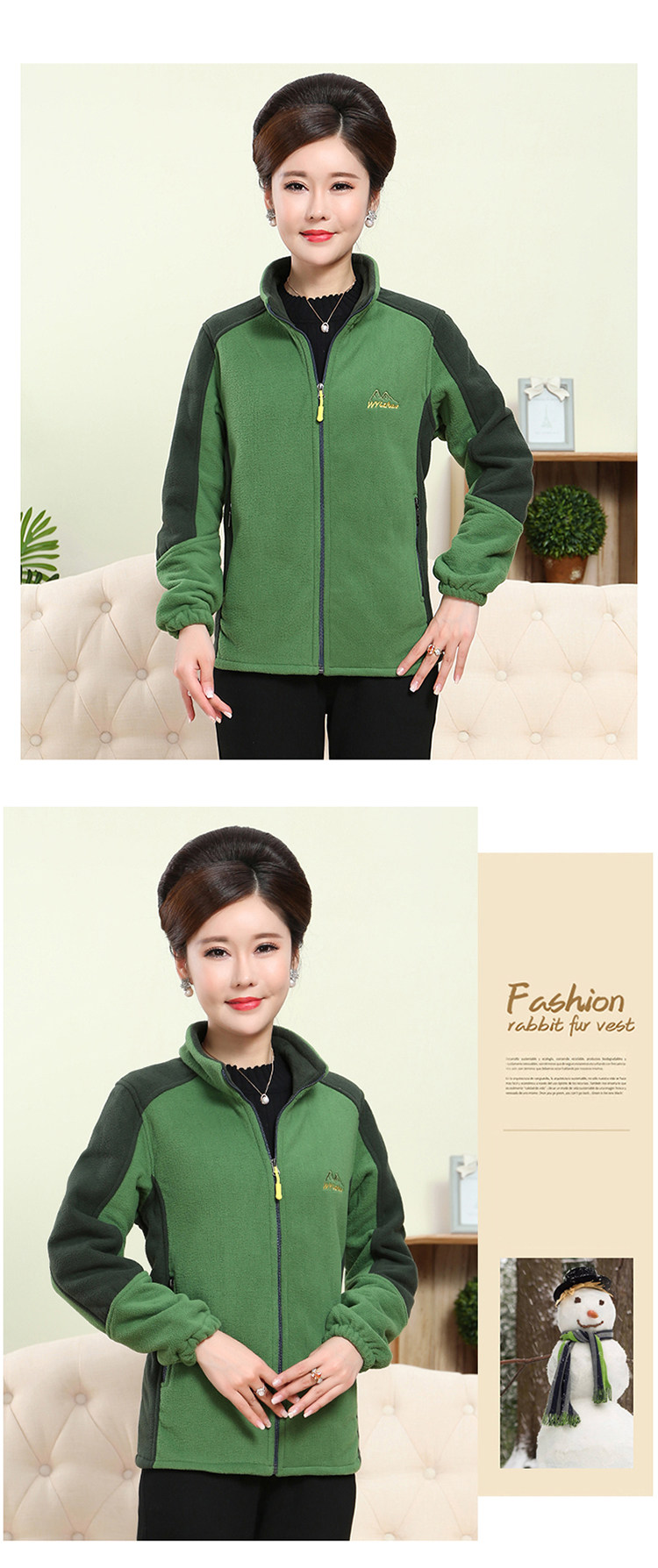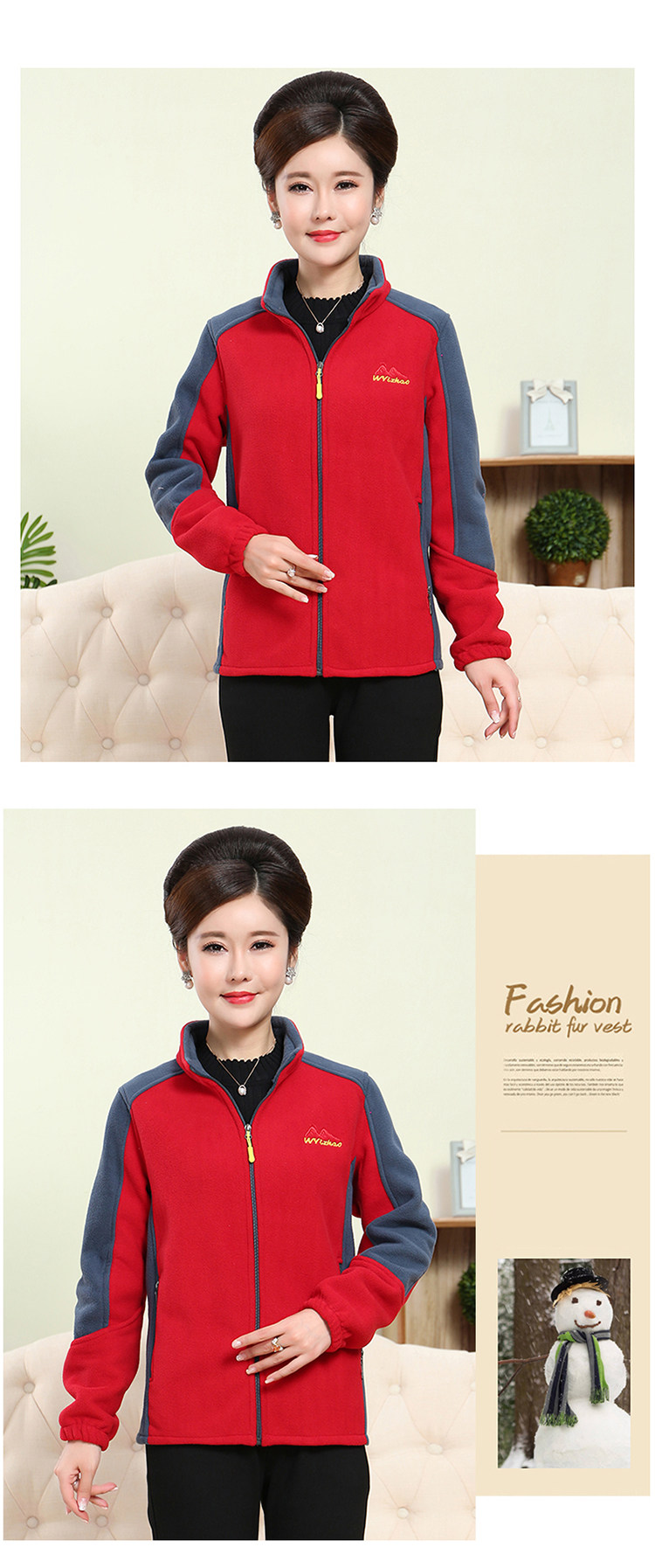 中老年户外抓绒妈妈装保暖拼色女大码开衫拉链立领加厚摇粒绒外套