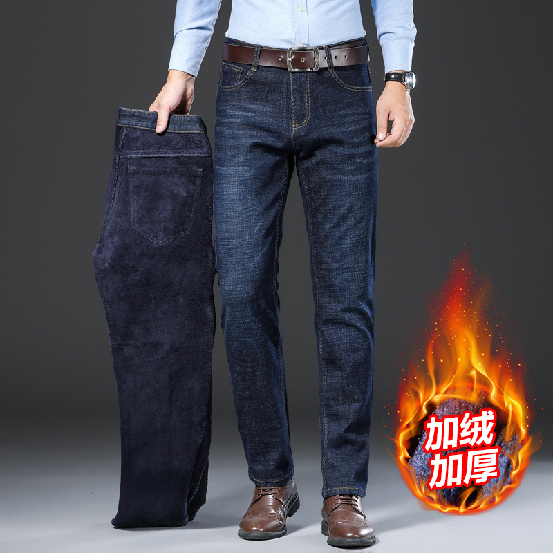 直筒牛仔裤男士徽章男款宽秋季弹力中年长裤韩版棉质休闲裤子