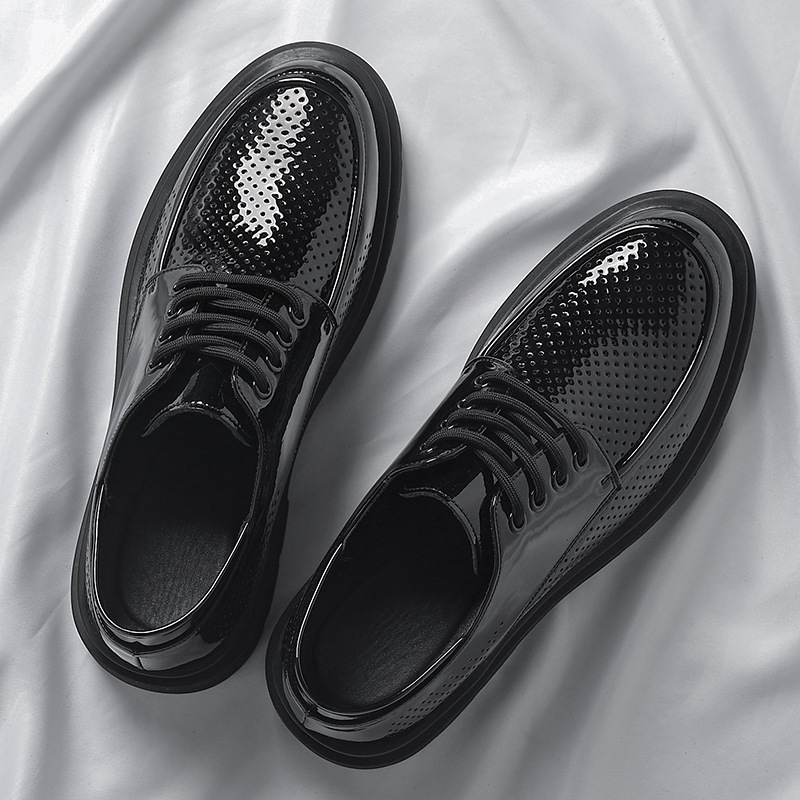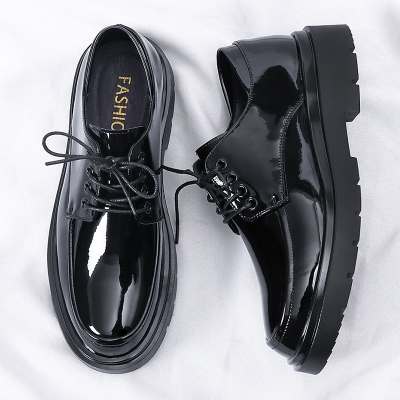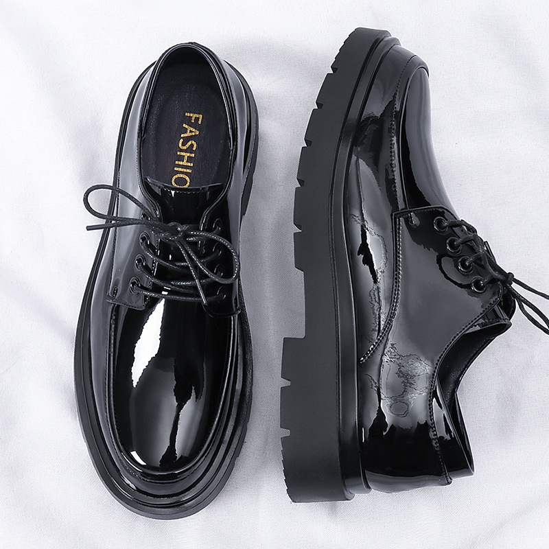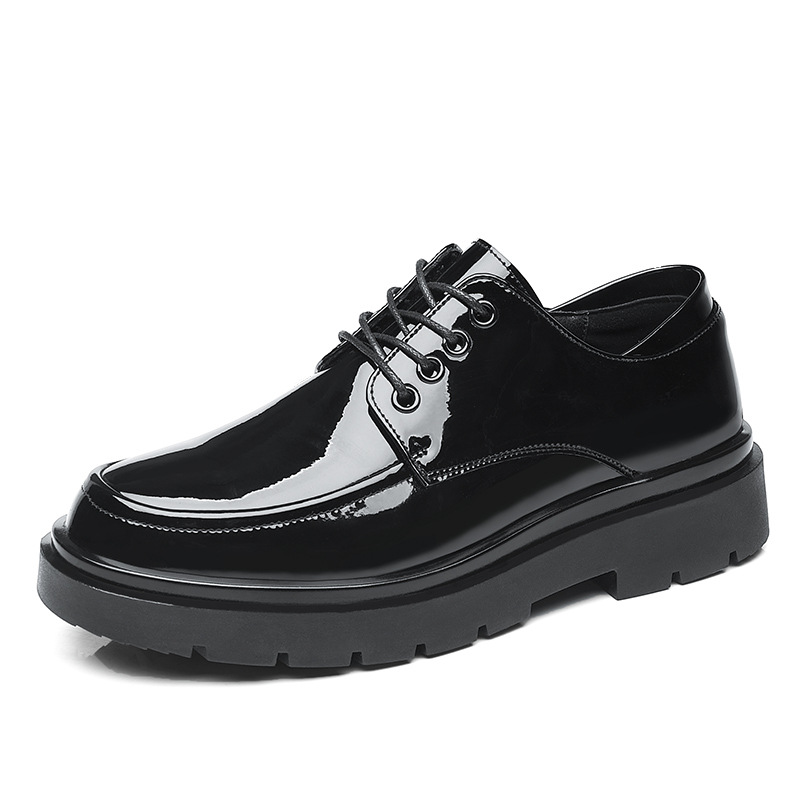 商务正装皮鞋男港风潮男亮面皮鞋英伦风漆皮厚底休闲潮鞋一件代发