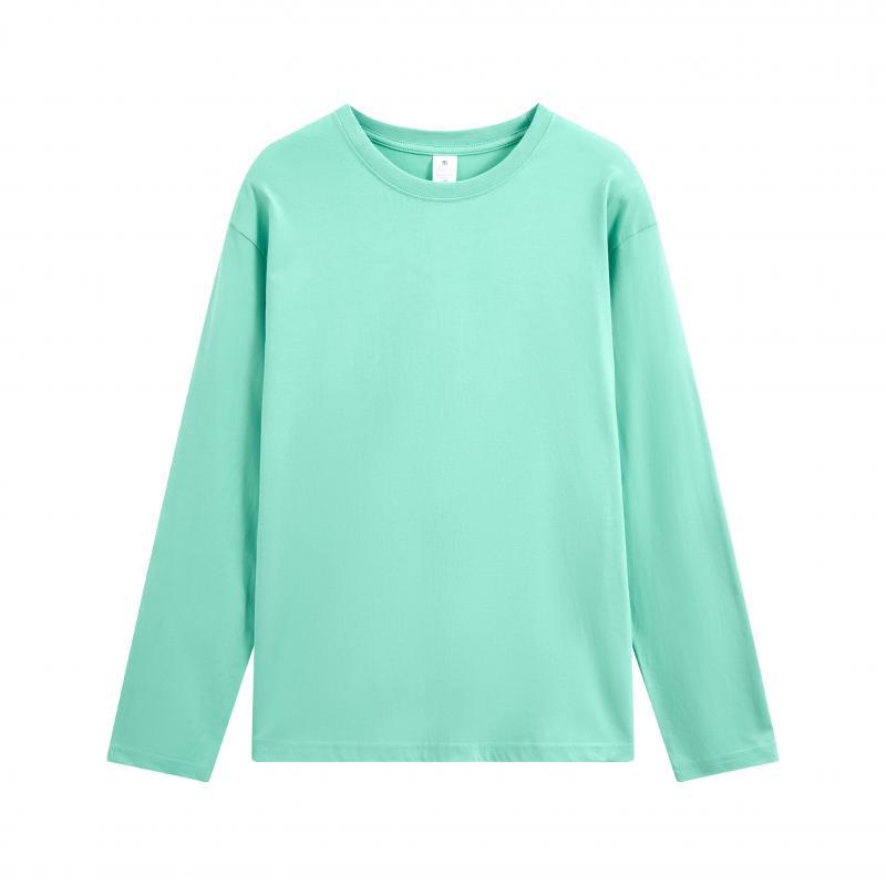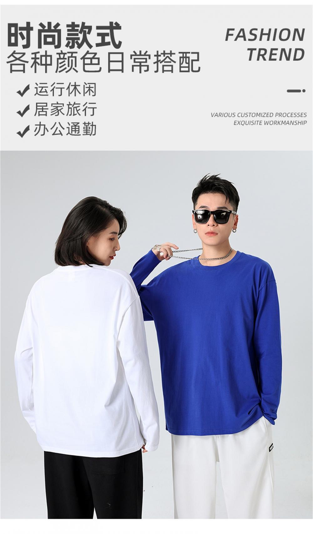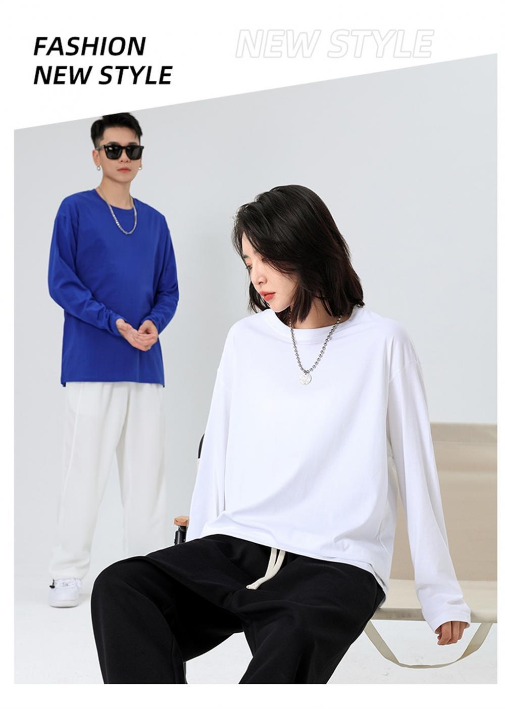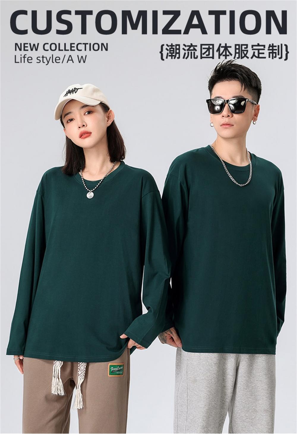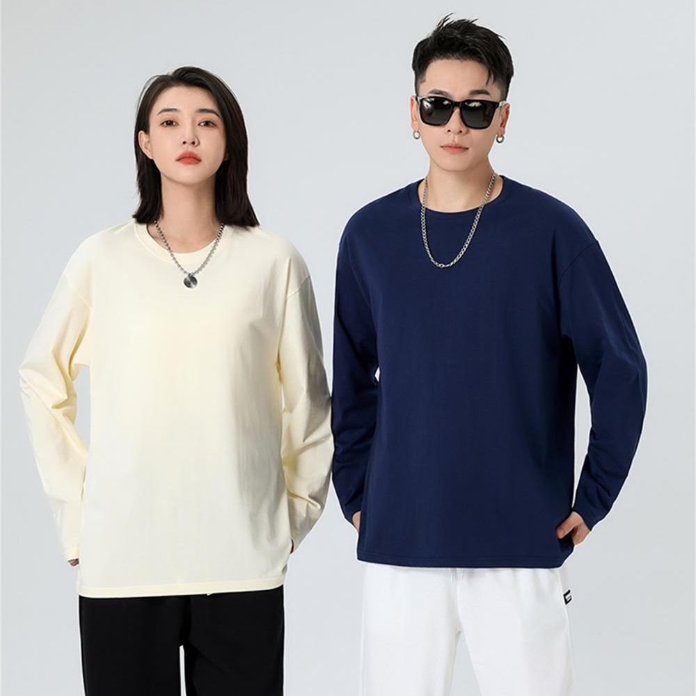 240克微落肩精梳棉制定圆领长袖文化广告衫印制logo打底衫纯色T恤