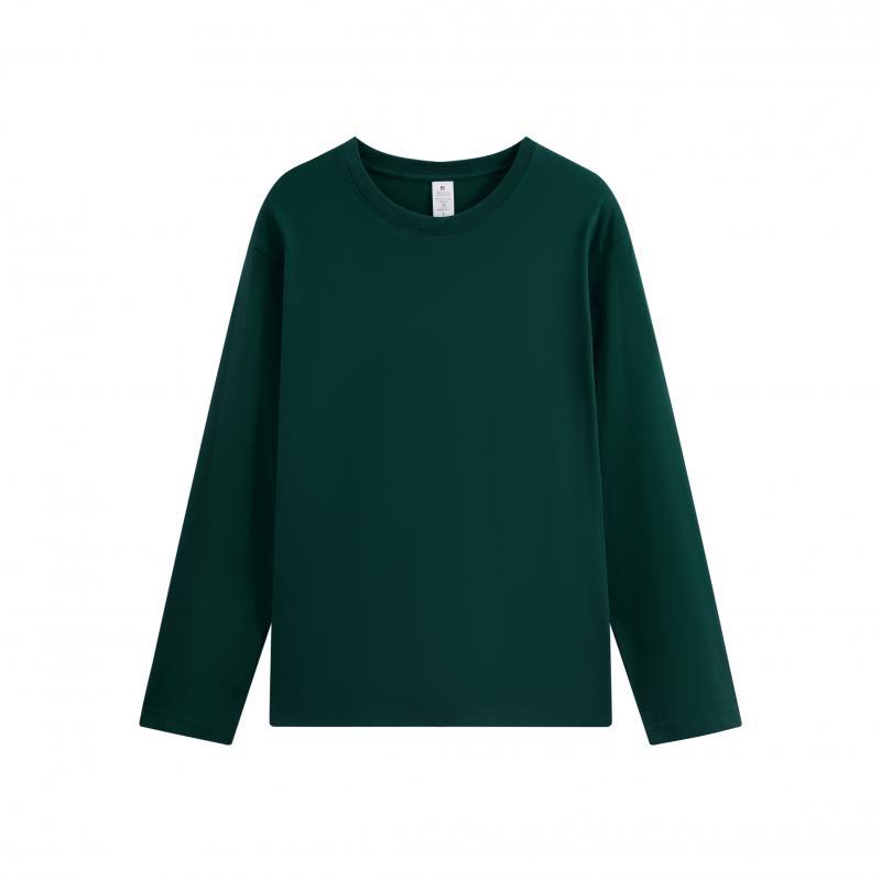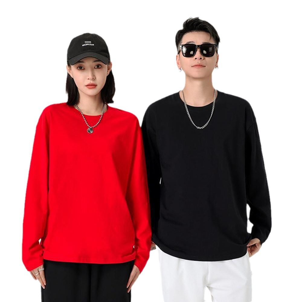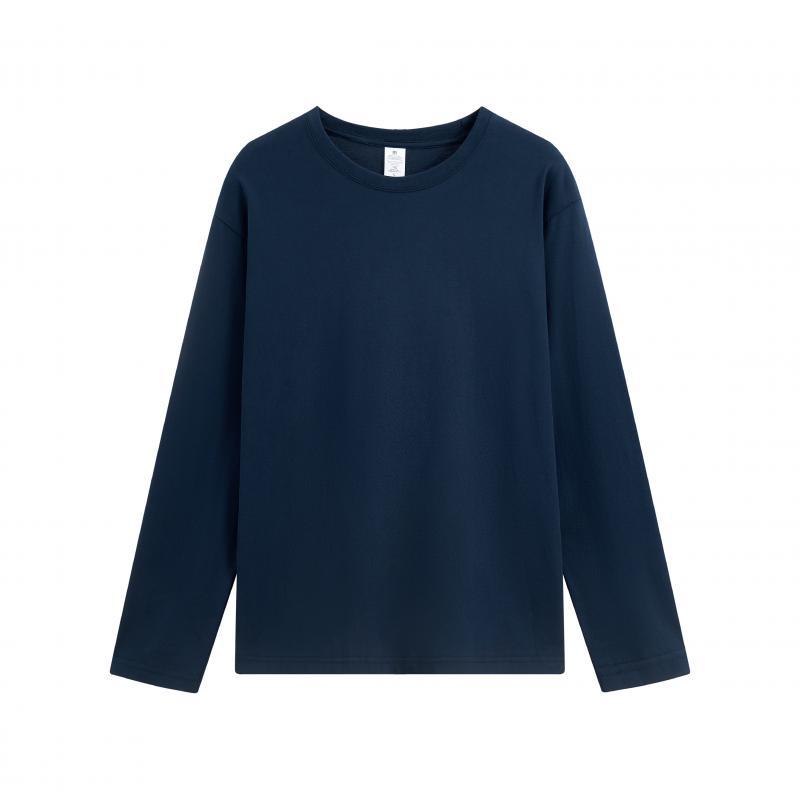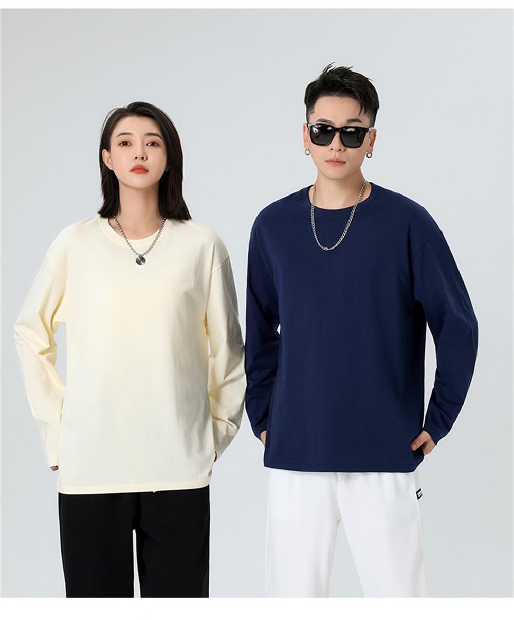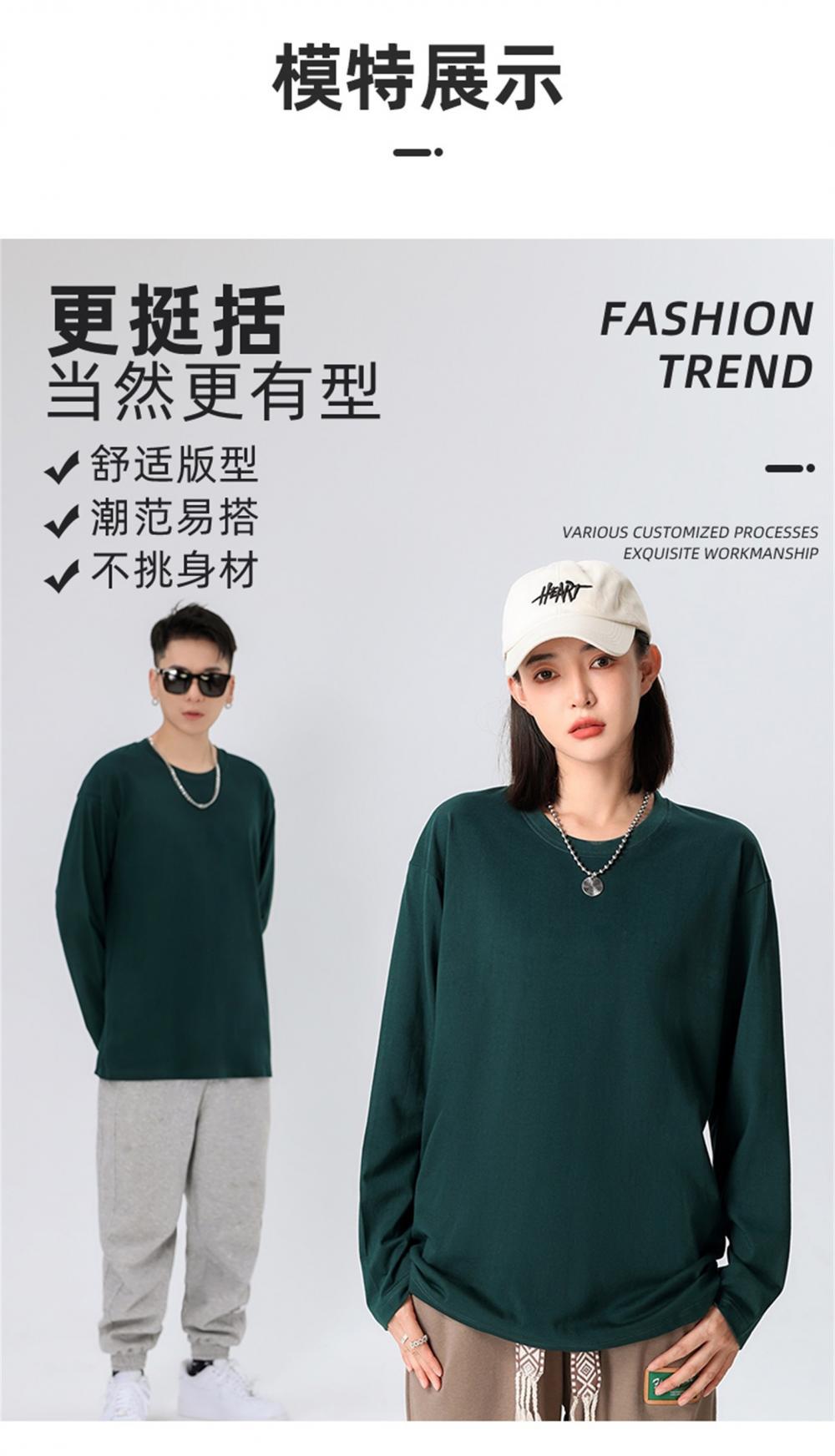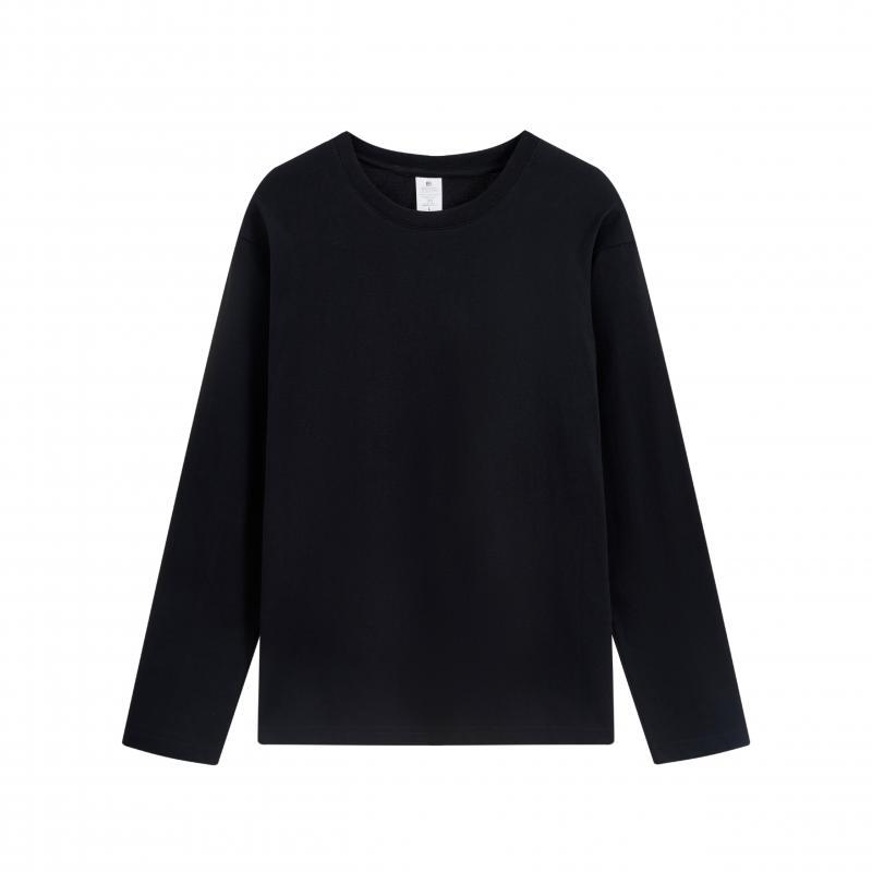 240克微落肩精梳棉制定圆领长袖文化广告衫印制logo打底衫纯色T恤