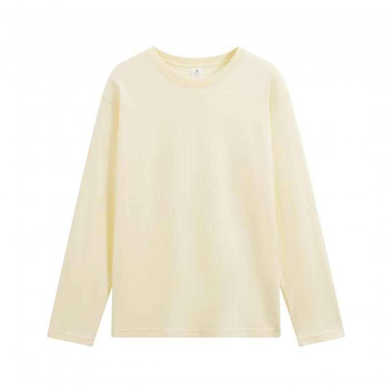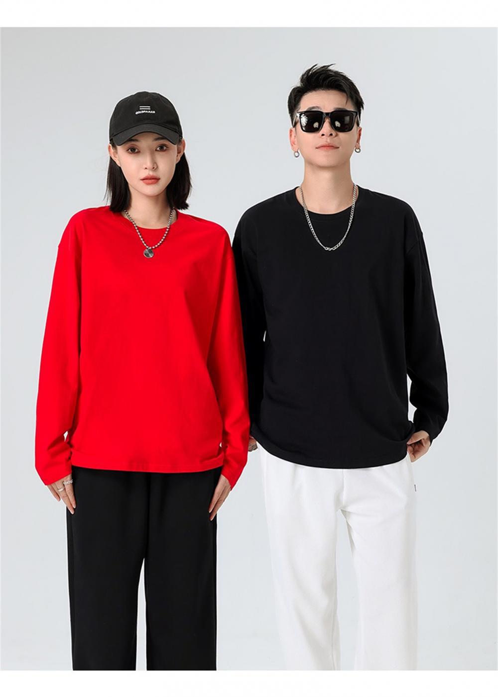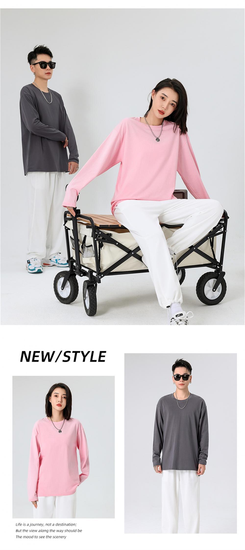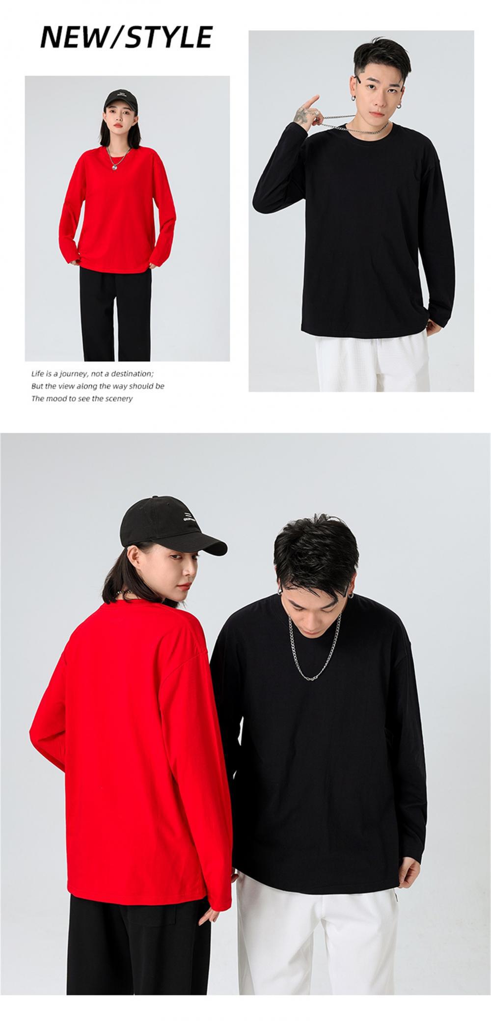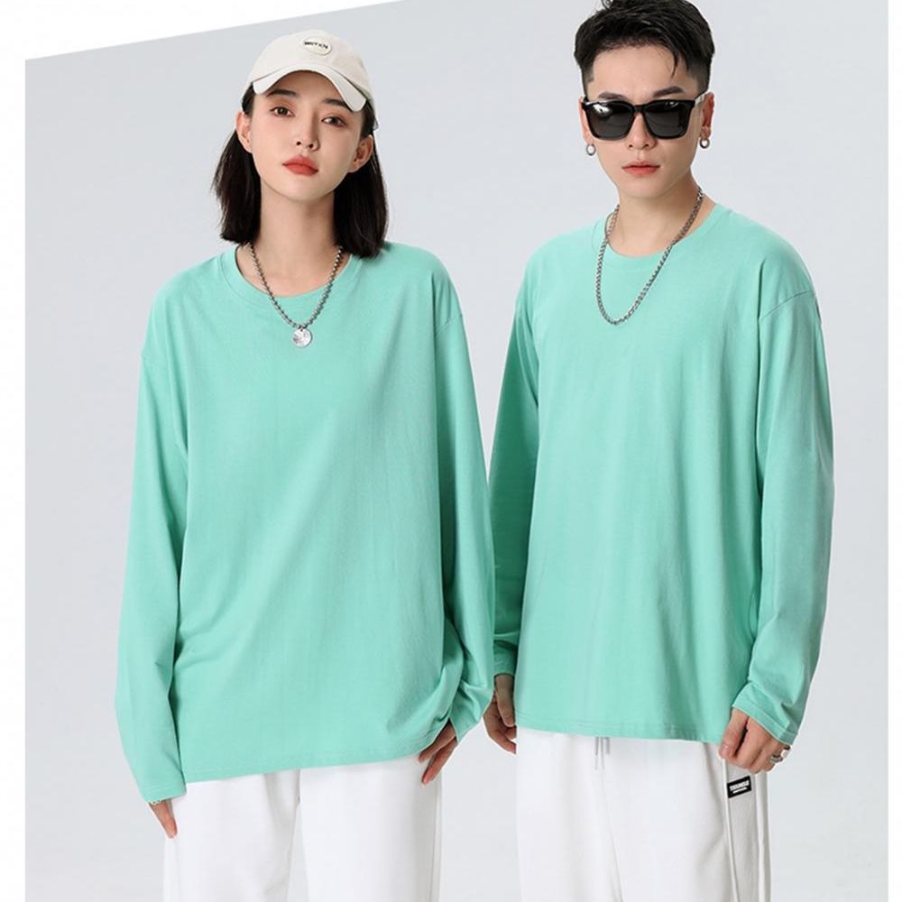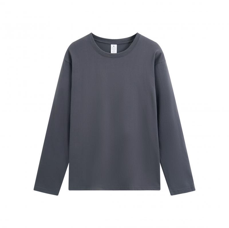 240克微落肩精梳棉制定圆领长袖文化广告衫印制logo打底衫纯色T恤