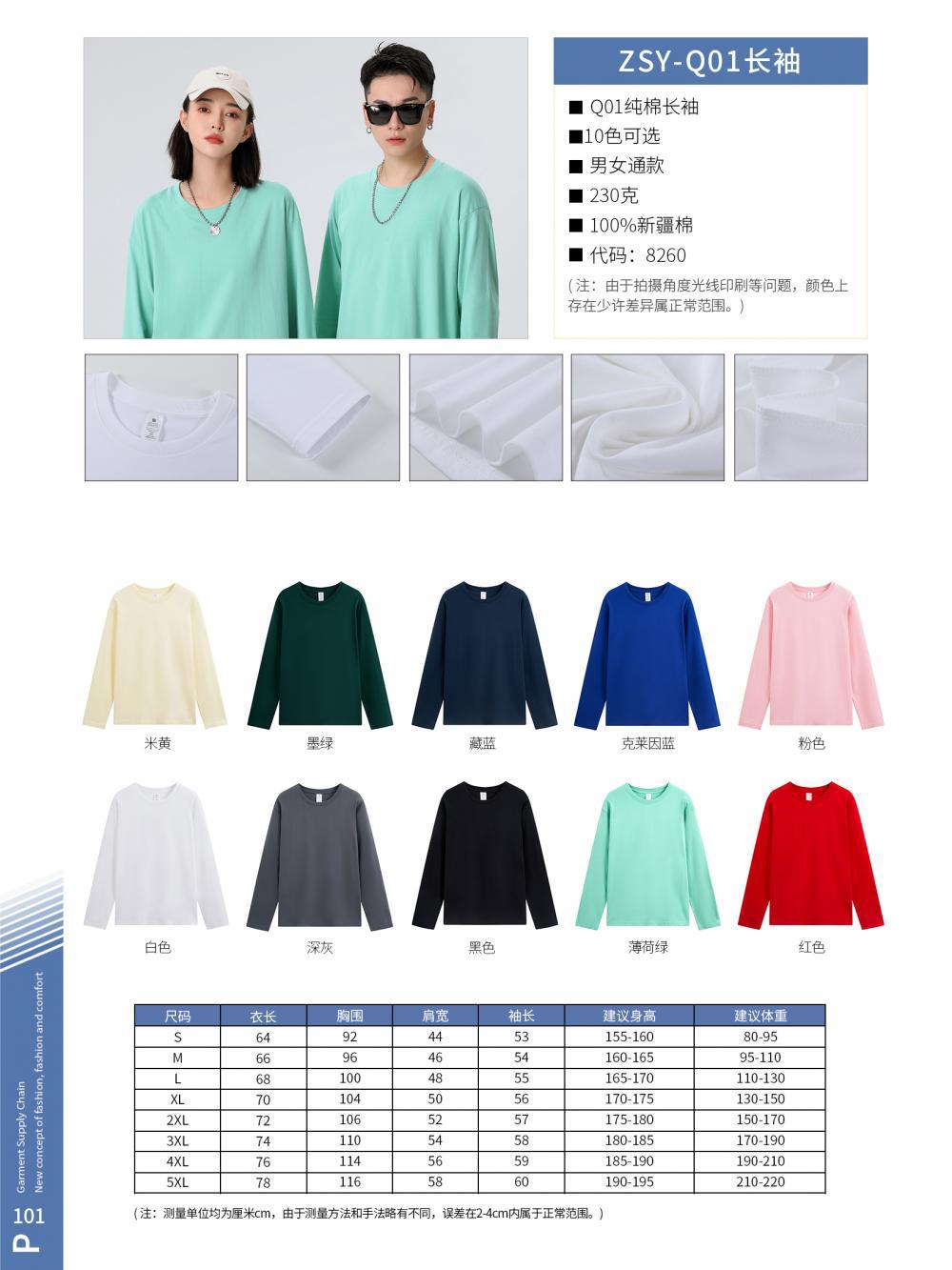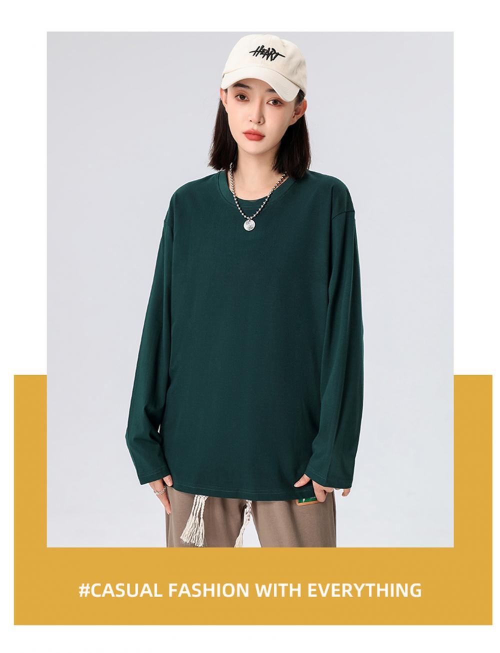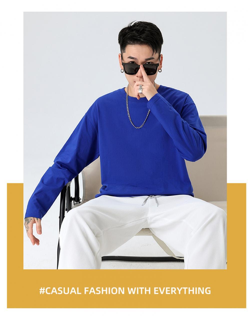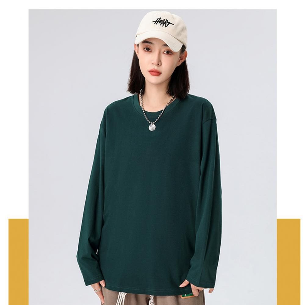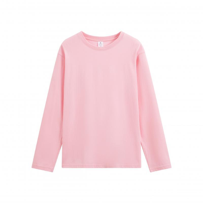 240克微落肩精梳棉制定圆领长袖文化广告衫印制logo打底衫纯色T恤