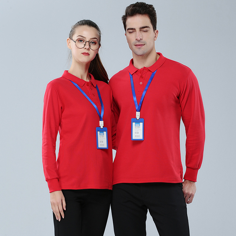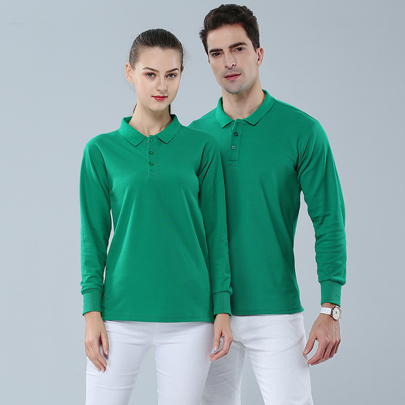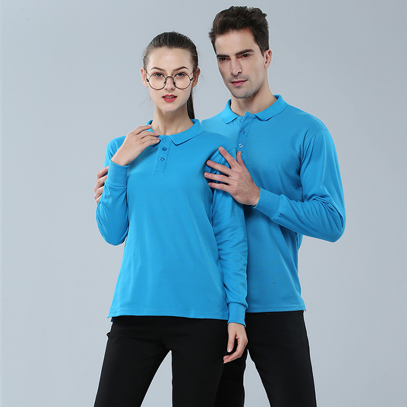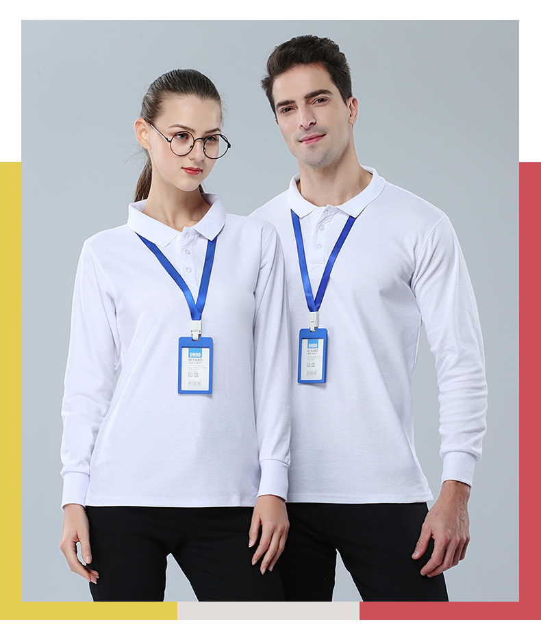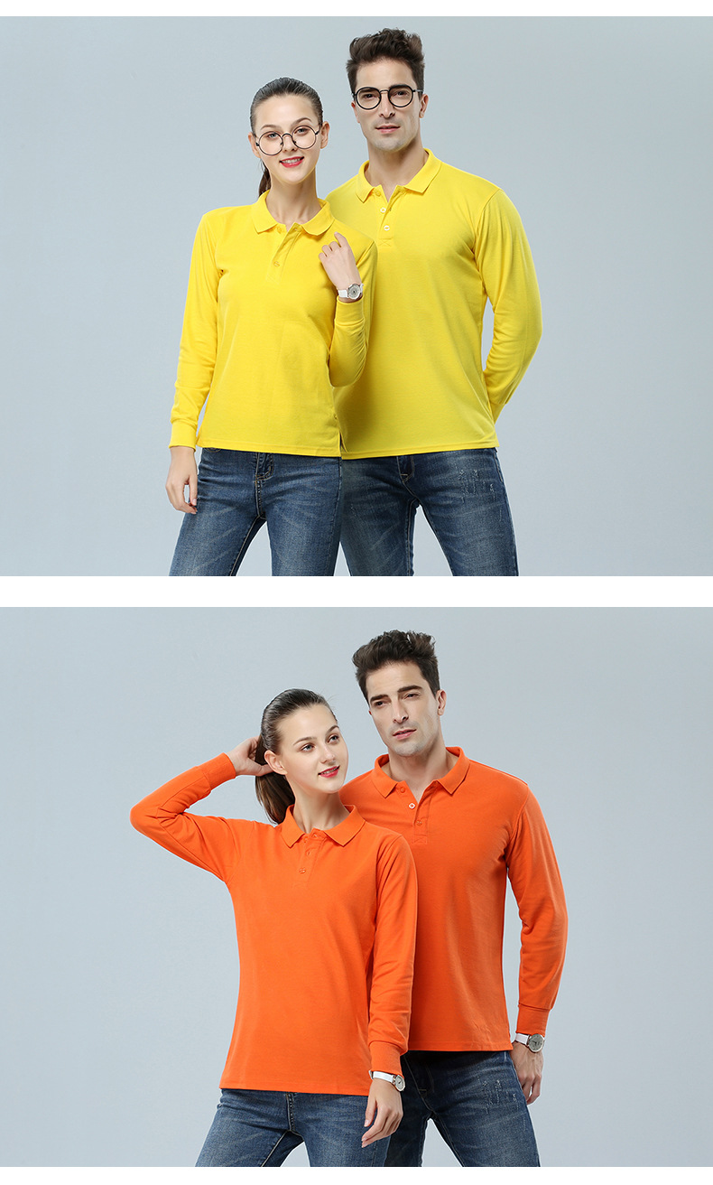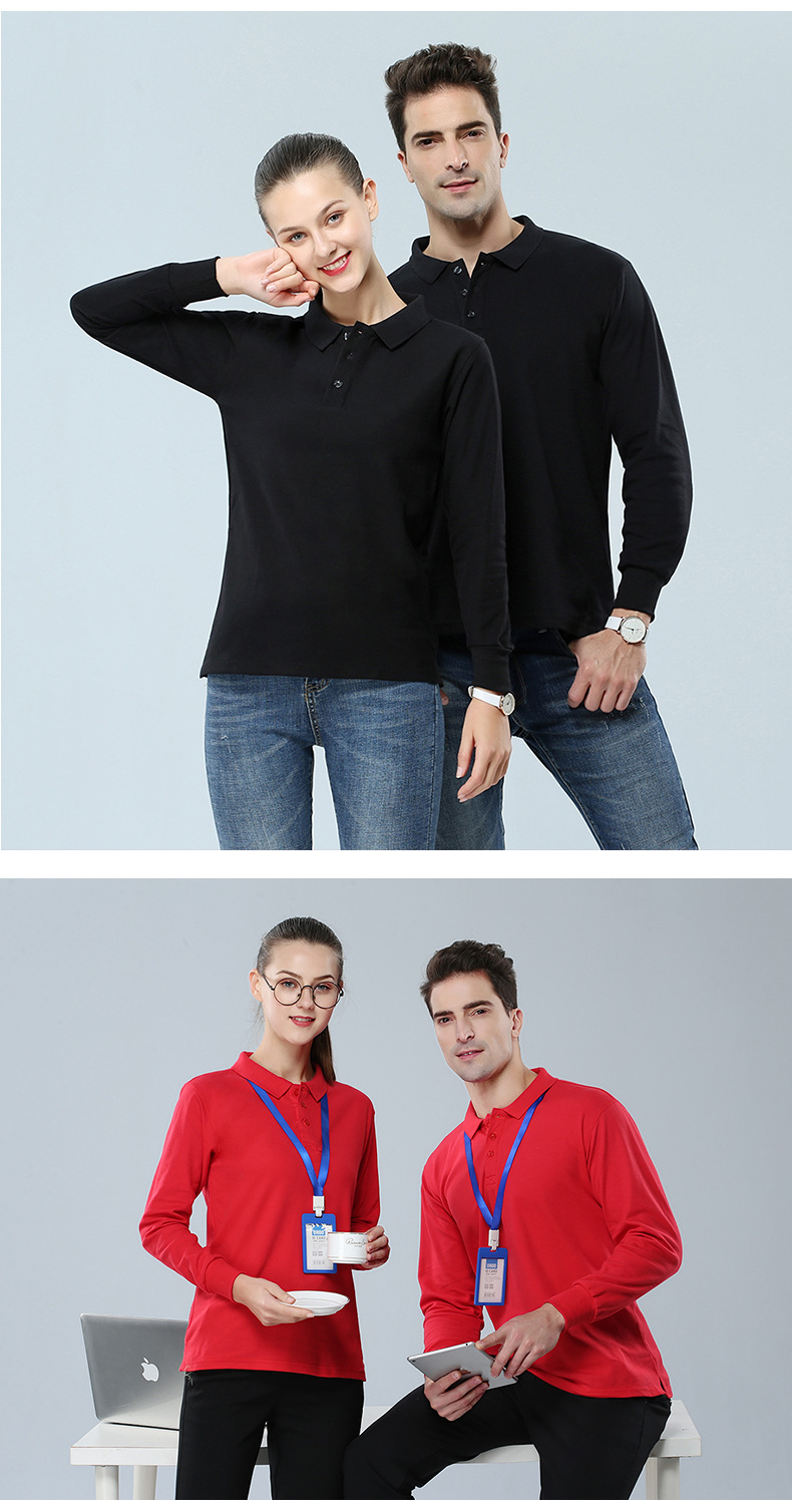 2023新款工作服文化衫220g32支CVC翻领长袖POLO衫通款可绣logo