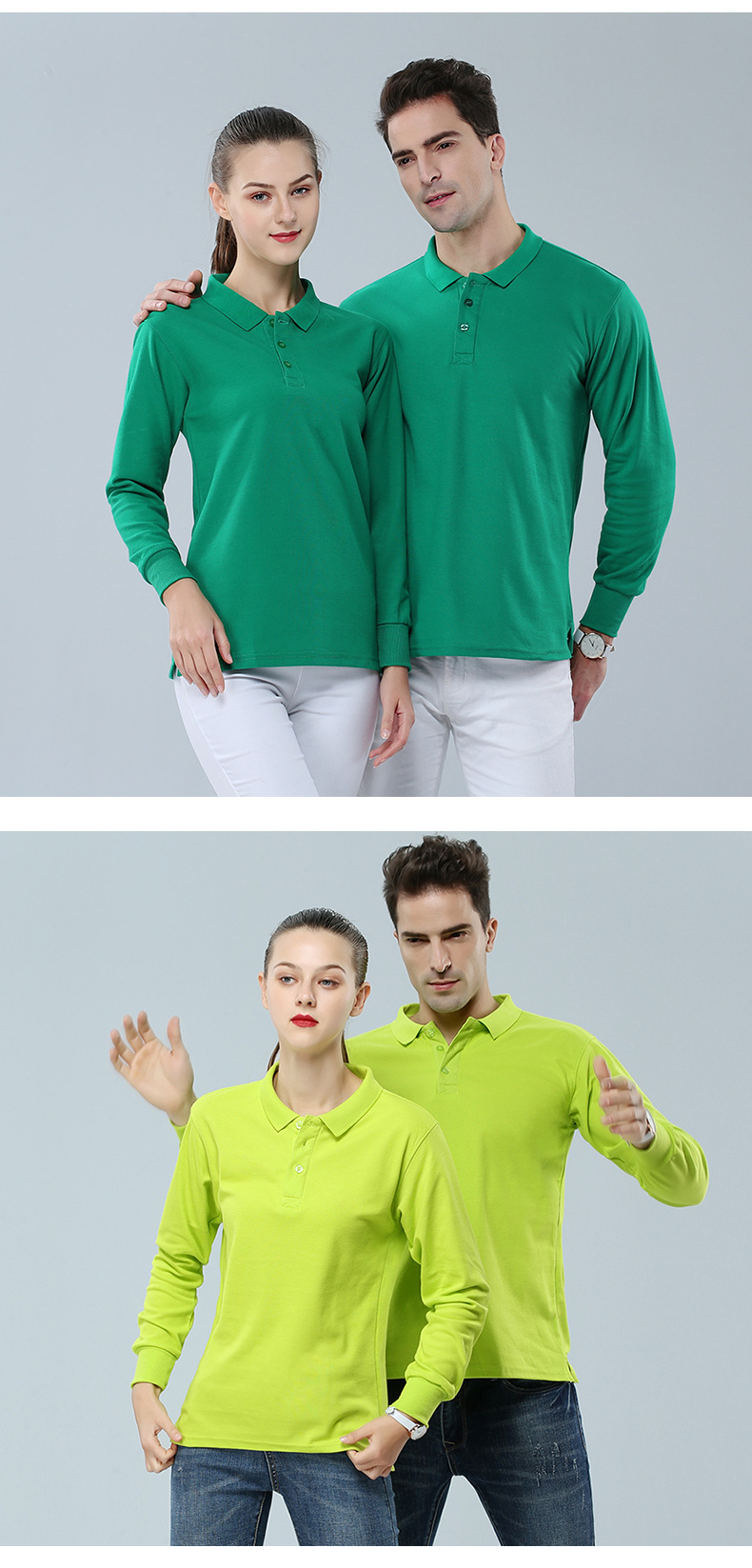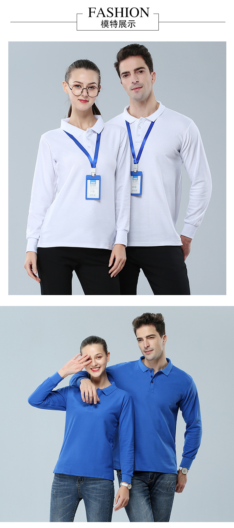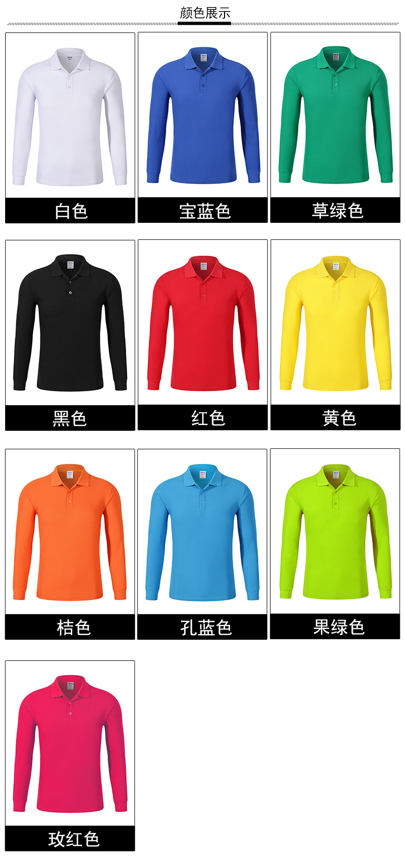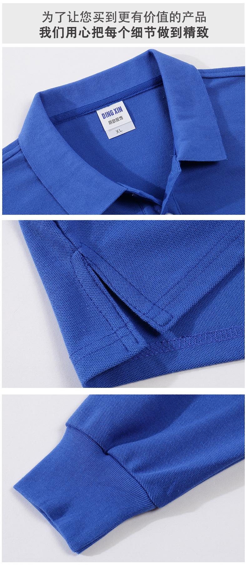2023新款工作服文化衫220g32支CVC翻领长袖POLO衫通款可绣logo
