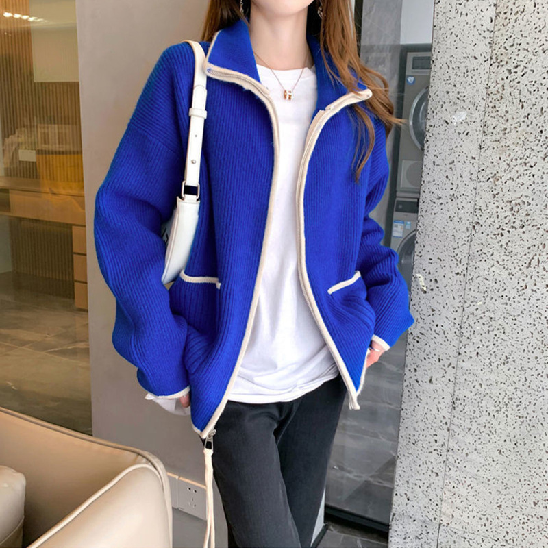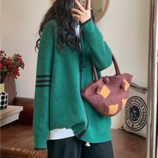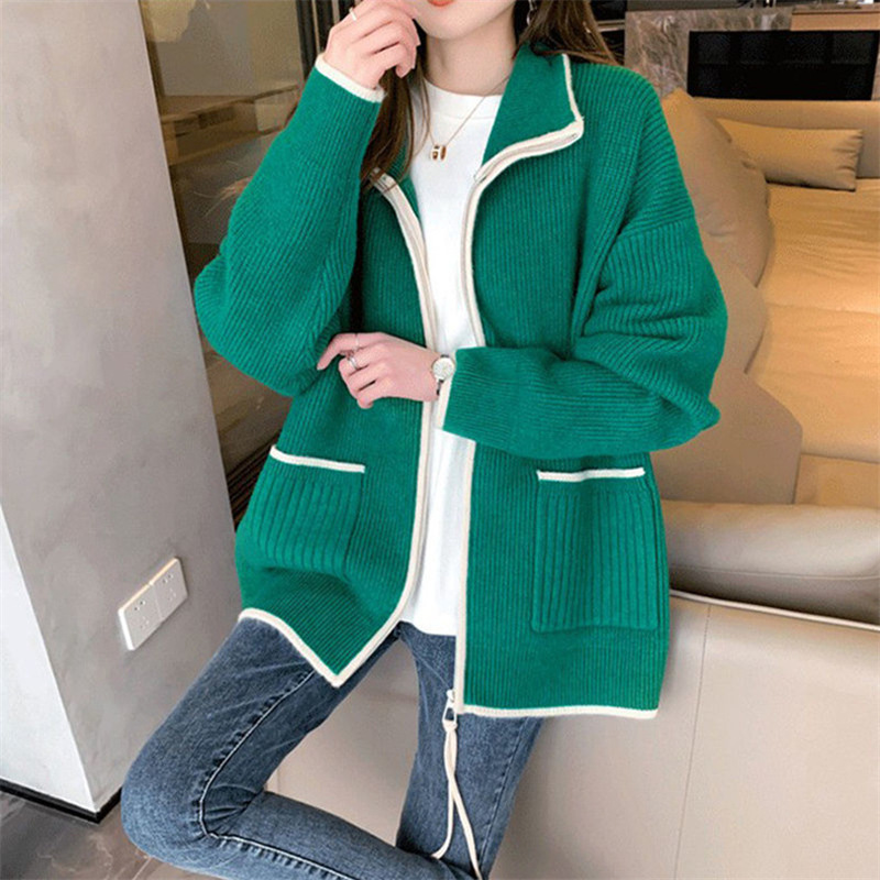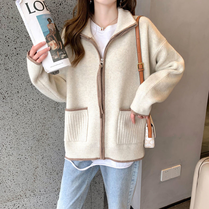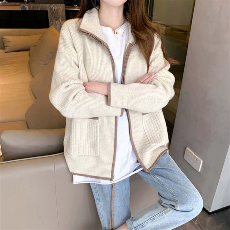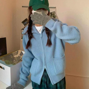温柔风软糯毛衣外套女秋冬装2022年新款韩版宽松拉链针织开衫上衣
