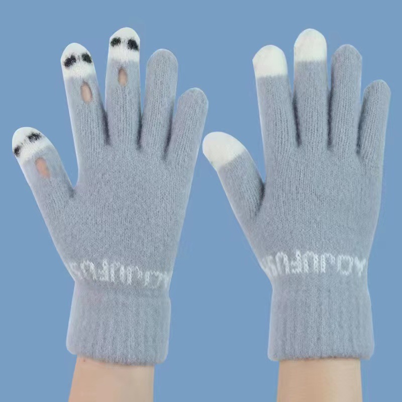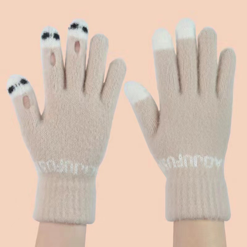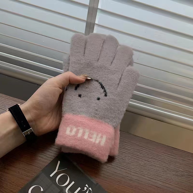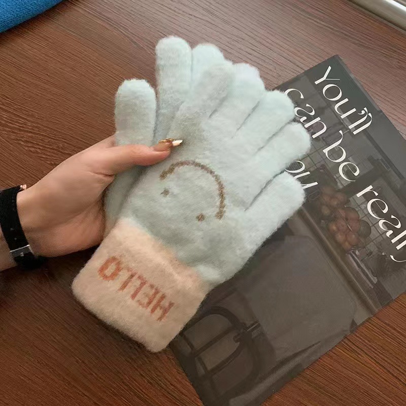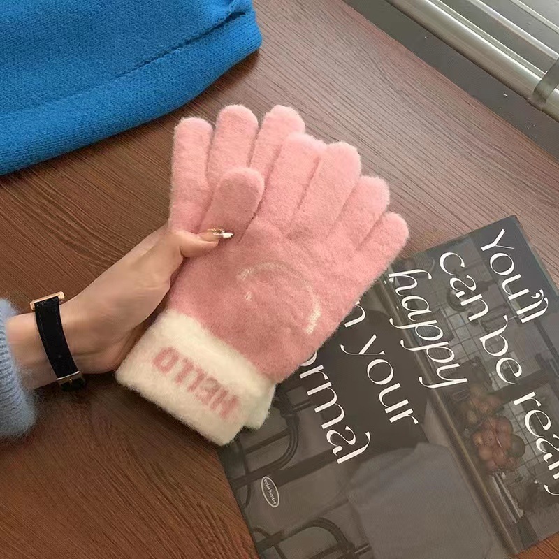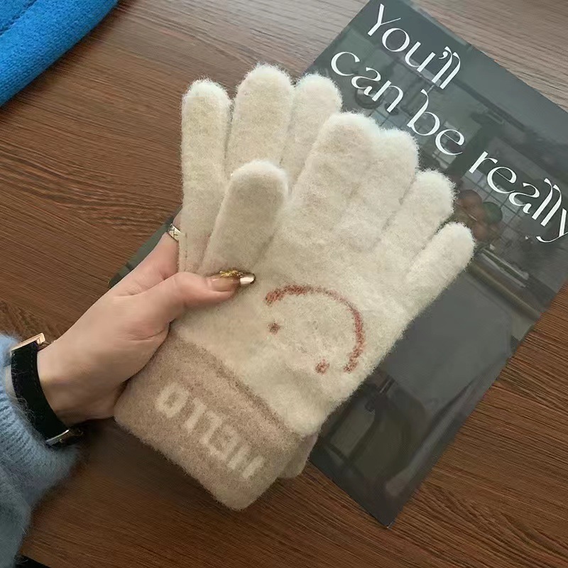 2023年新款冬季针织手套可爱韩版防寒保暖女学生加厚触屏骑行手套