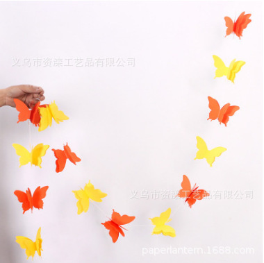 三层大号七彩蝴蝶纸拉花纸串儿童房商场橱窗挂饰婚礼生日派对用品