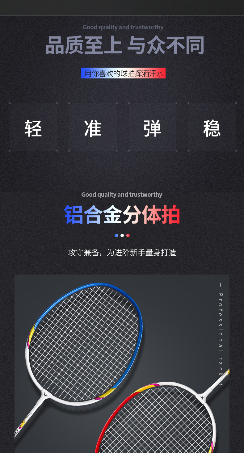 厂家批发浩源羽毛球拍2支装套装铝合金进攻型成人羽毛球拍带包