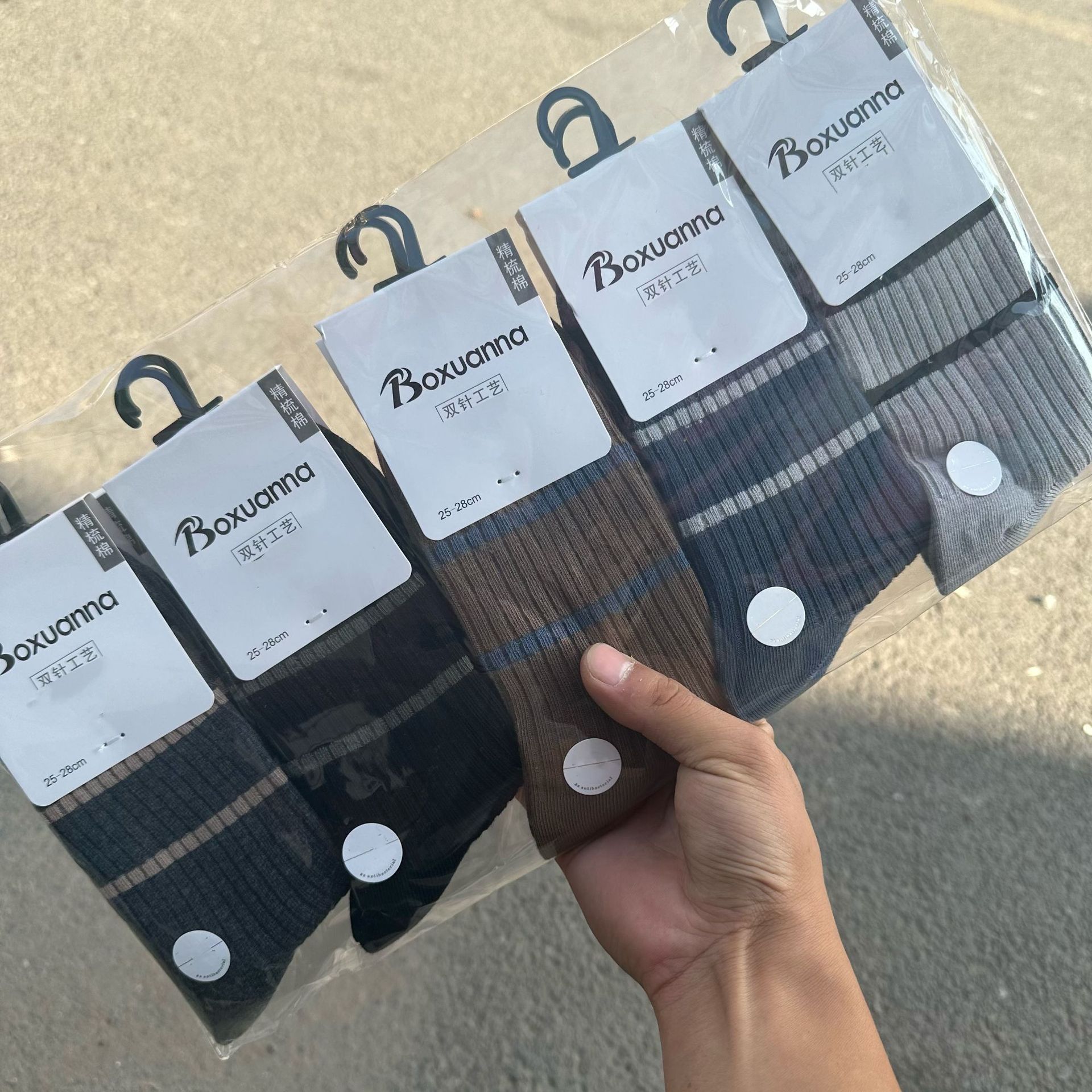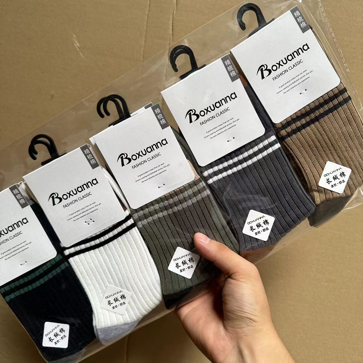 男士双针袜商务袜秋冬款中高筒五色系舒适吸汗运动简约厂家批发