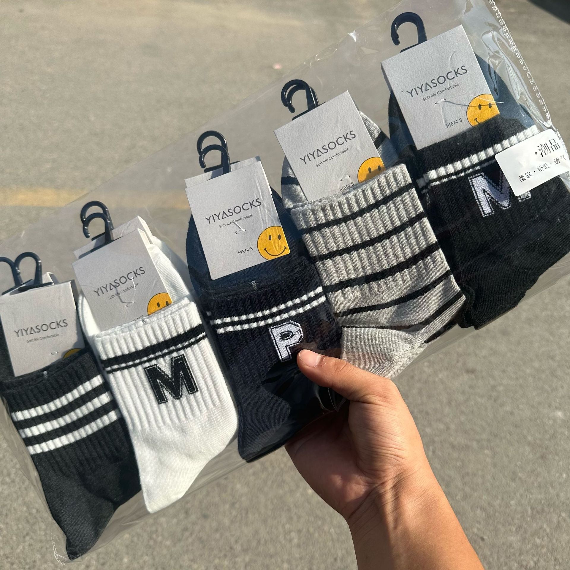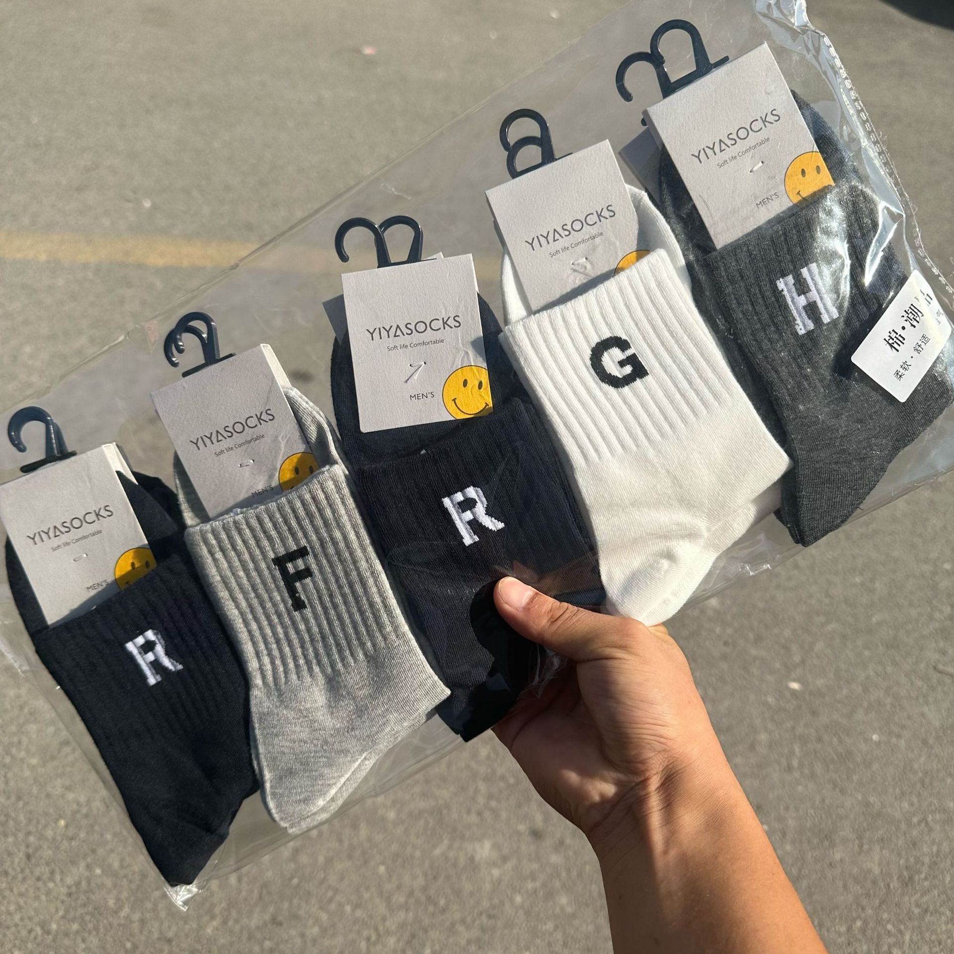 袜子女秋冬款女士中筒棉袜咖色系学院风字母数字潮袜ins厂家批发