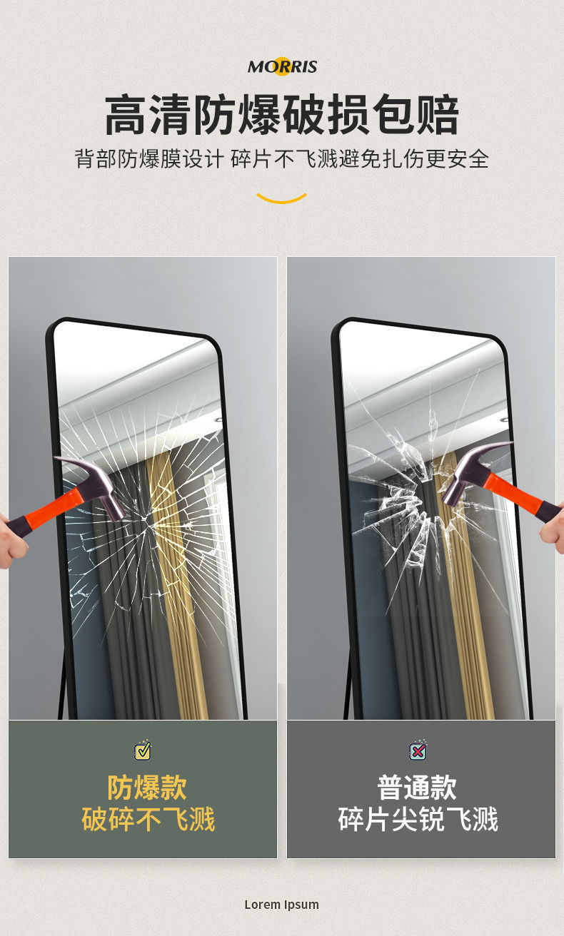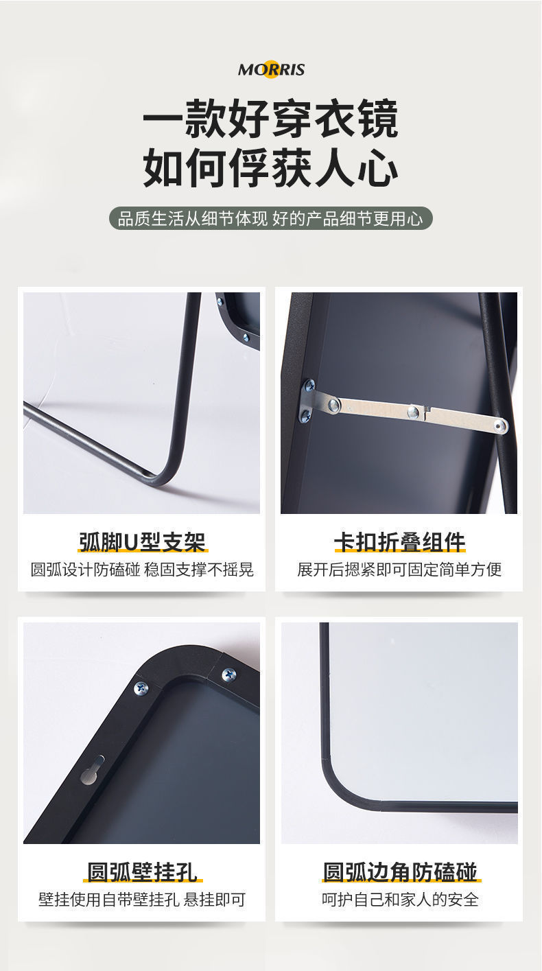 简约现代挂立镜子全身穿衣镜试衣镜落地加壁挂两用镜服装店大镜子