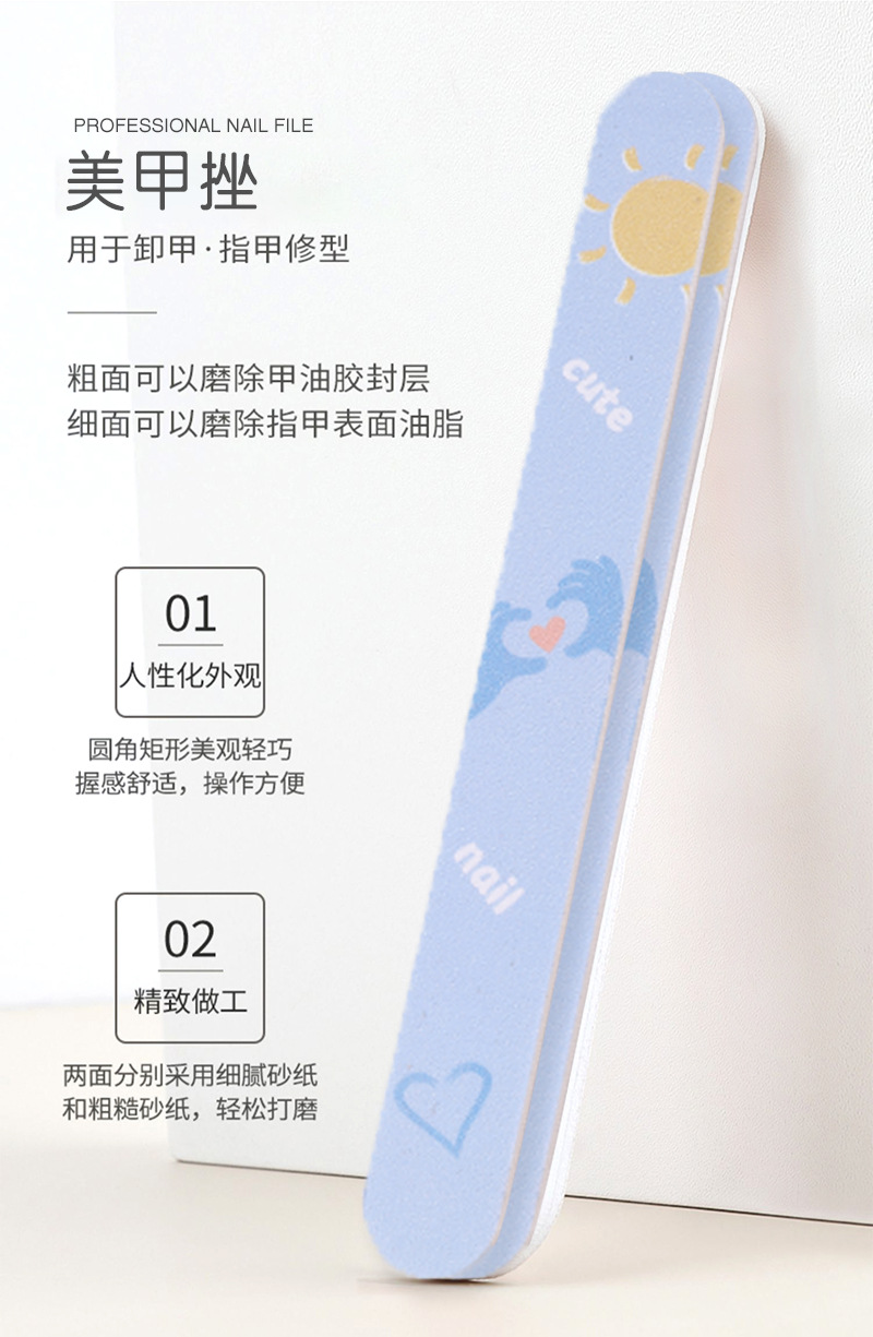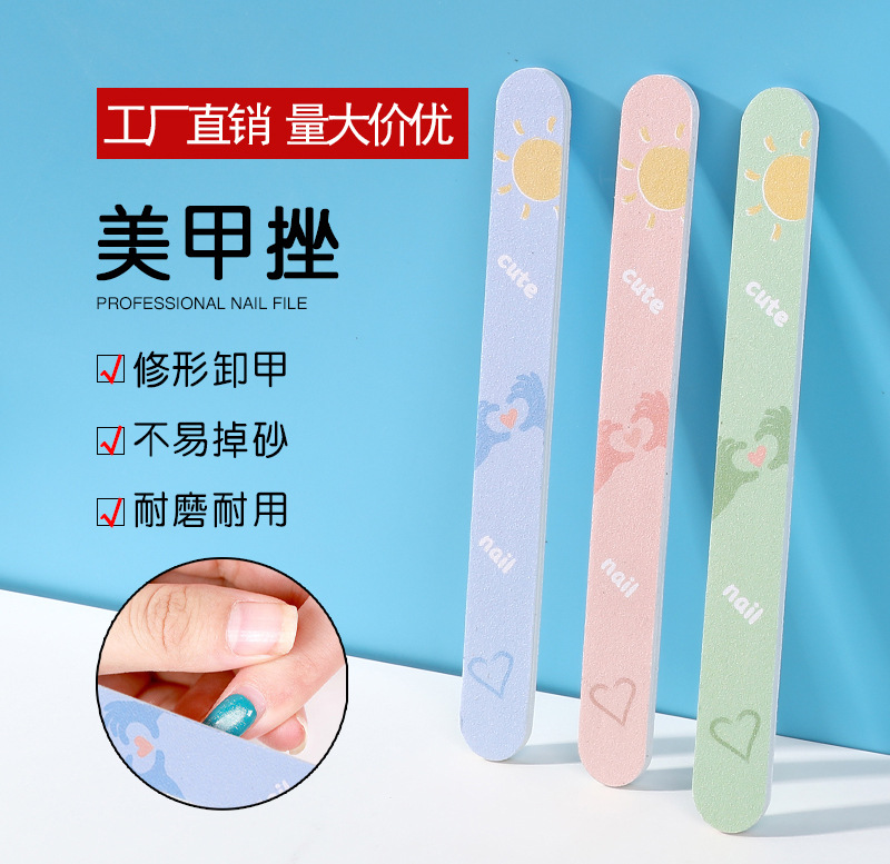 双面少女心指甲锉美甲磨砂条搓条打磨条修甲海绵挫工具套装批发
