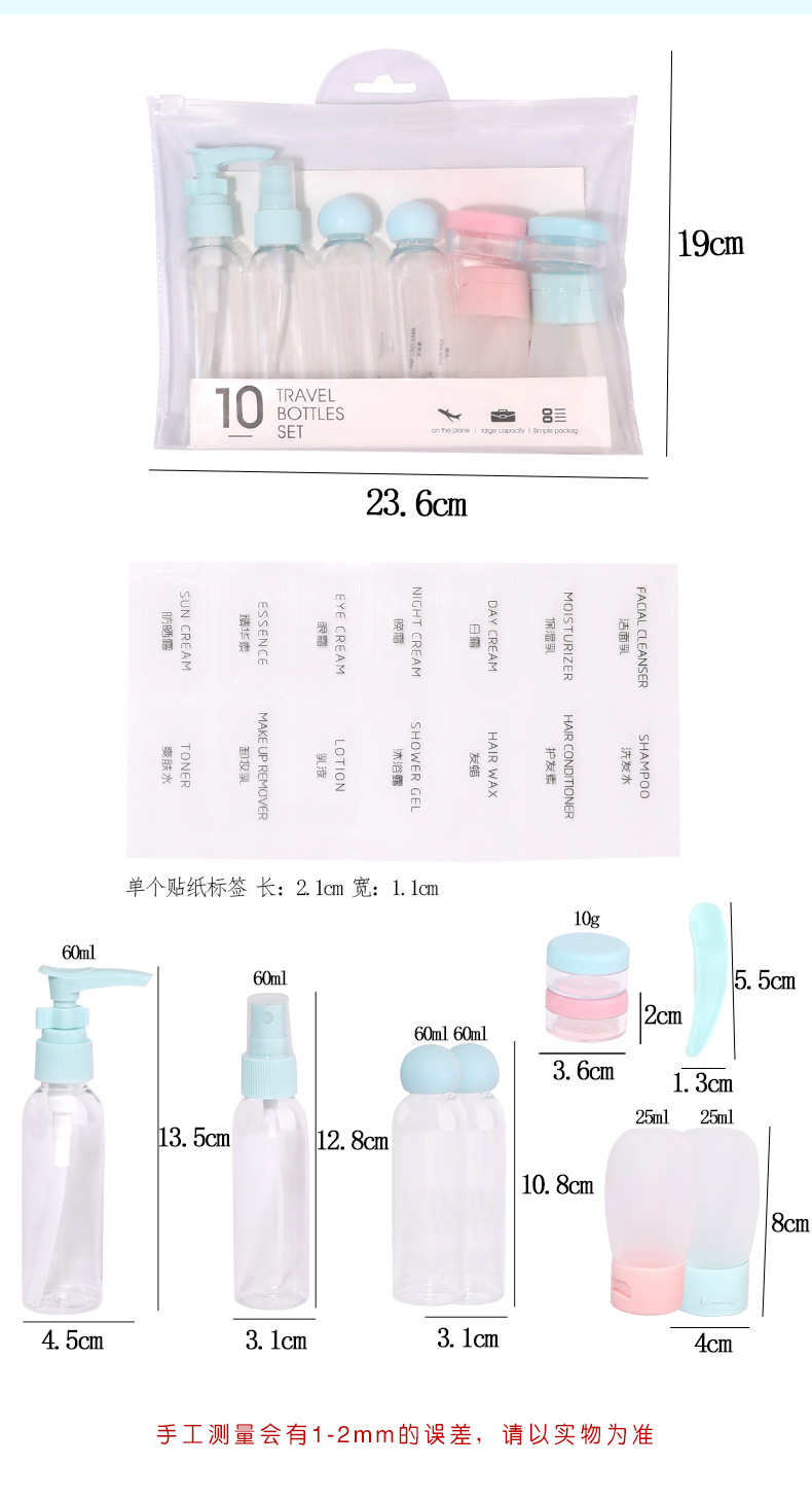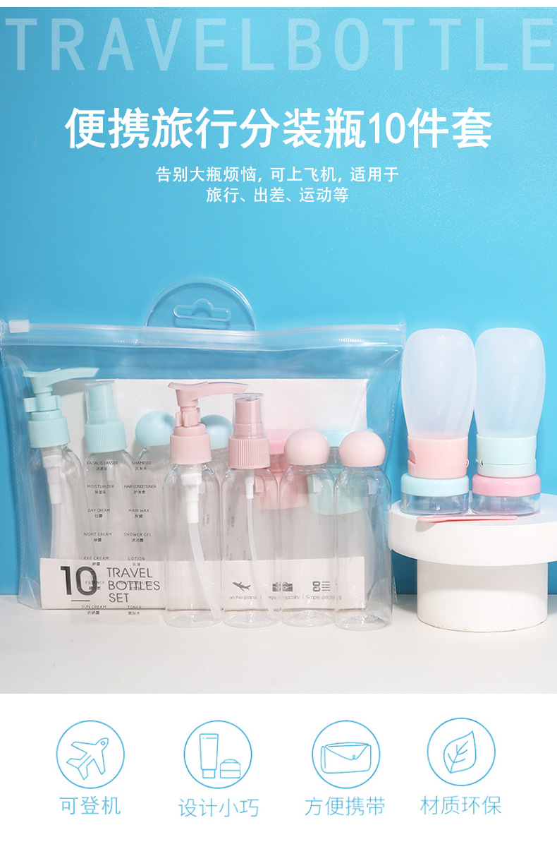 60ml旅行分装瓶10件套装 乳液分装瓶 空瓶子套装化妆品塑料瓶批发