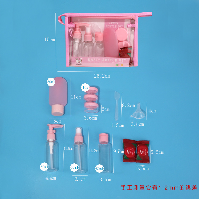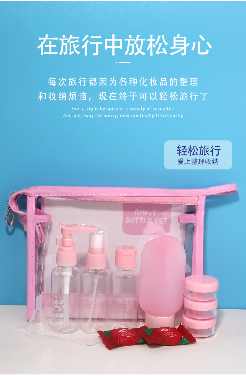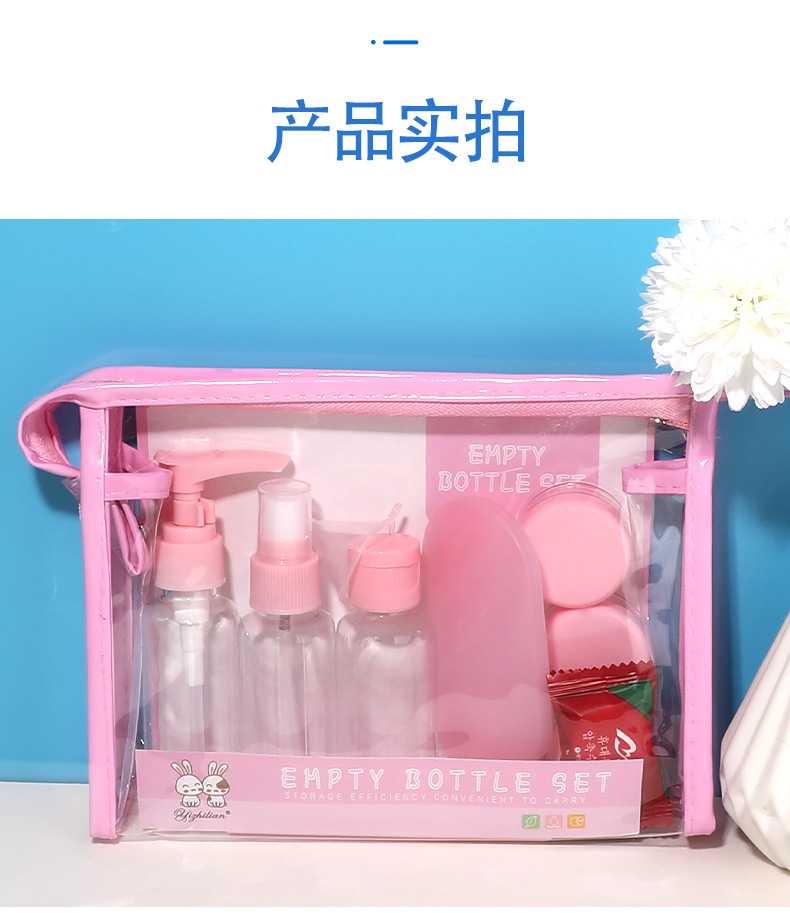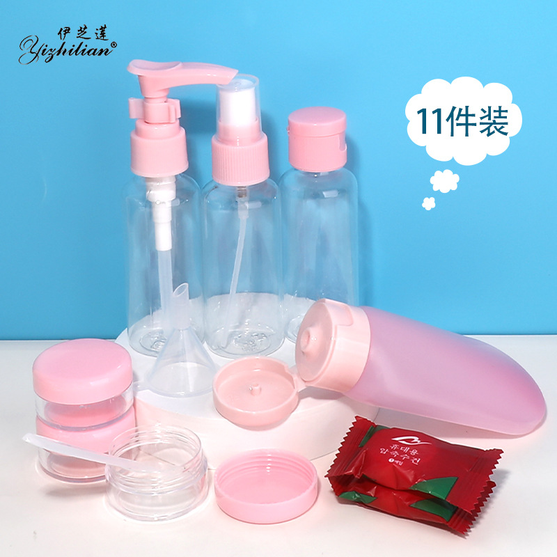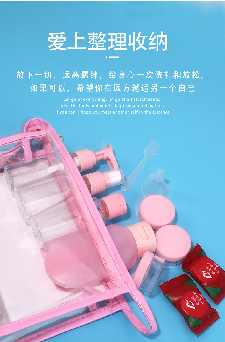 便携旅行分装瓶11件套 按压塑料瓶 空瓶子带压缩洗脸巾套装 批发