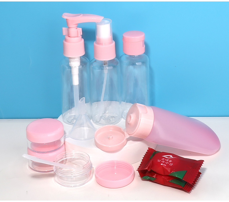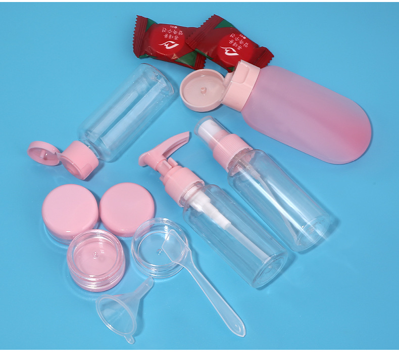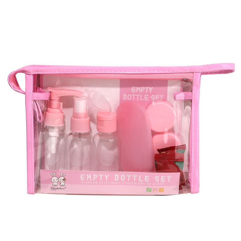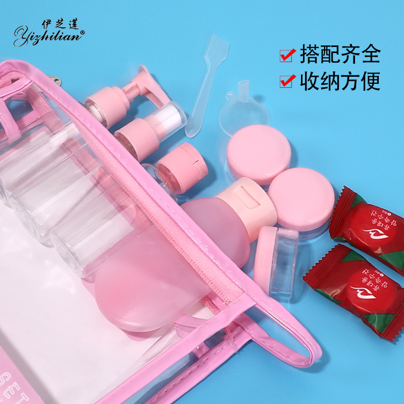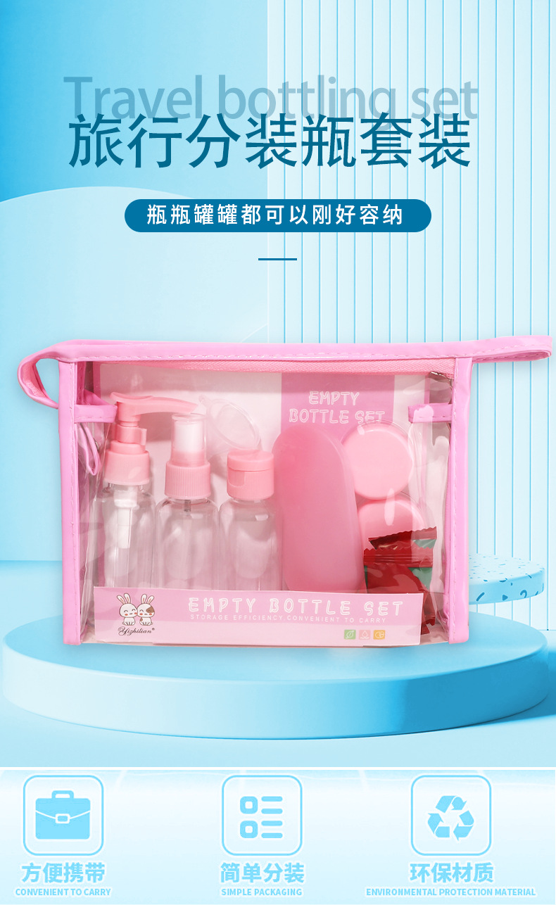 便携旅行分装瓶11件套 按压塑料瓶 空瓶子带压缩洗脸巾套装 批发