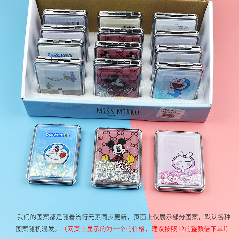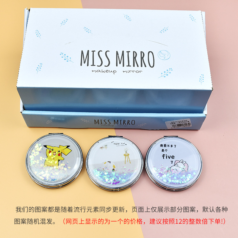 流沙化妆双面镜便携式折叠小镜子挂饰学生卡通手持化妆镜梳妆镜