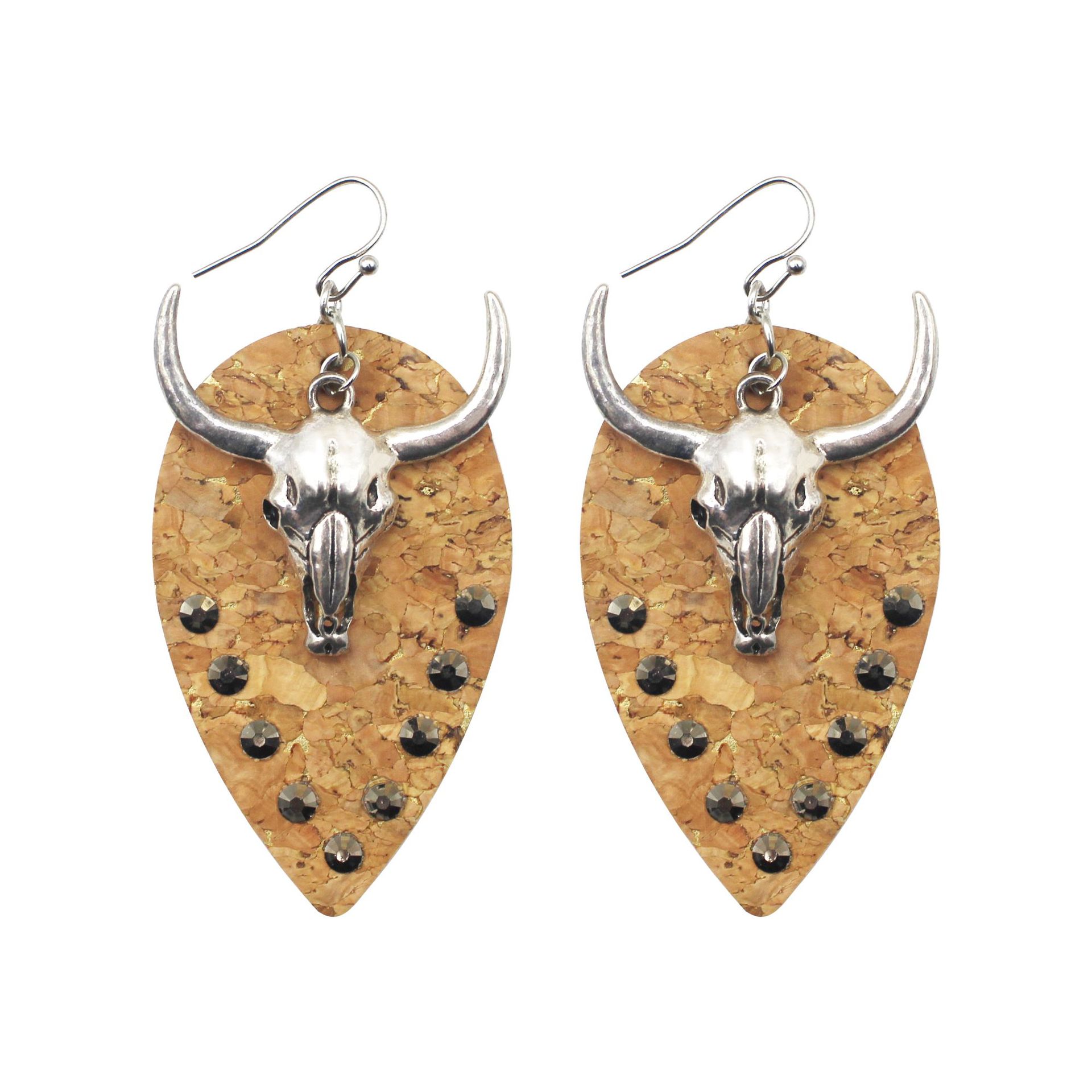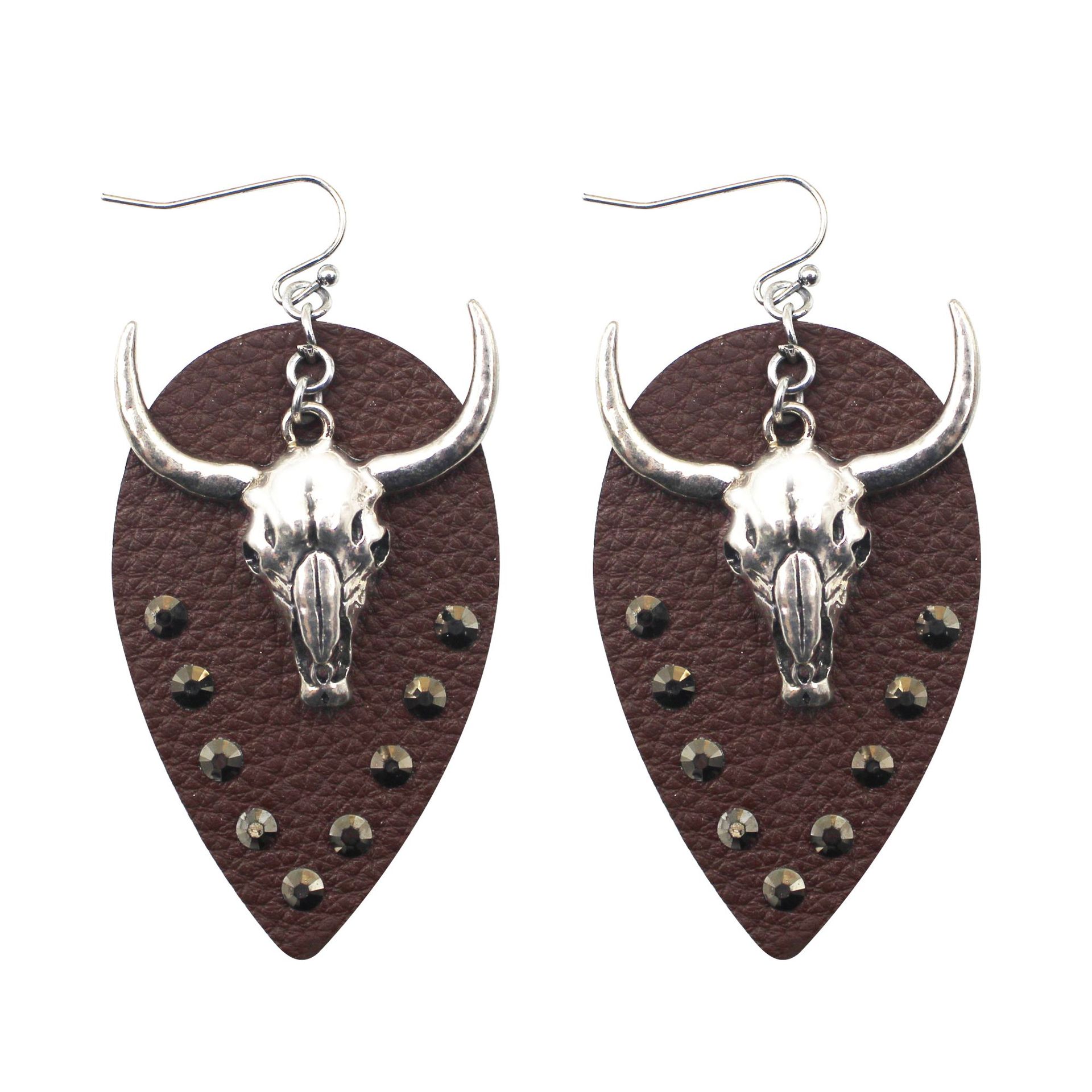 西部牛仔牛头皮革耳环点钻水钻欧美复古PU民族风耳环跨境异域风情