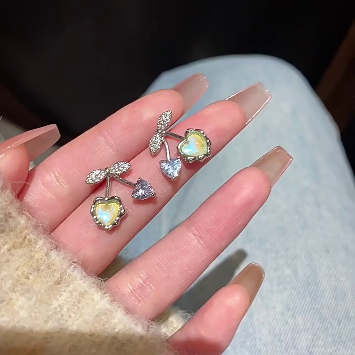 S925银针百搭气质精致锆石爱心耳环高级感耳饰轻奢小众珍珠耳钉女