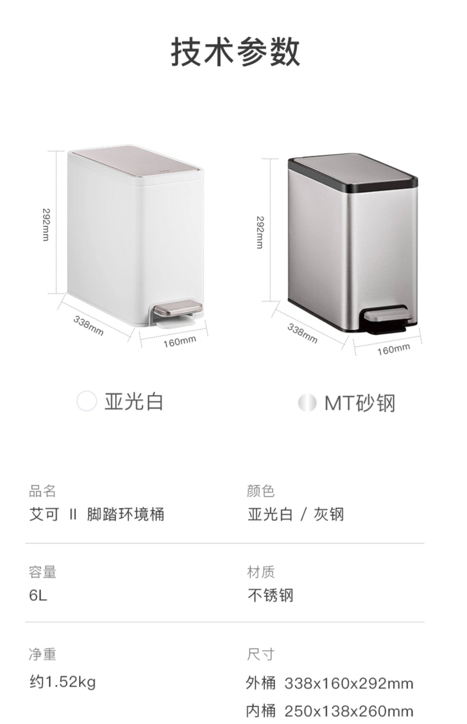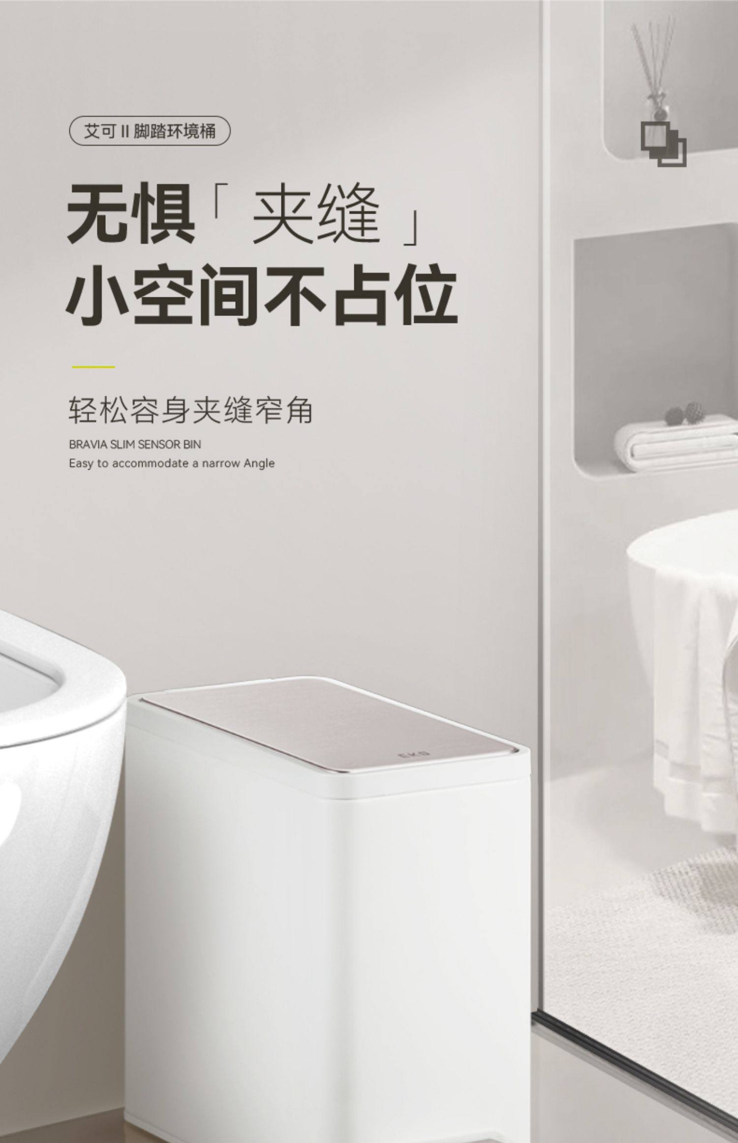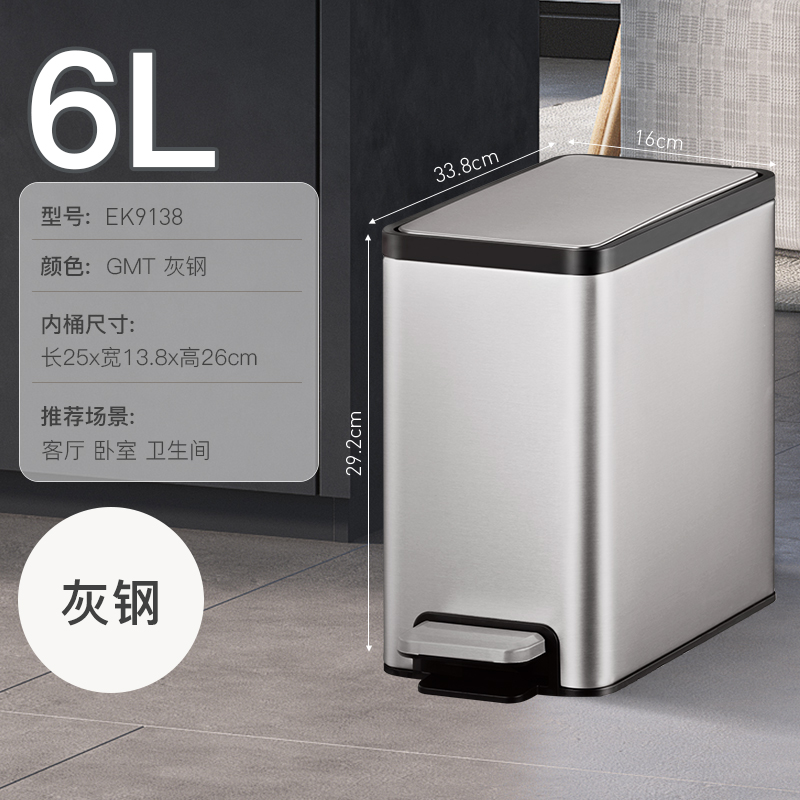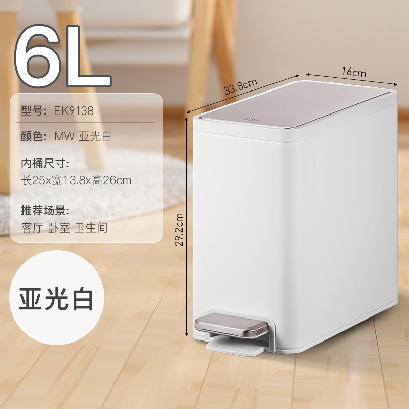 EKO夹缝不锈钢垃圾桶脚踏式家用卫生间厕所客厅卧室带盖垃圾桶