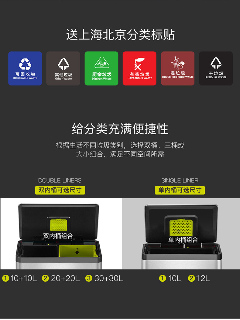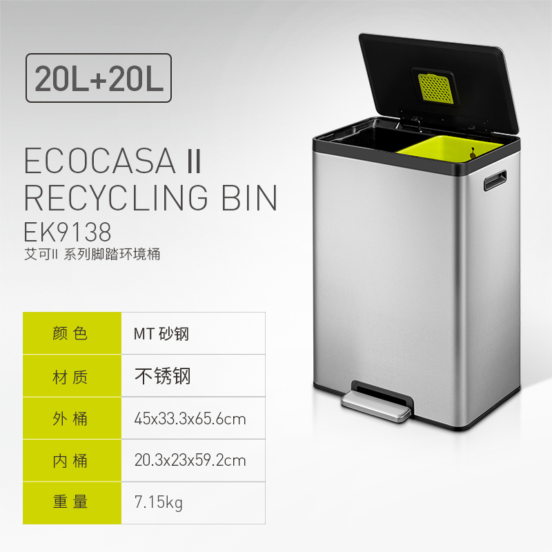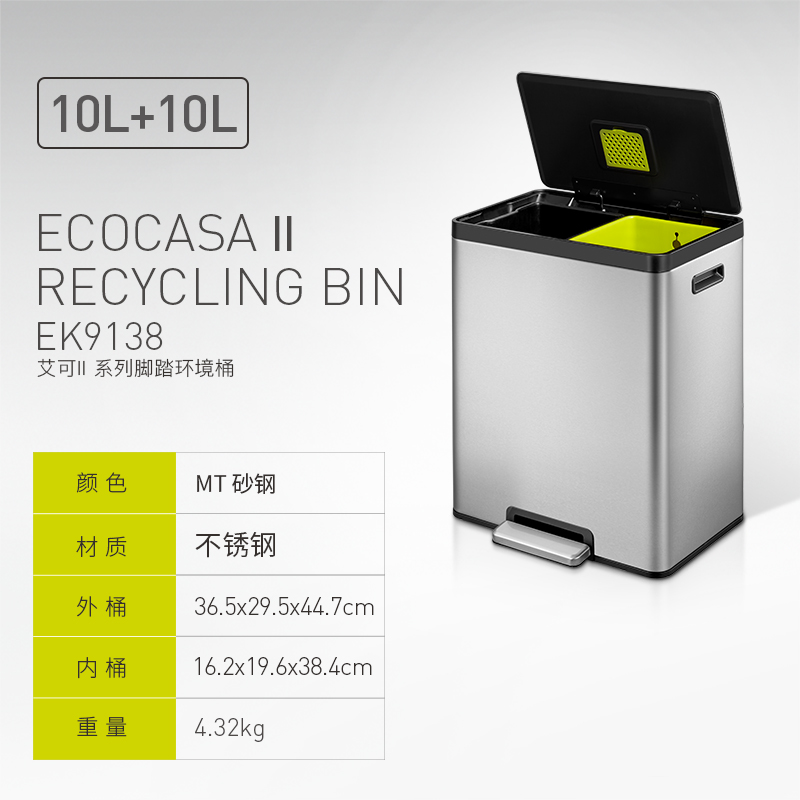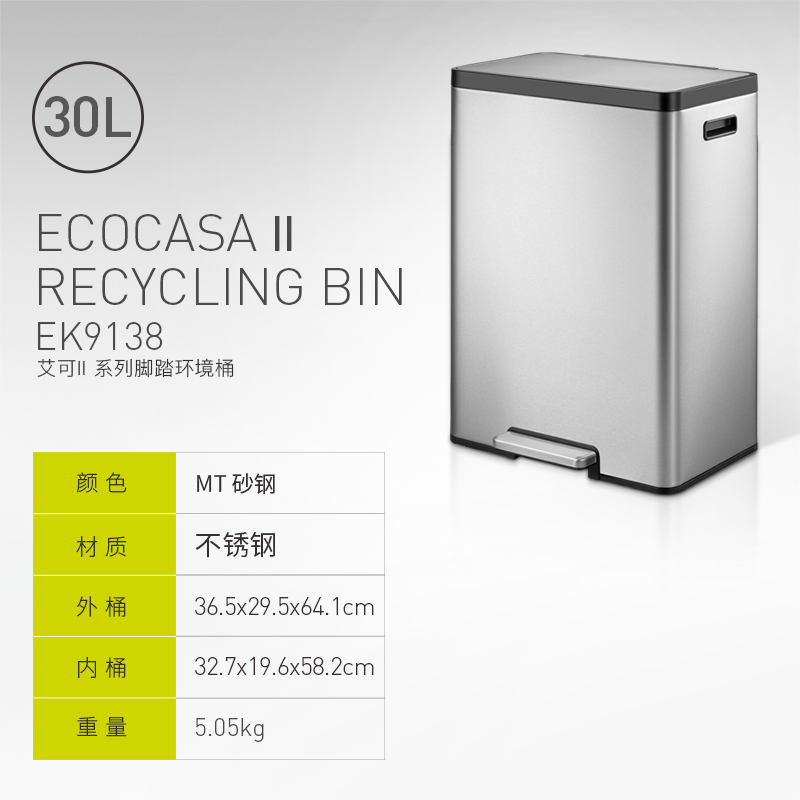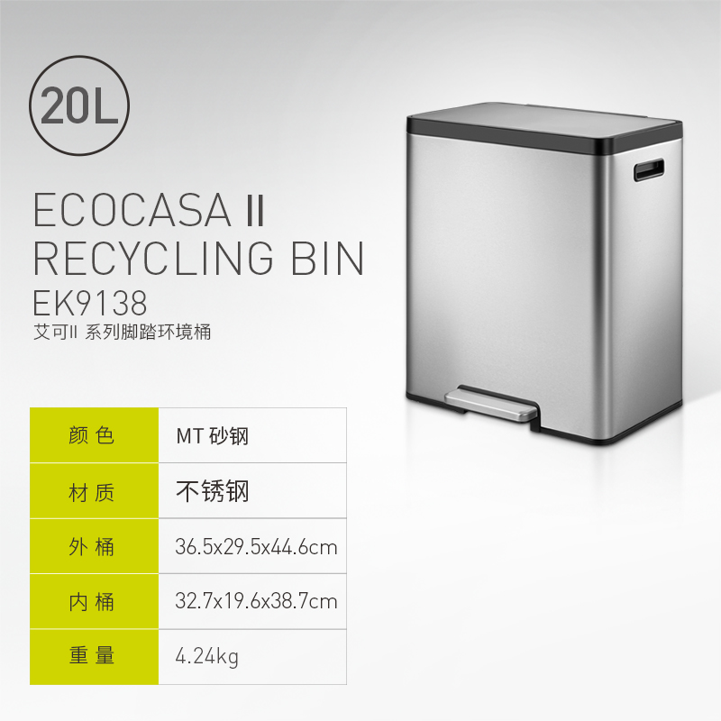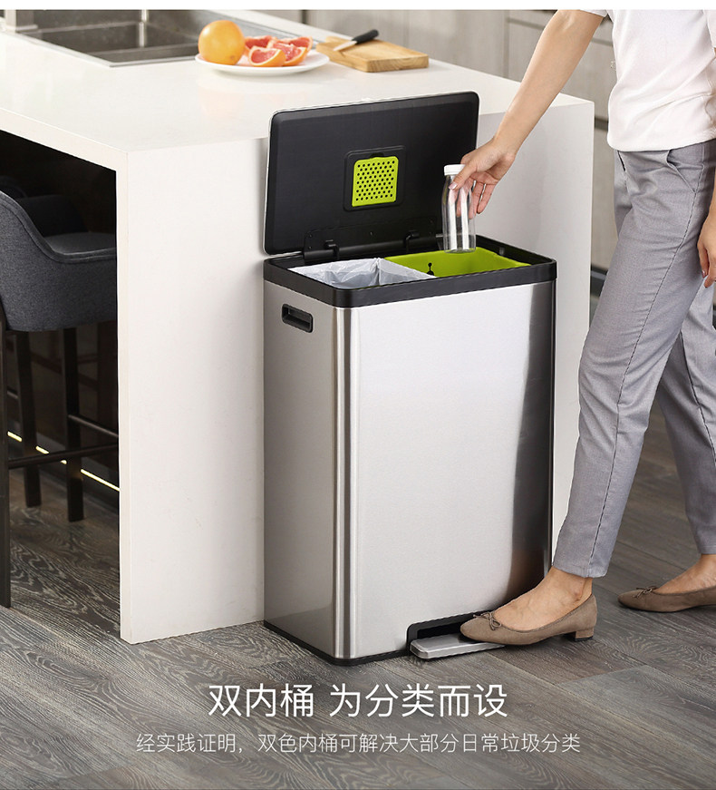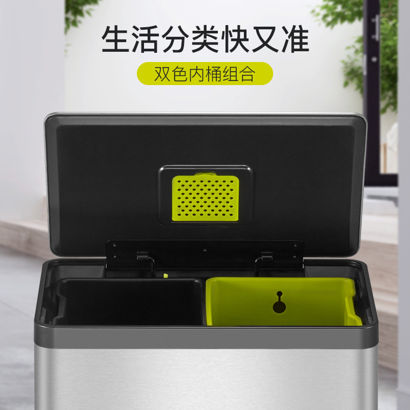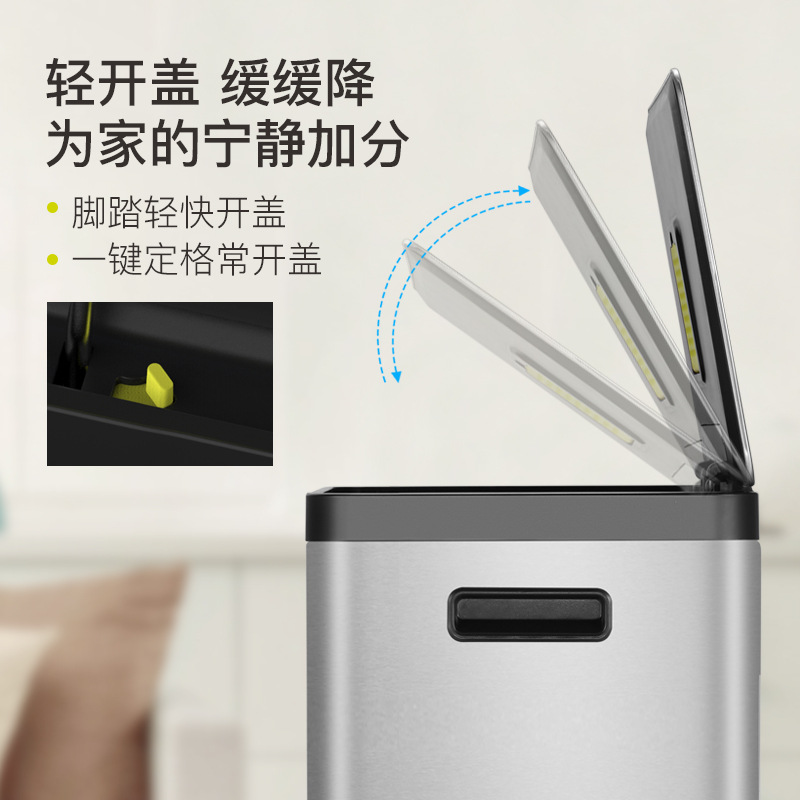 EKO垃圾桶家用客厅厨房大容量轻奢不锈钢脚踏式脚踩带盖商用大桶