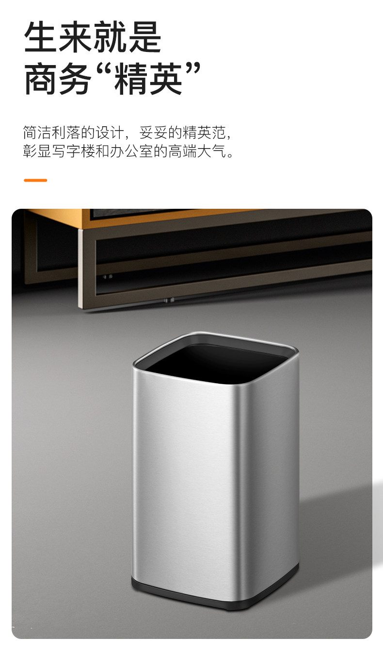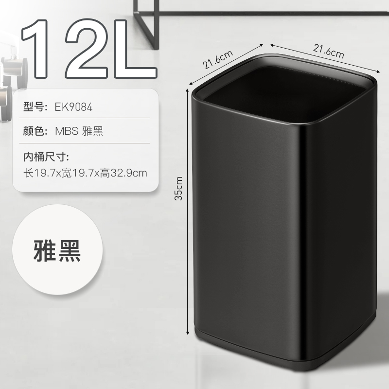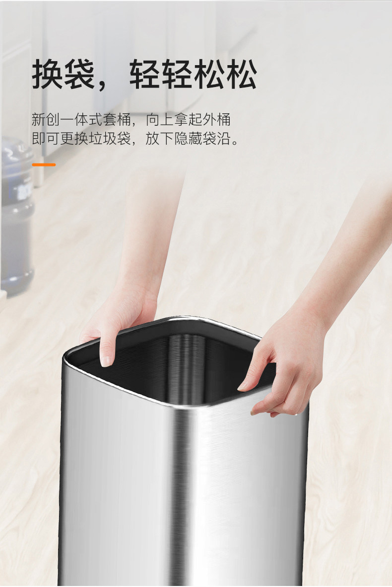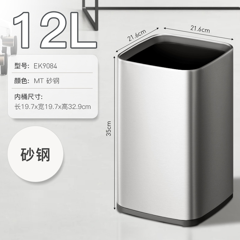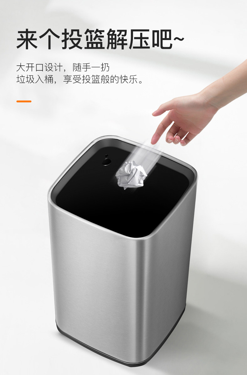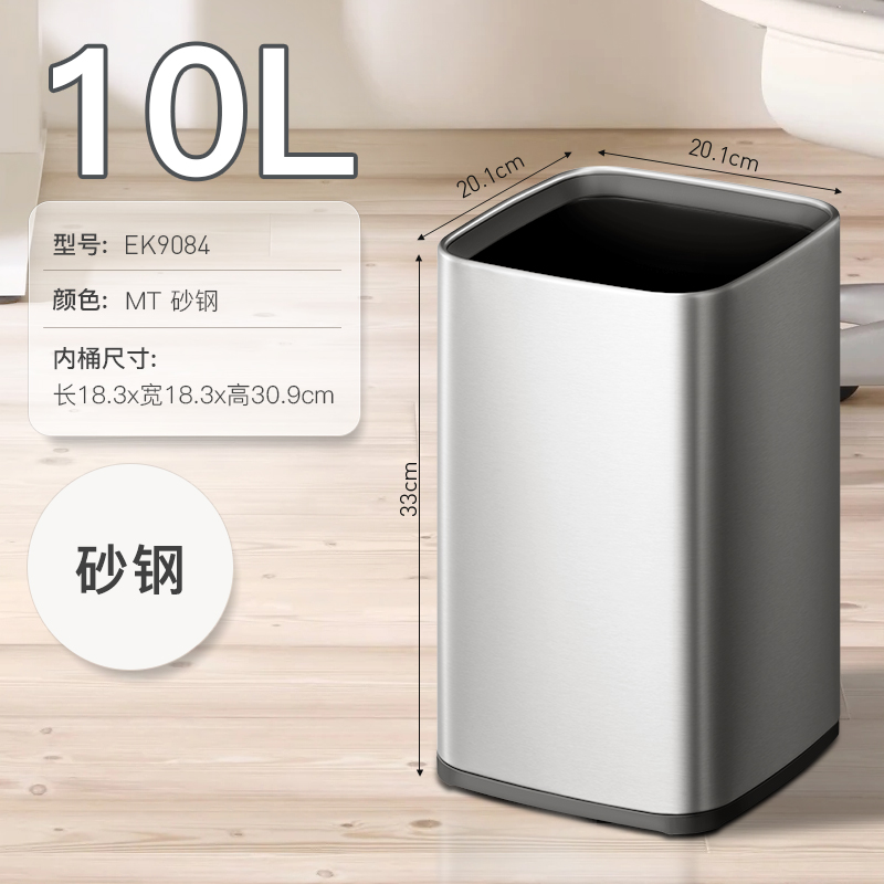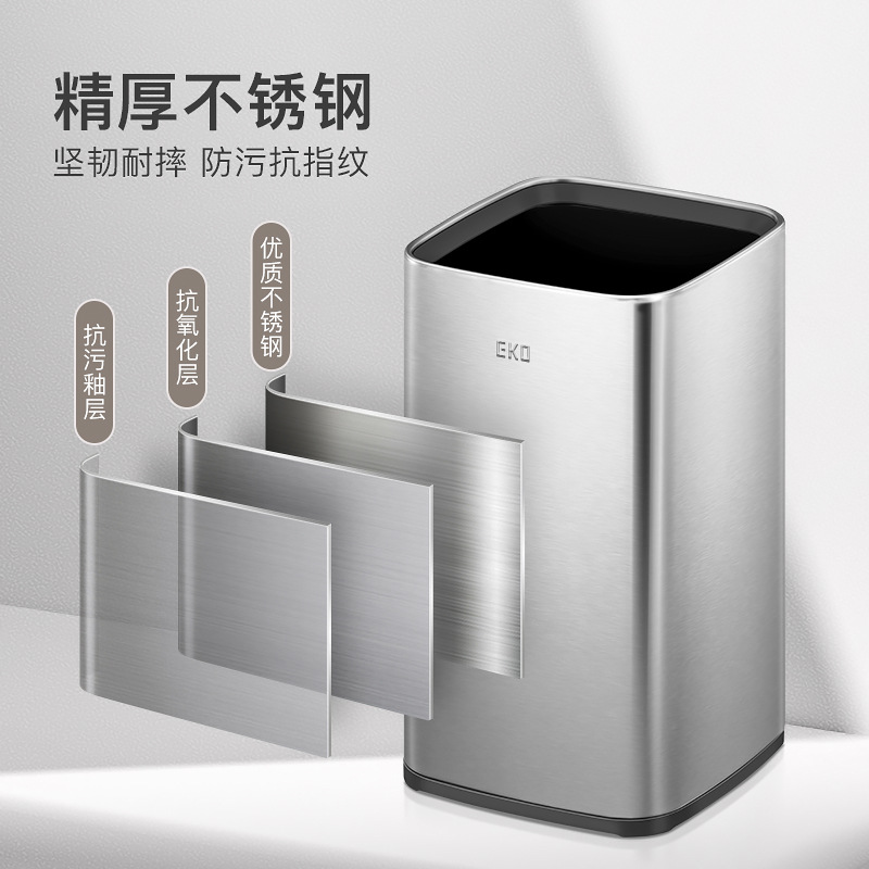 EKO厨房垃圾桶家用客厅轻奢无盖不锈钢卫生间厕所专用大号开口桶