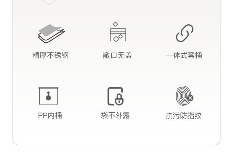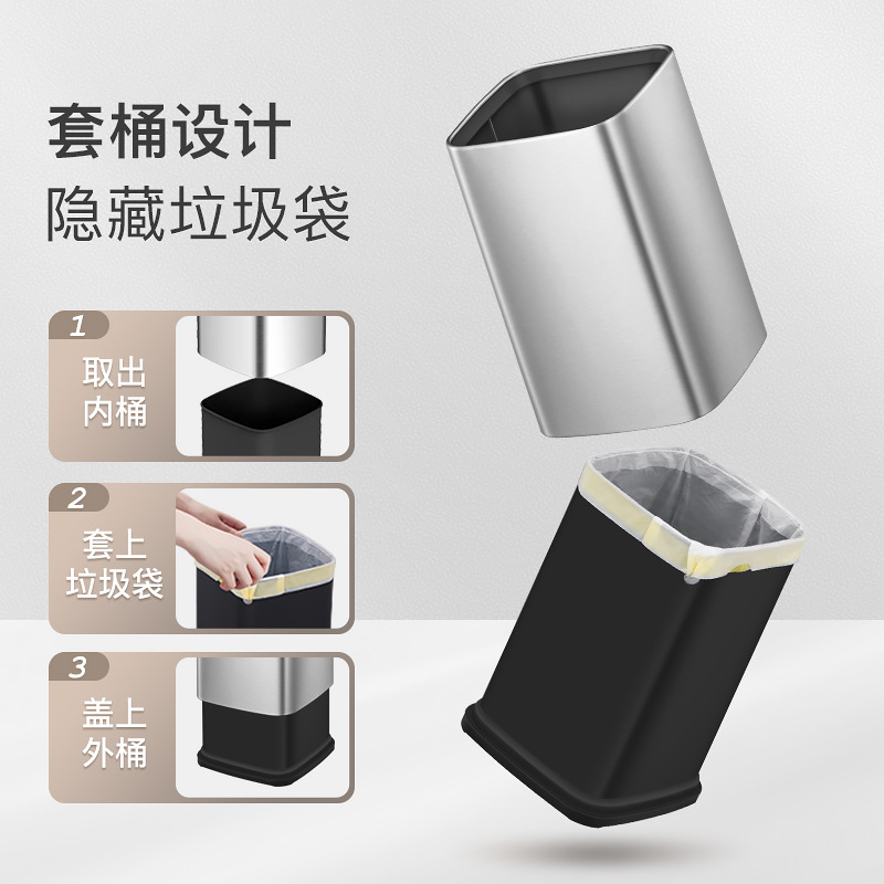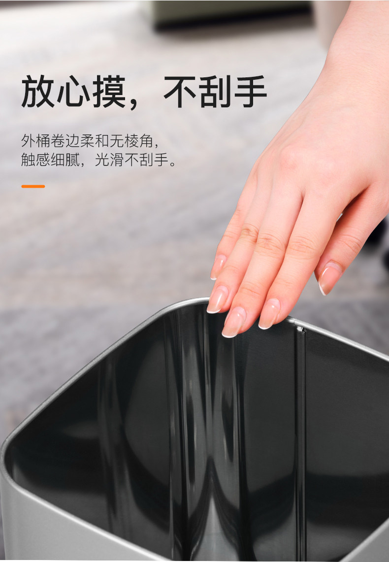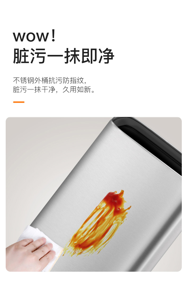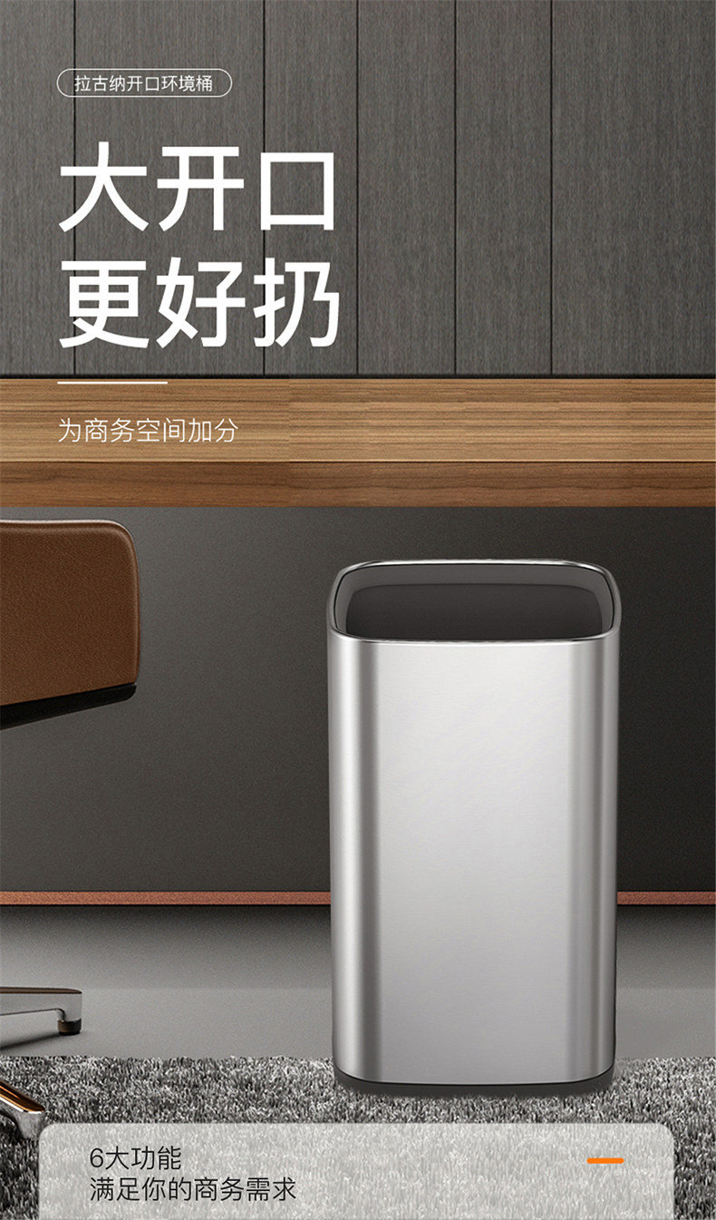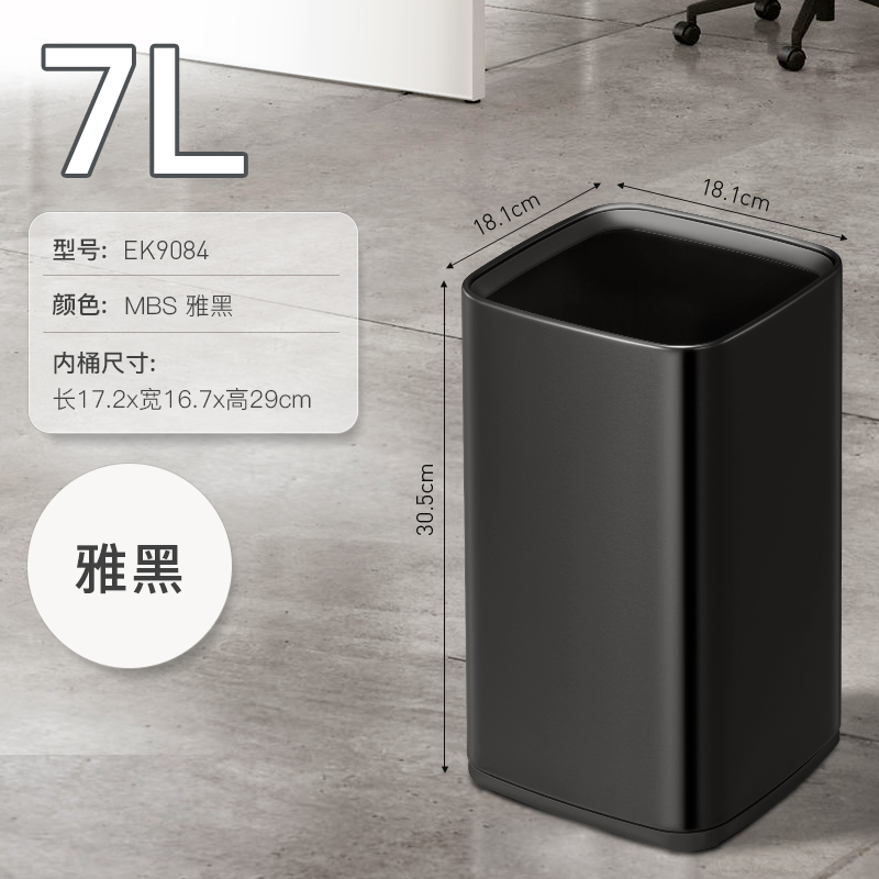 EKO厨房垃圾桶家用客厅轻奢无盖不锈钢卫生间厕所专用大号开口桶