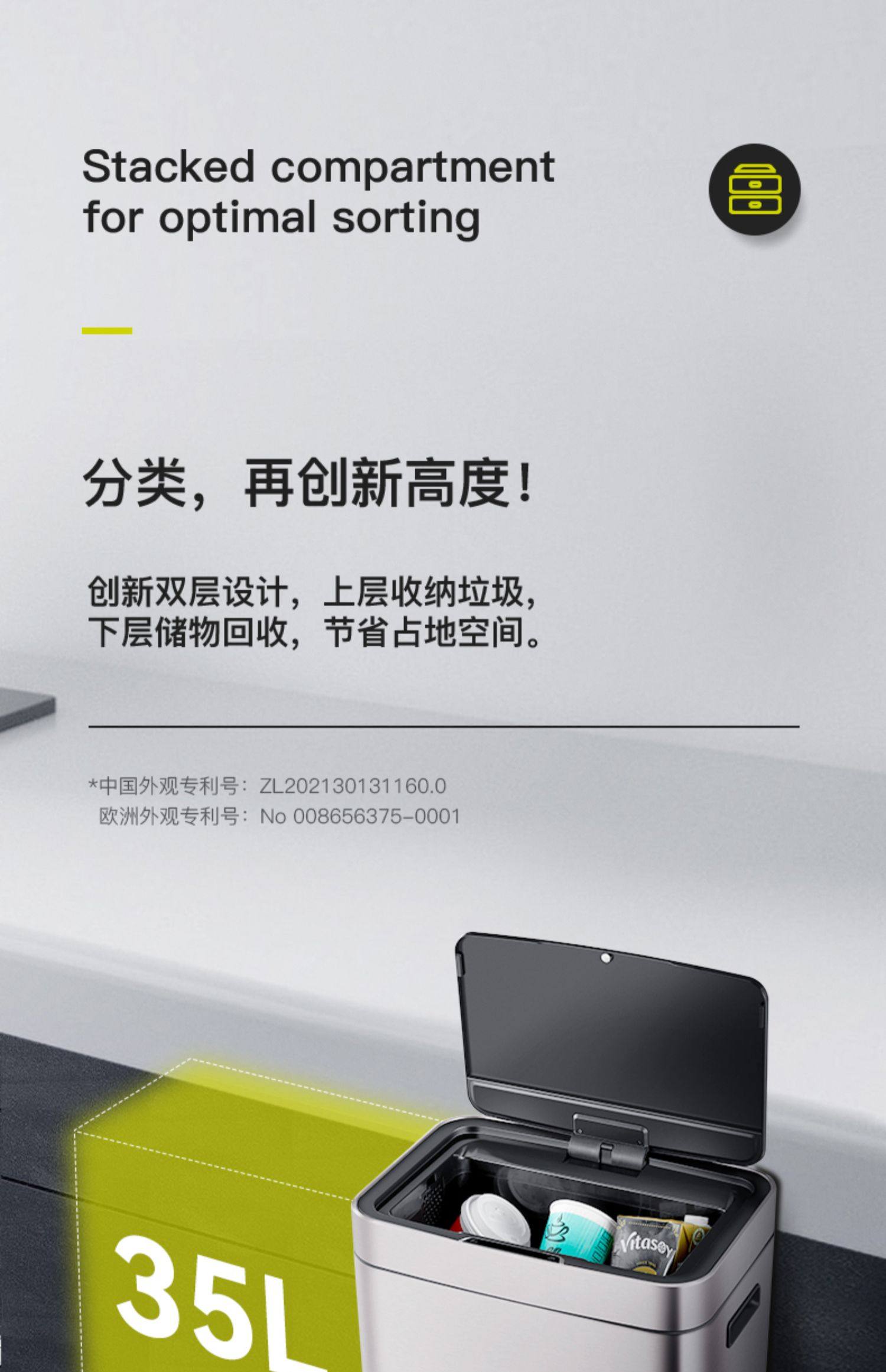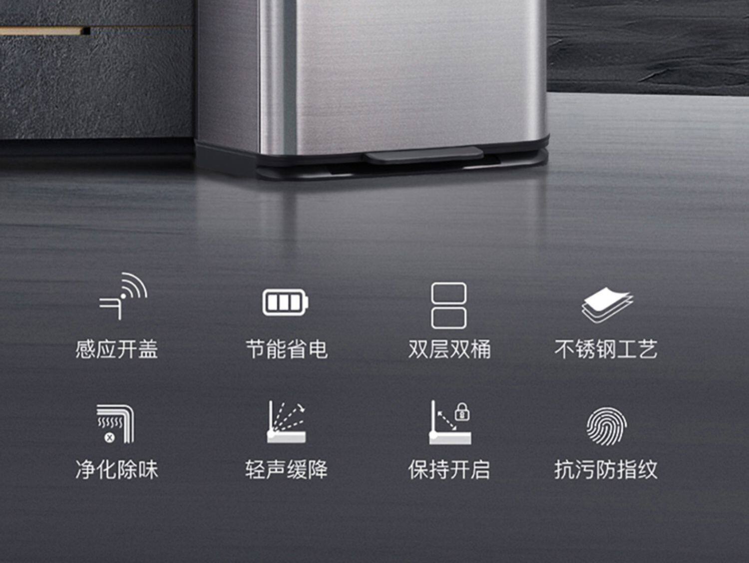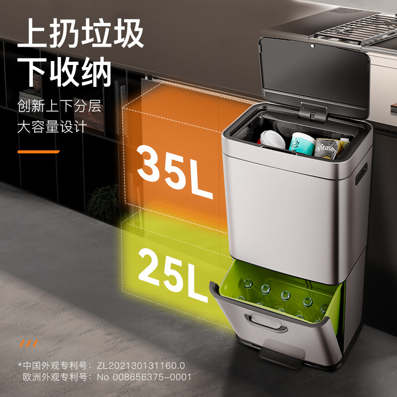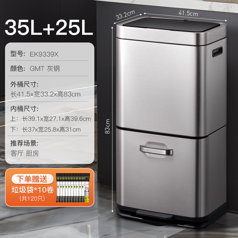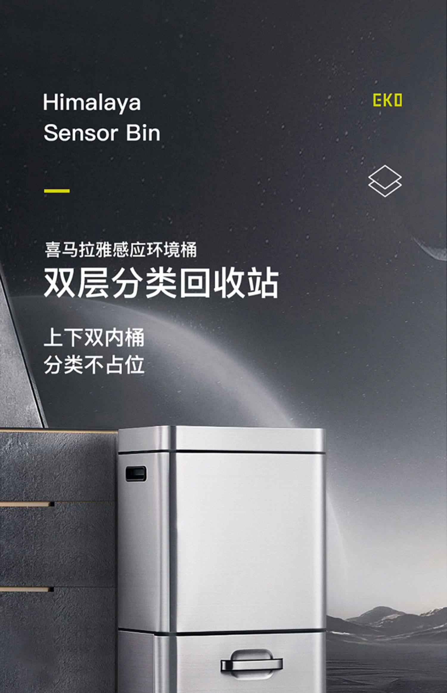 EKO双层厨房垃圾桶智能感应分类家用不锈钢乾湿分离大容量脚踏式