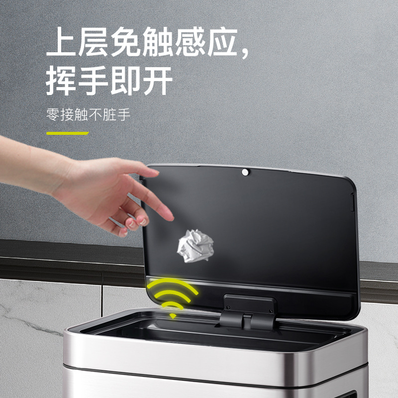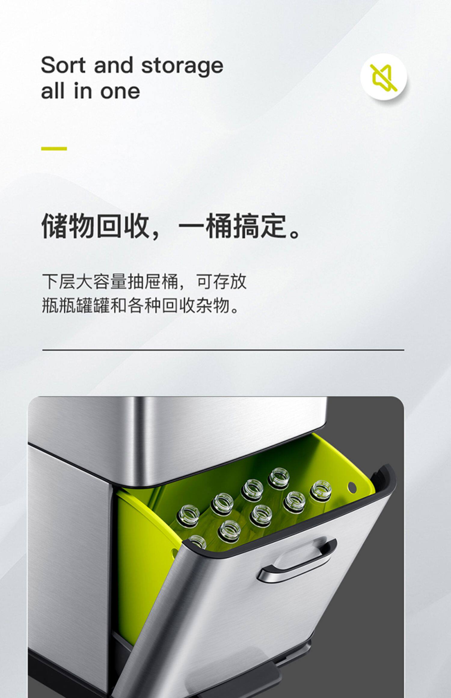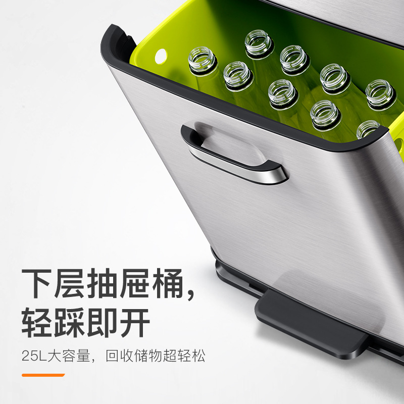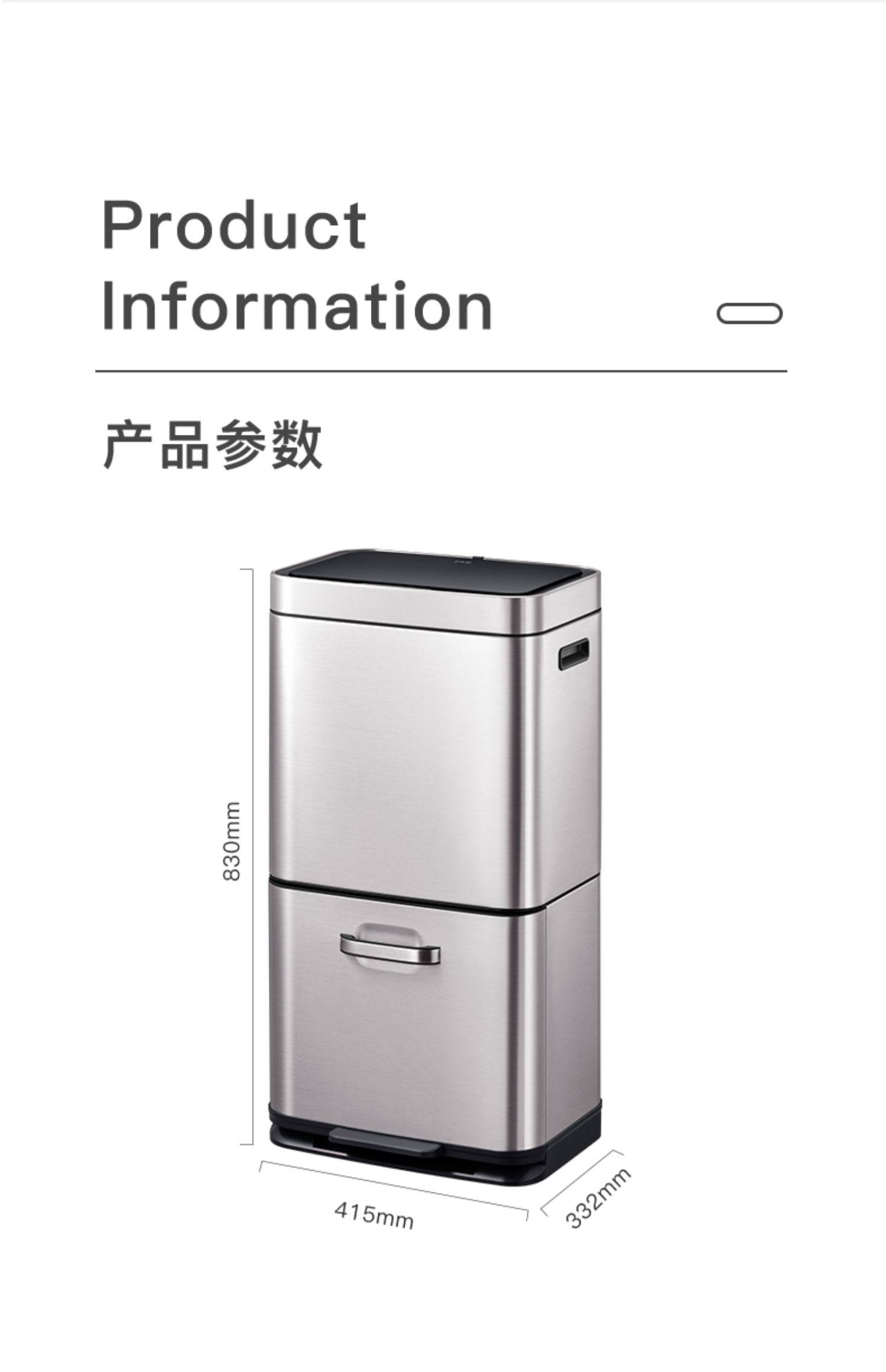 EKO双层厨房垃圾桶智能感应分类家用不锈钢乾湿分离大容量脚踏式