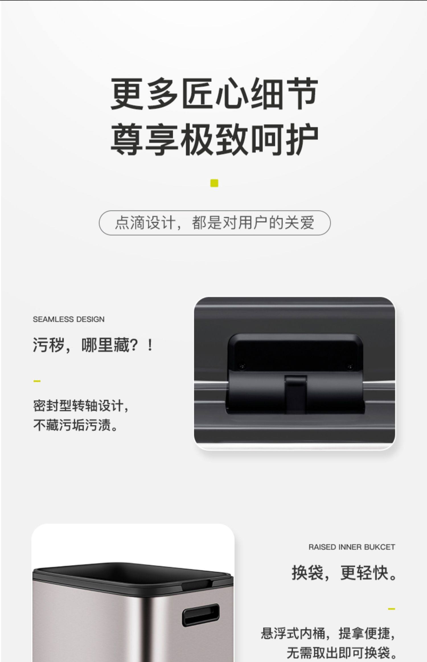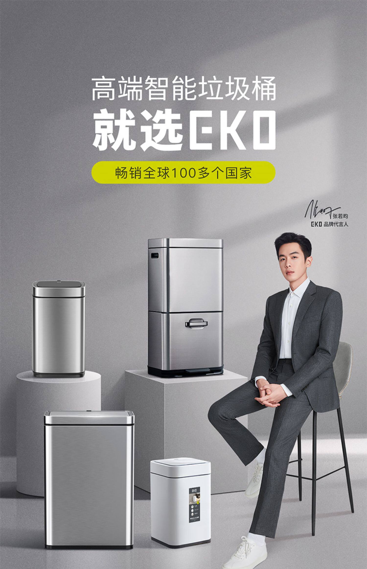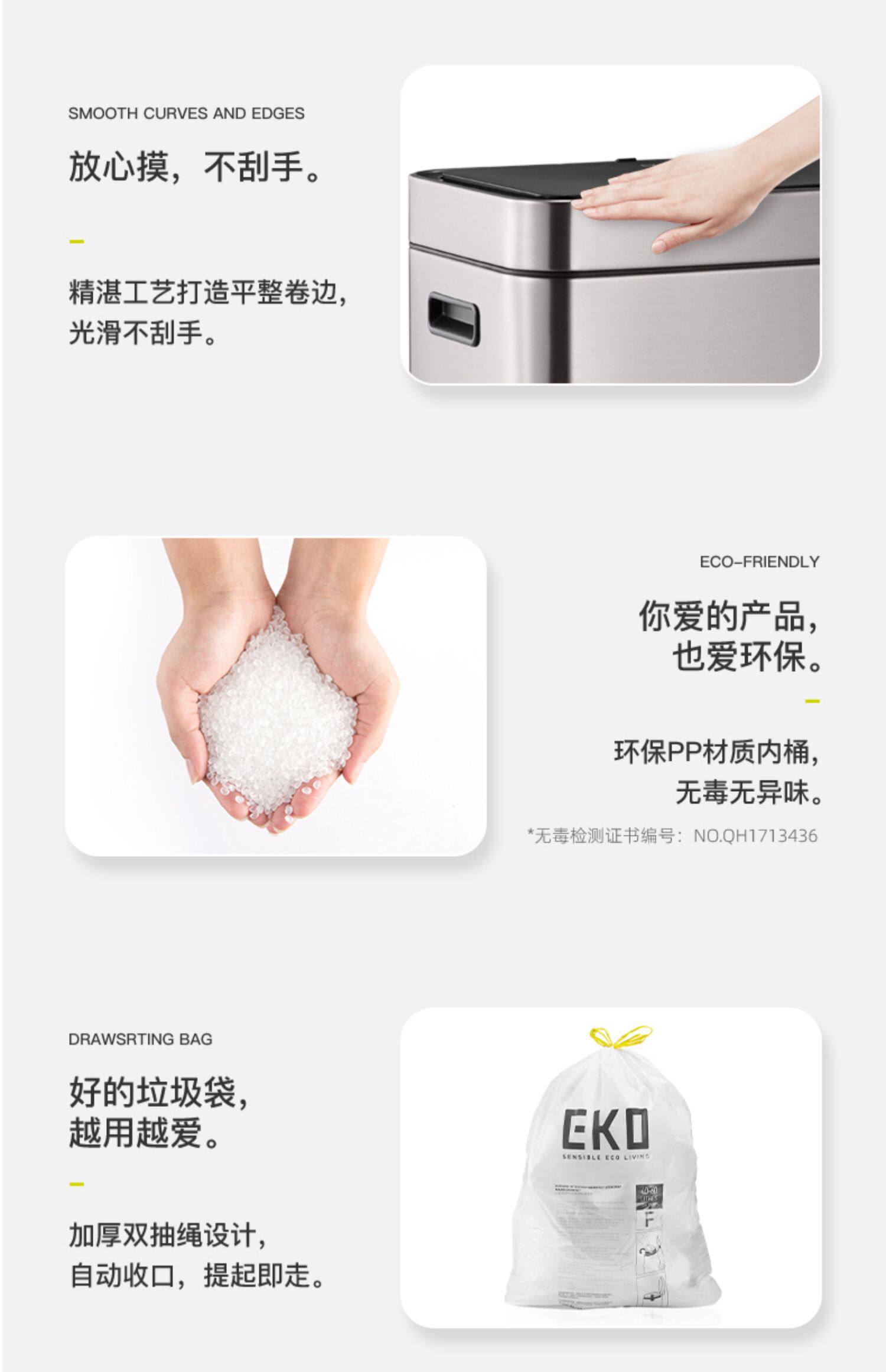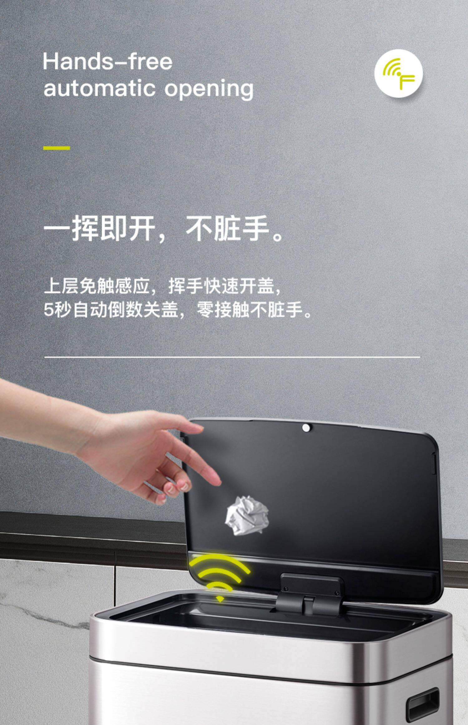 EKO双层厨房垃圾桶智能感应分类家用不锈钢乾湿分离大容量脚踏式