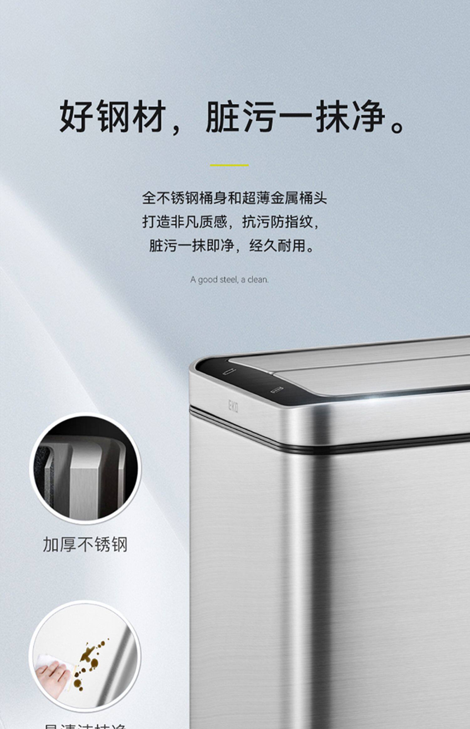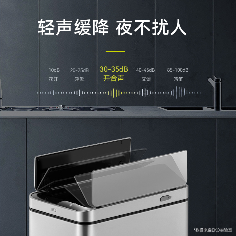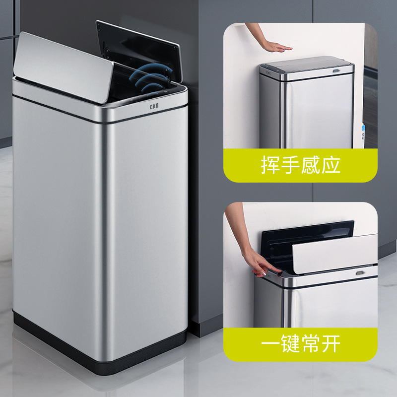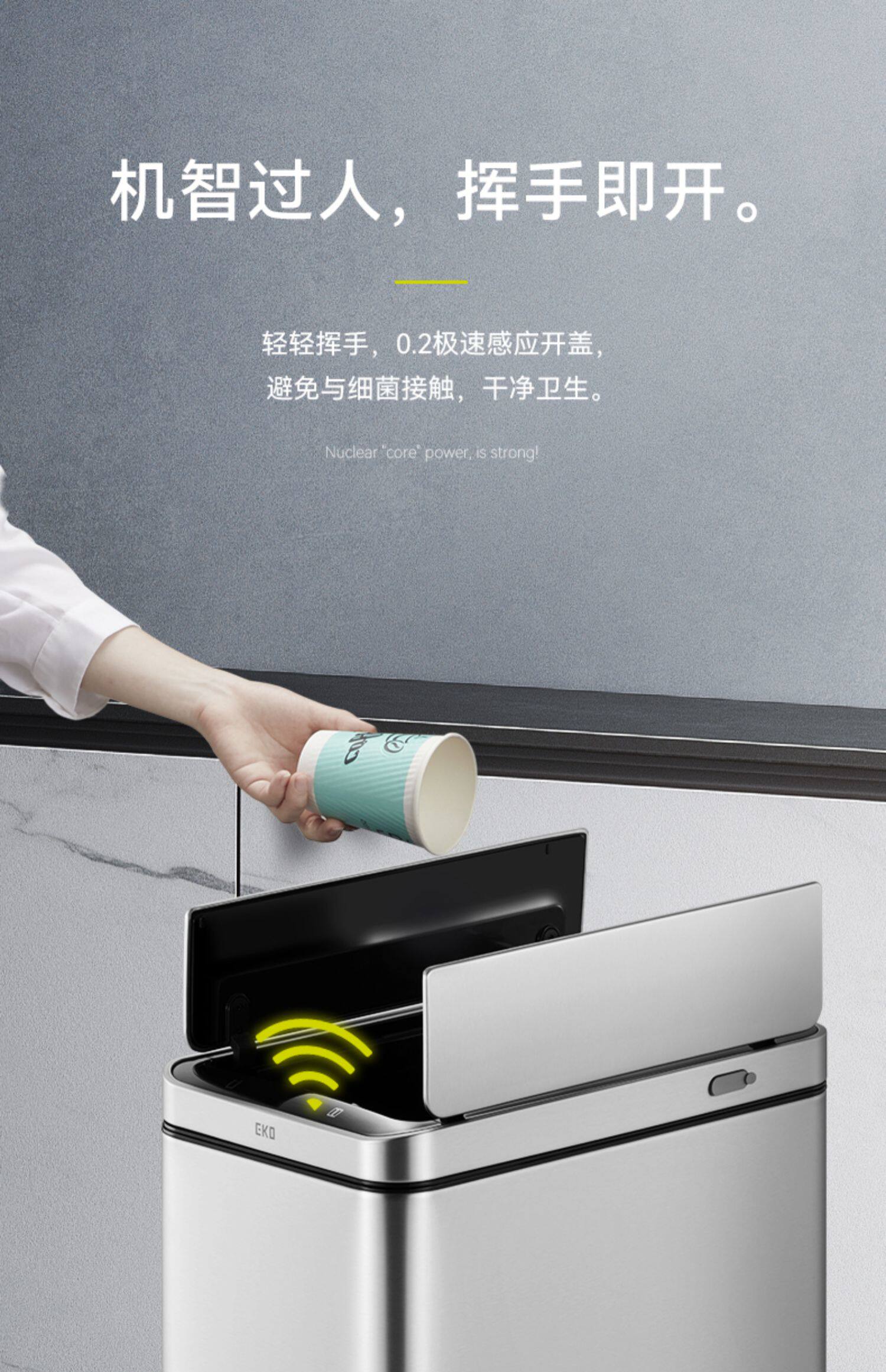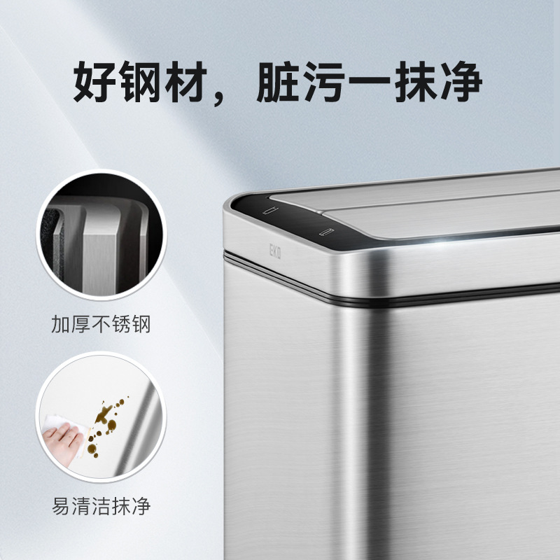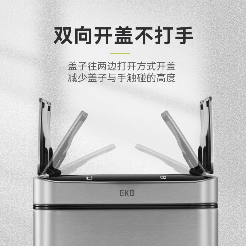 EKO智能感应垃圾桶家用客厅不锈钢轻奢双开盖30L大号厨房垃圾桶
