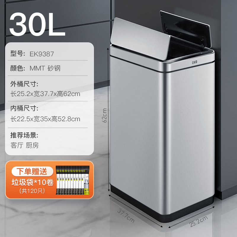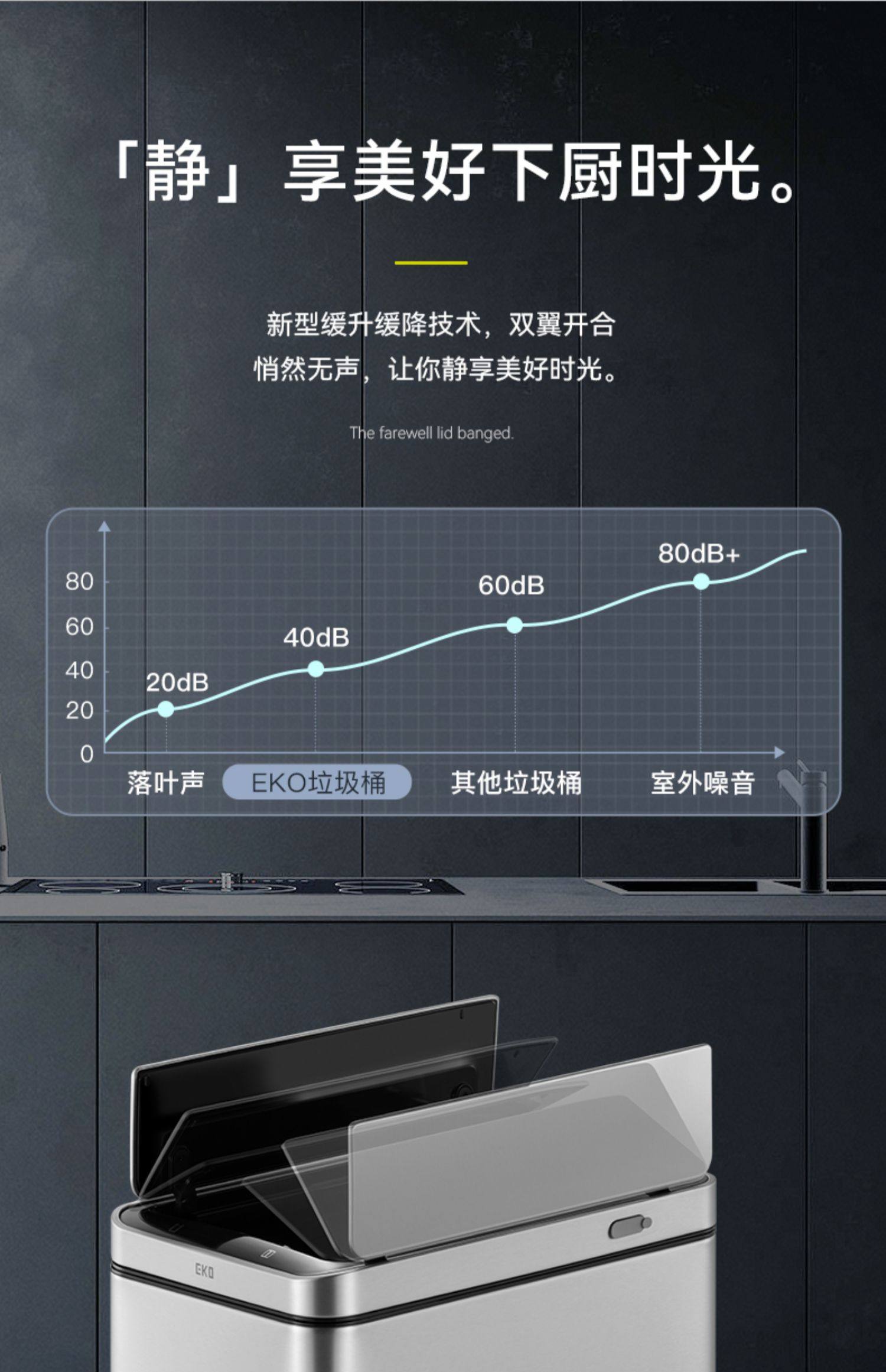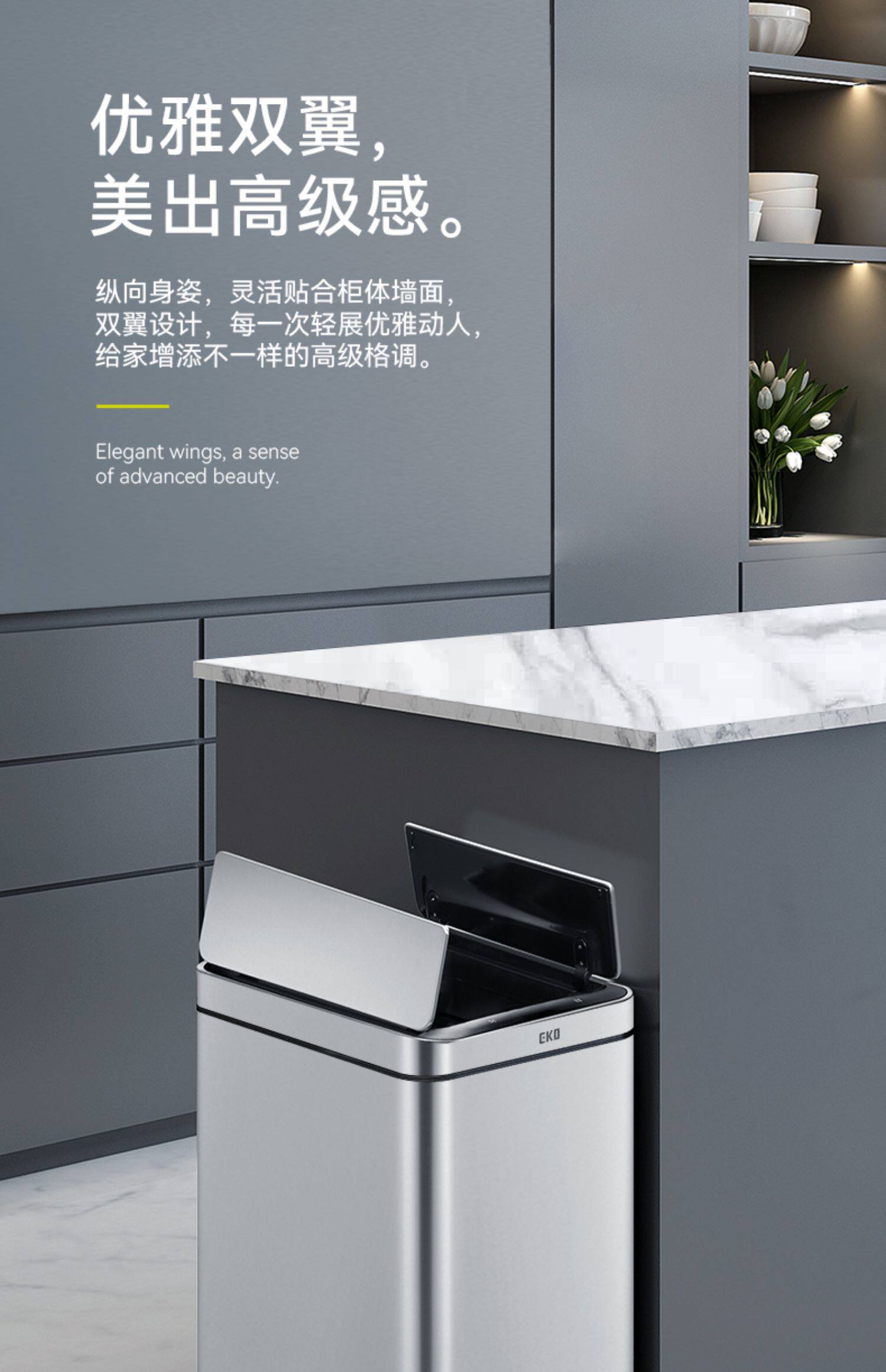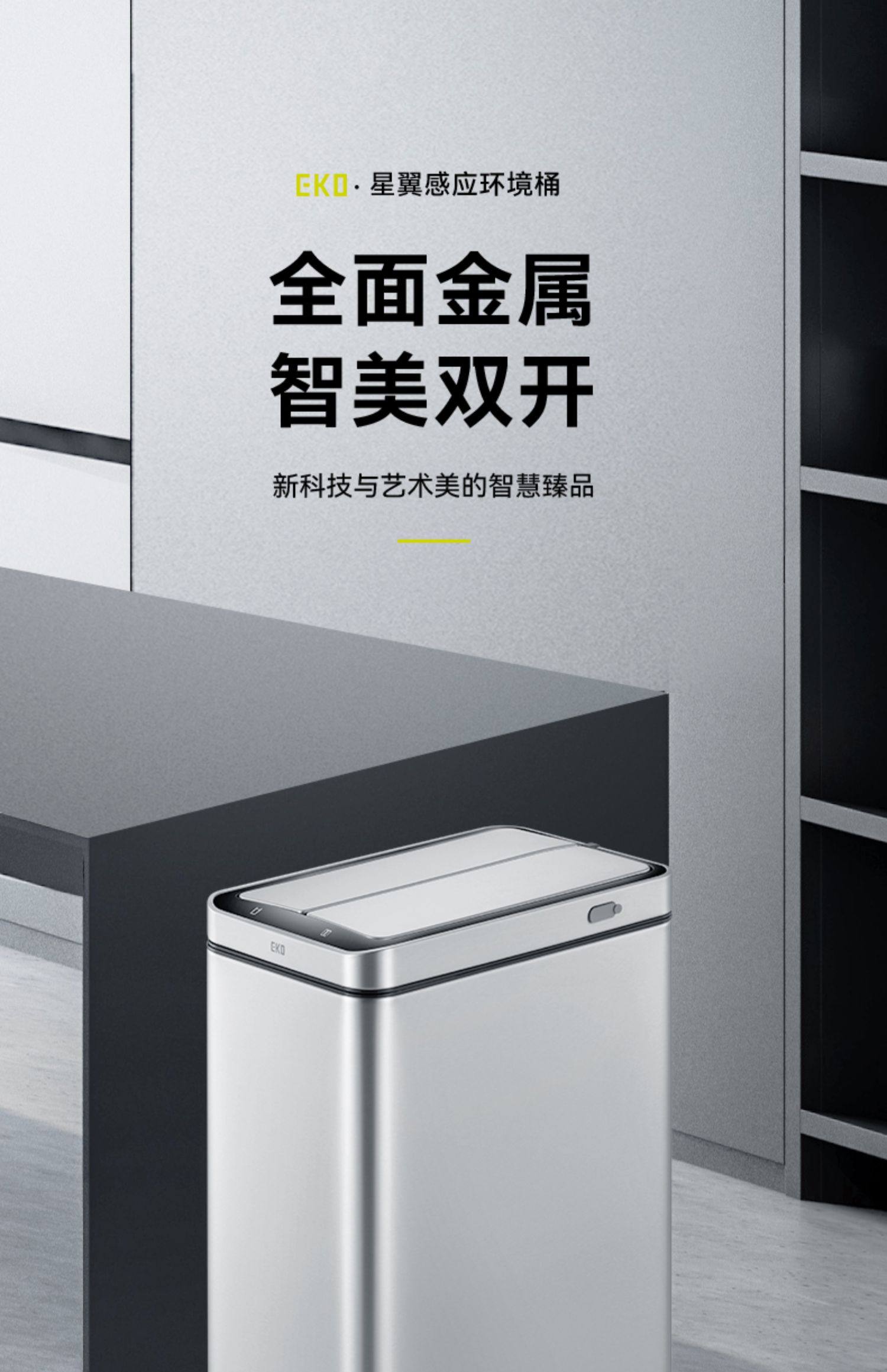 EKO智能感应垃圾桶家用客厅不锈钢轻奢双开盖30L大号厨房垃圾桶