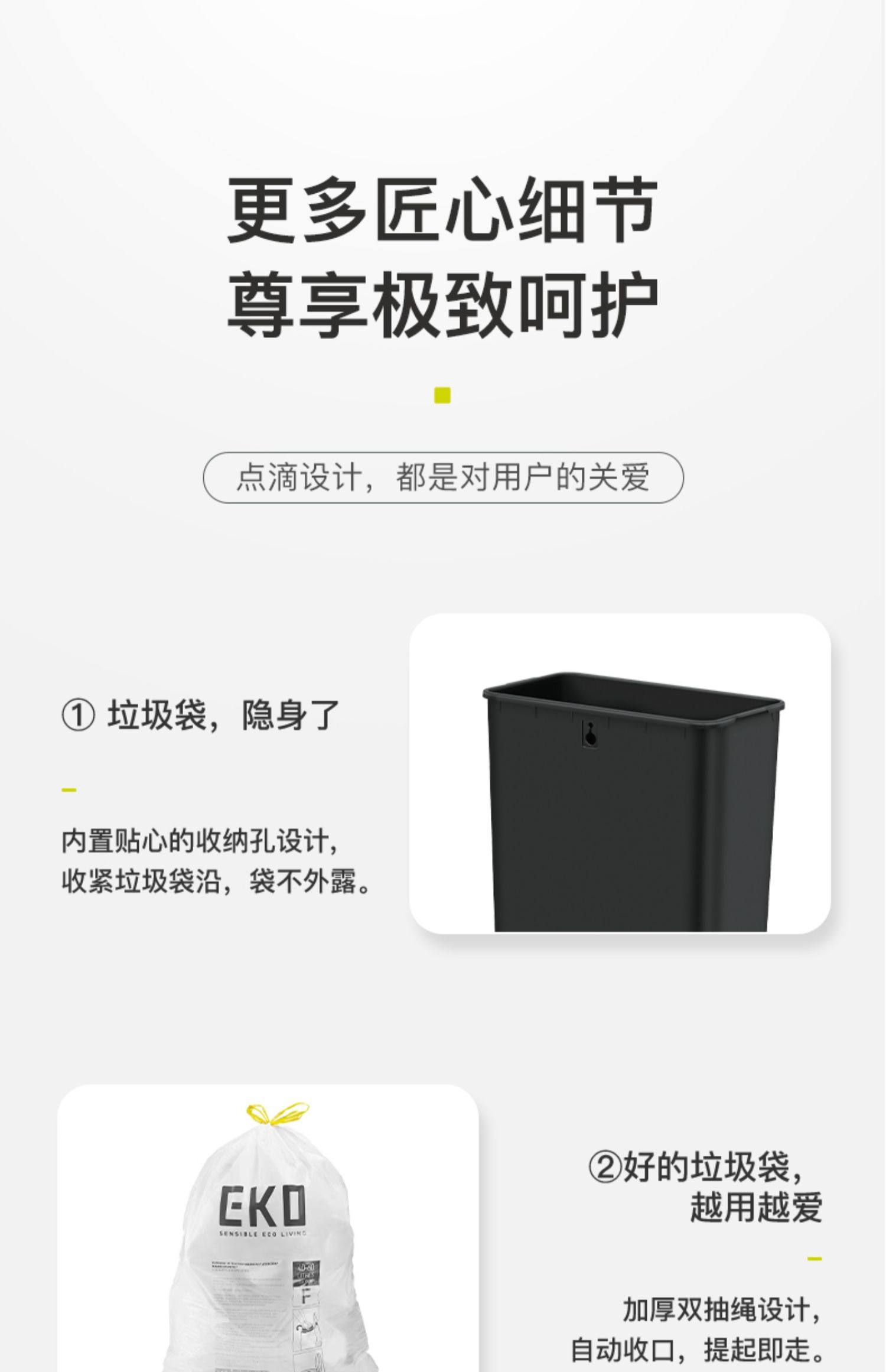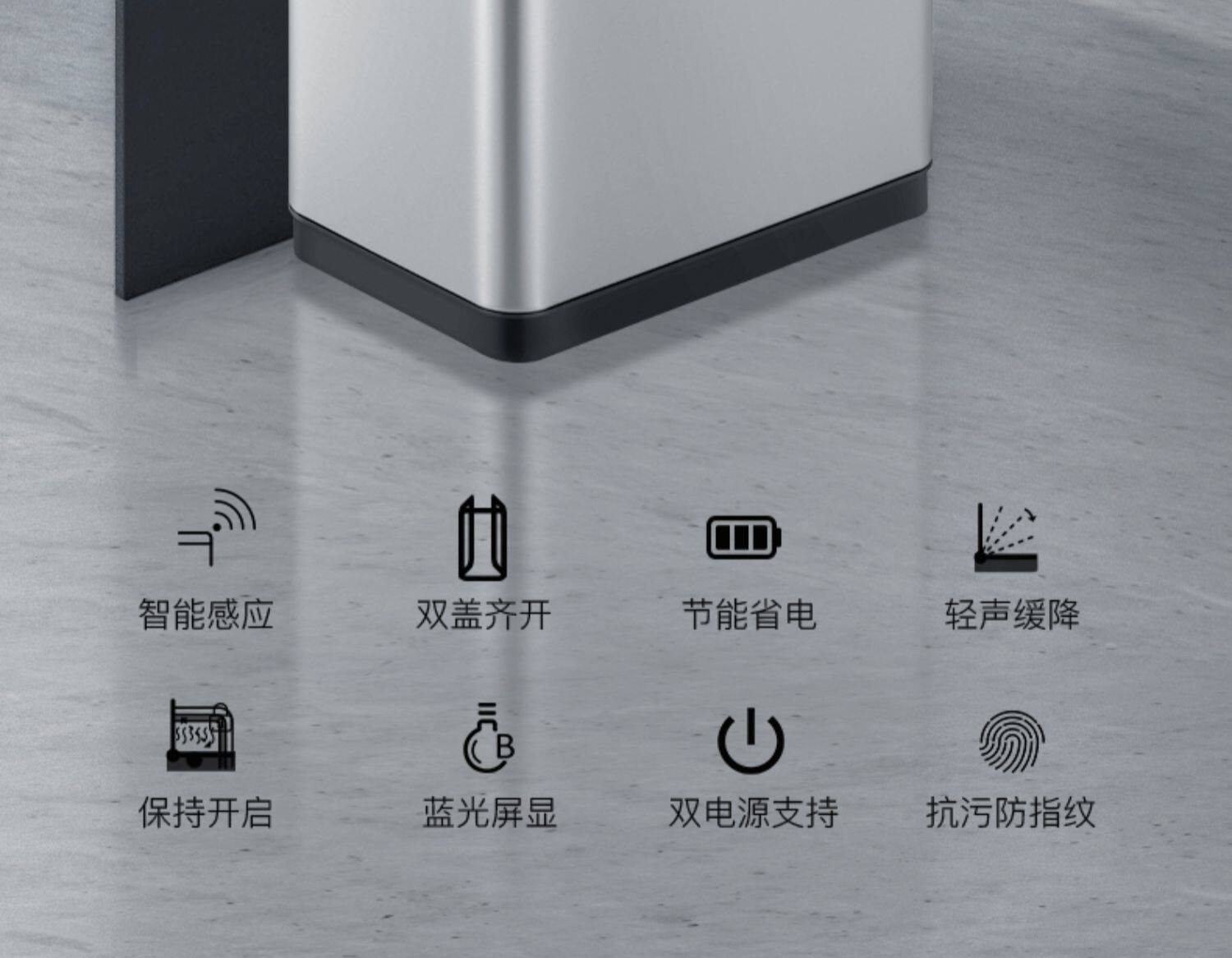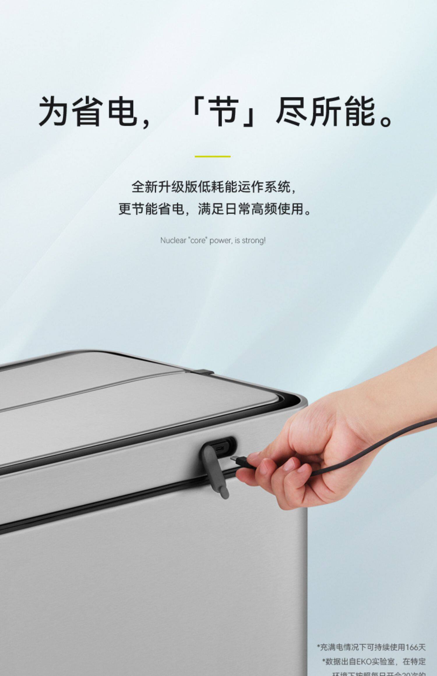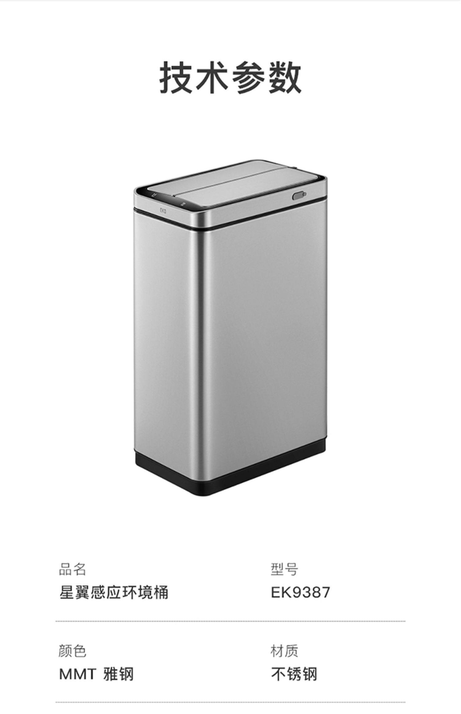 EKO智能感应垃圾桶家用客厅不锈钢轻奢双开盖30L大号厨房垃圾桶