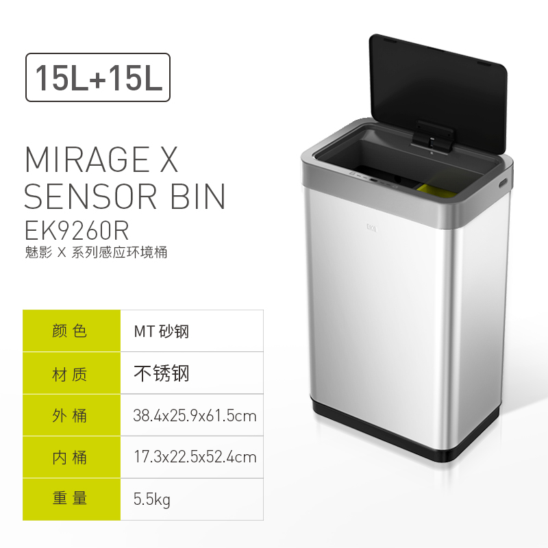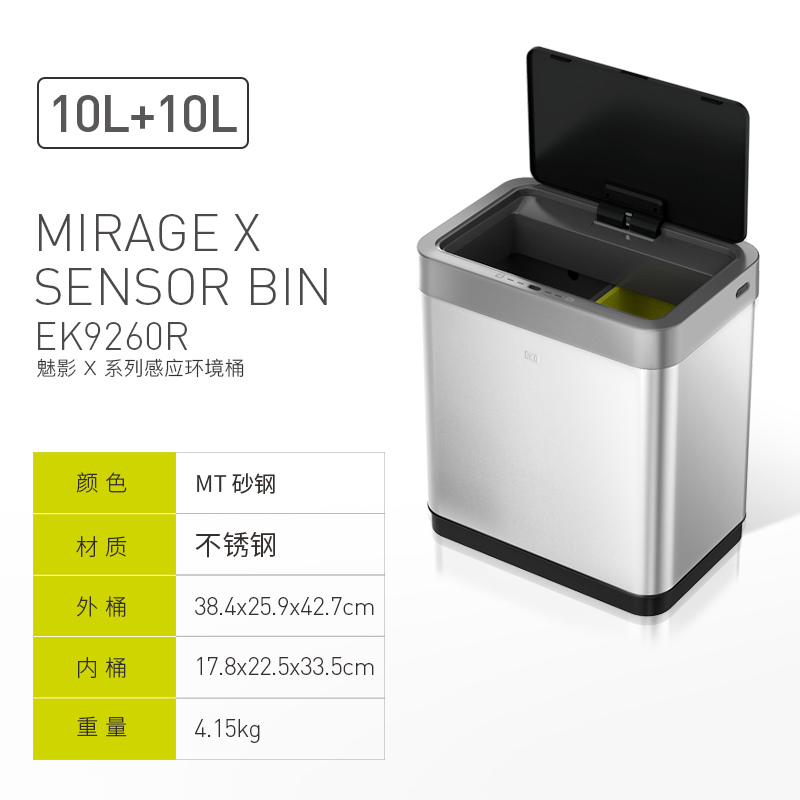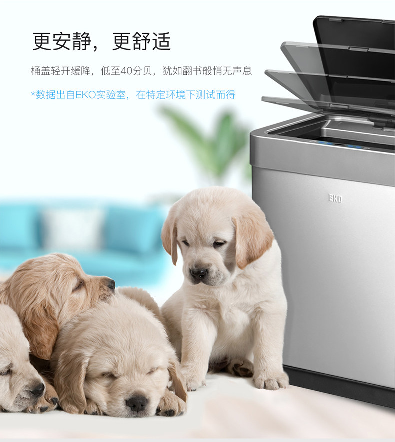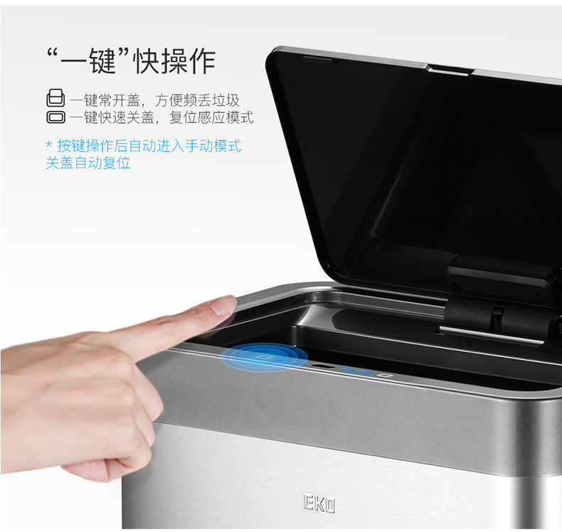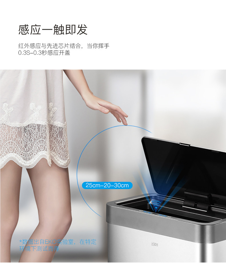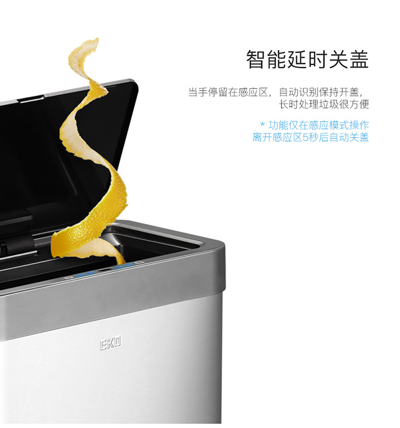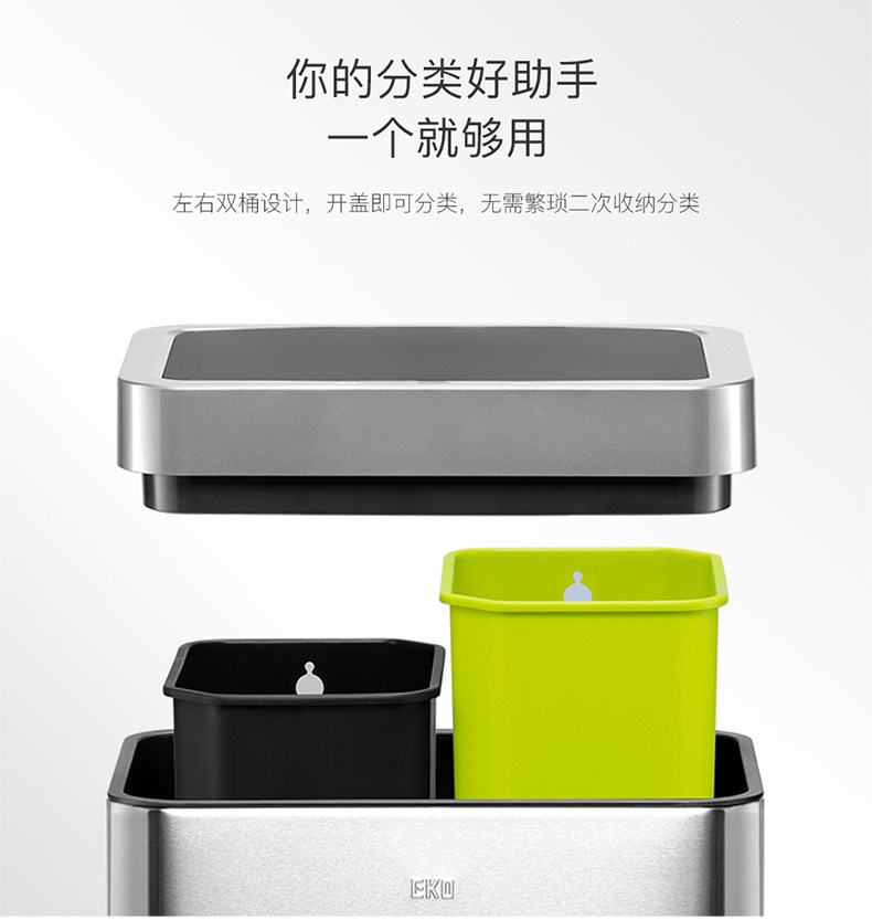 EKO智能感应不锈钢垃圾桶家用客厅高档厨房分类带盖大号桶 EK9260