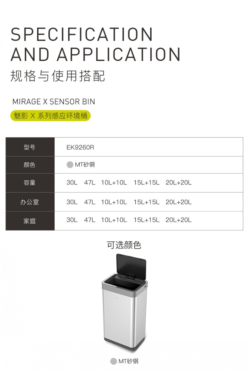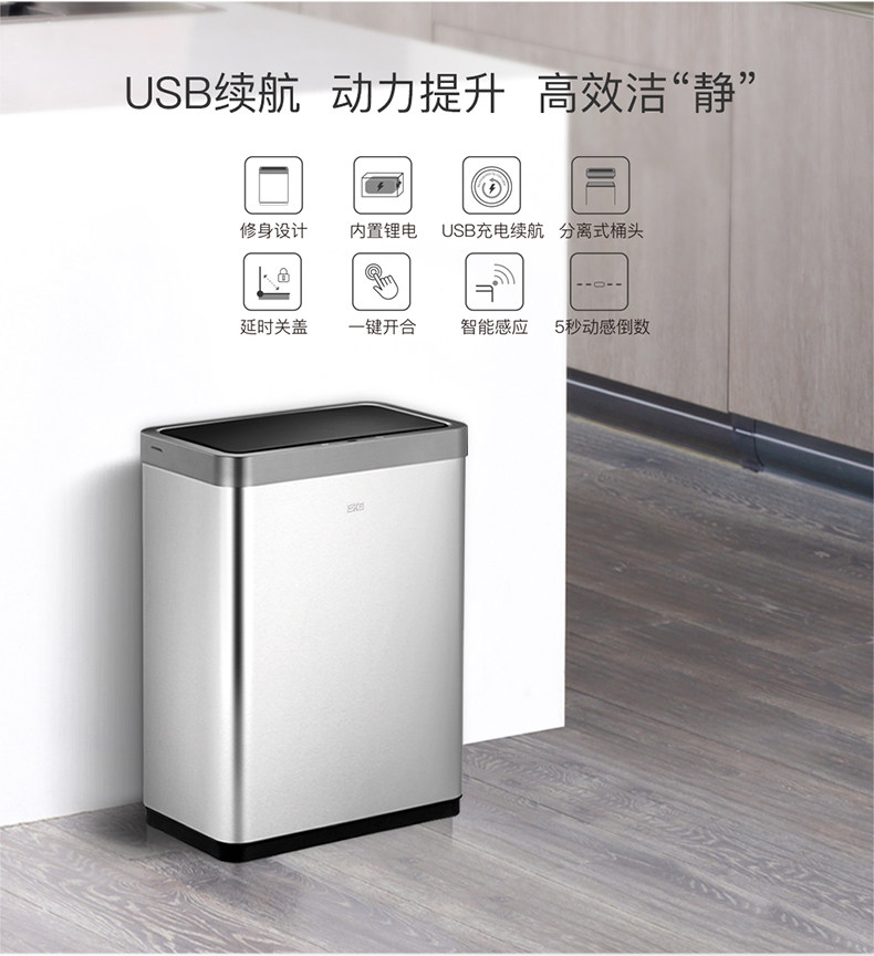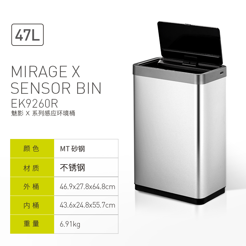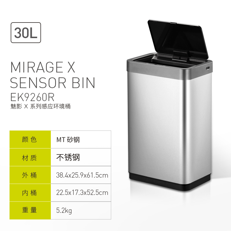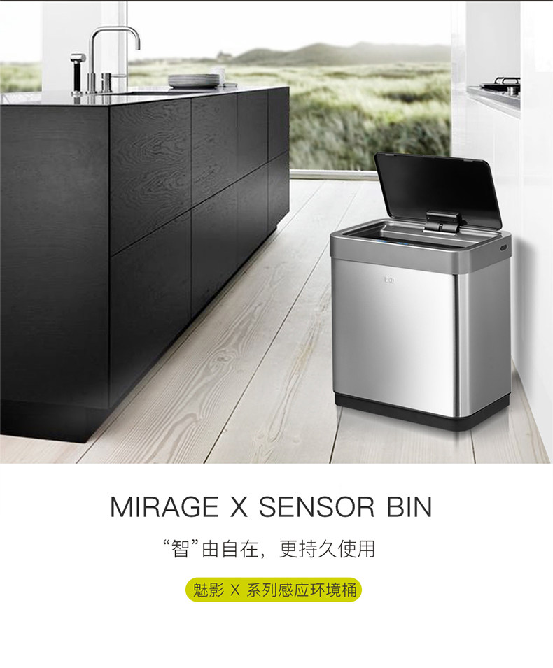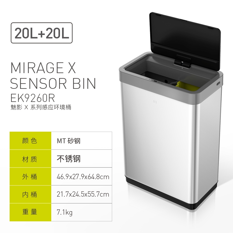 EKO智能感应不锈钢垃圾桶家用客厅高档厨房分类带盖大号桶 EK9260