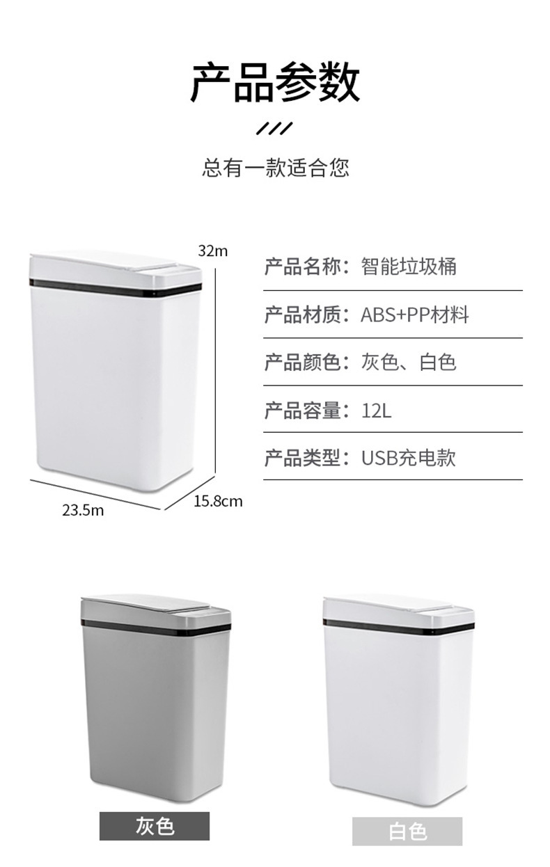跨境中号光能储电智能感应垃圾桶家用客厅厨房电动收纳打logo外贸