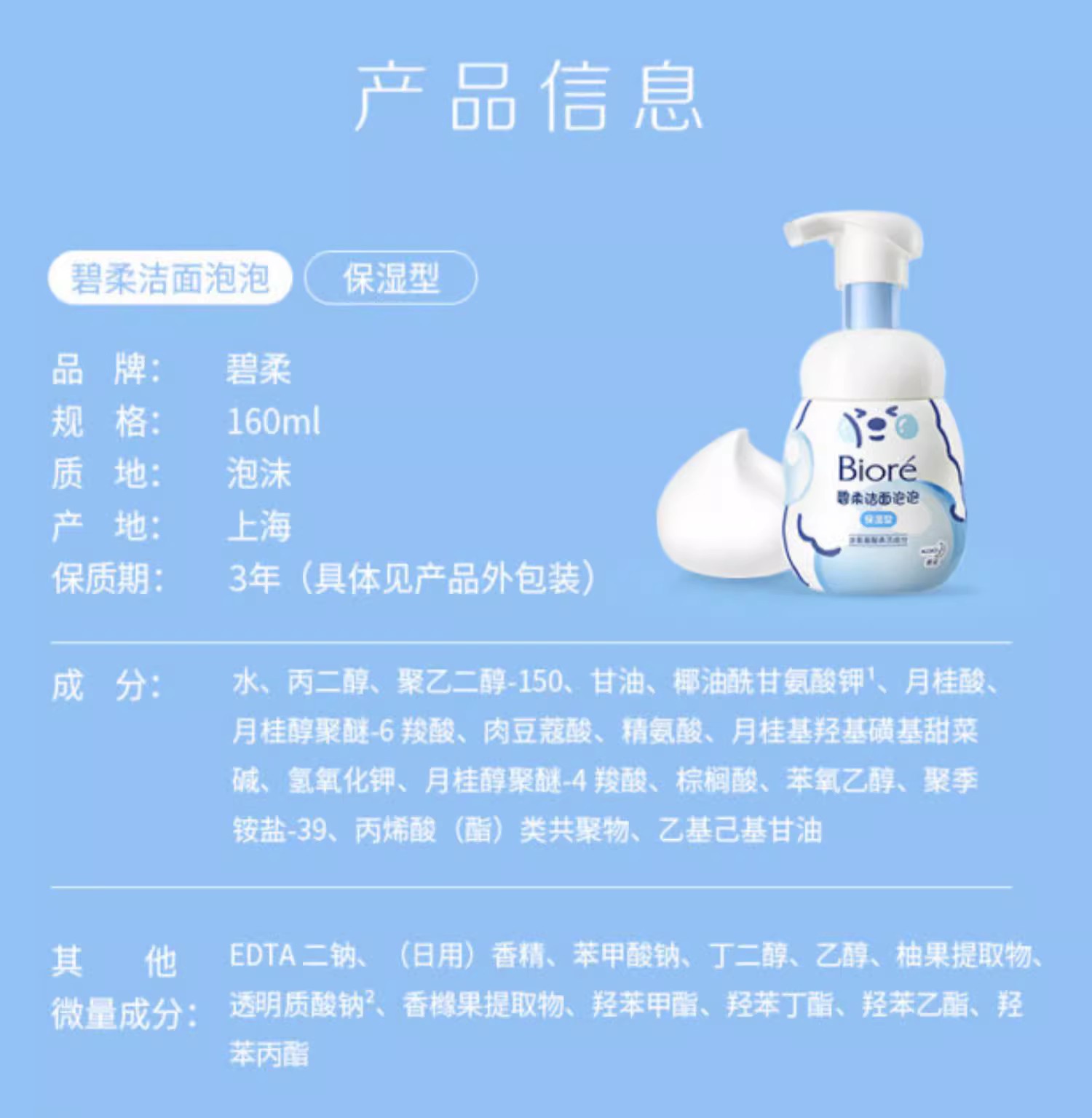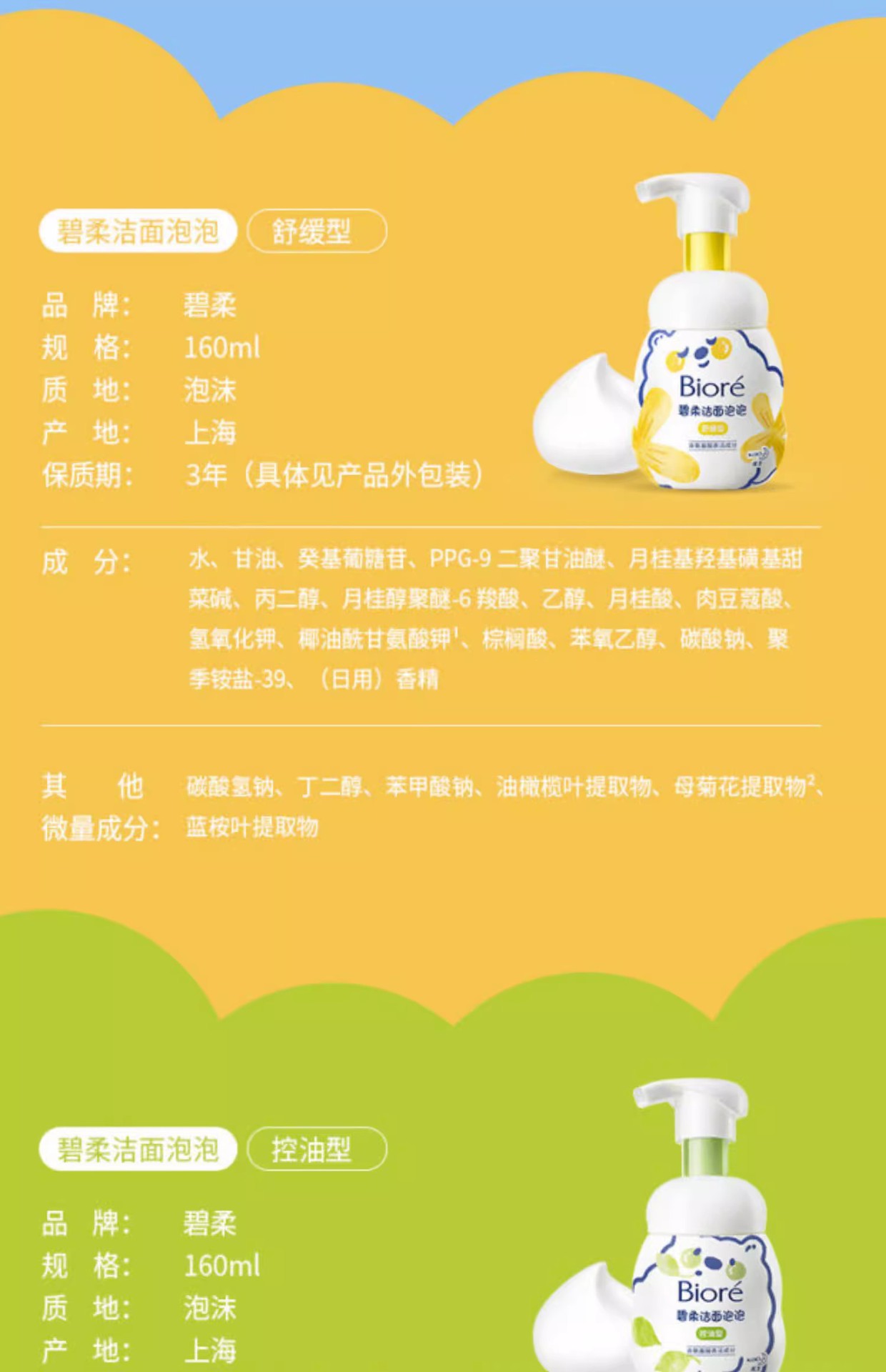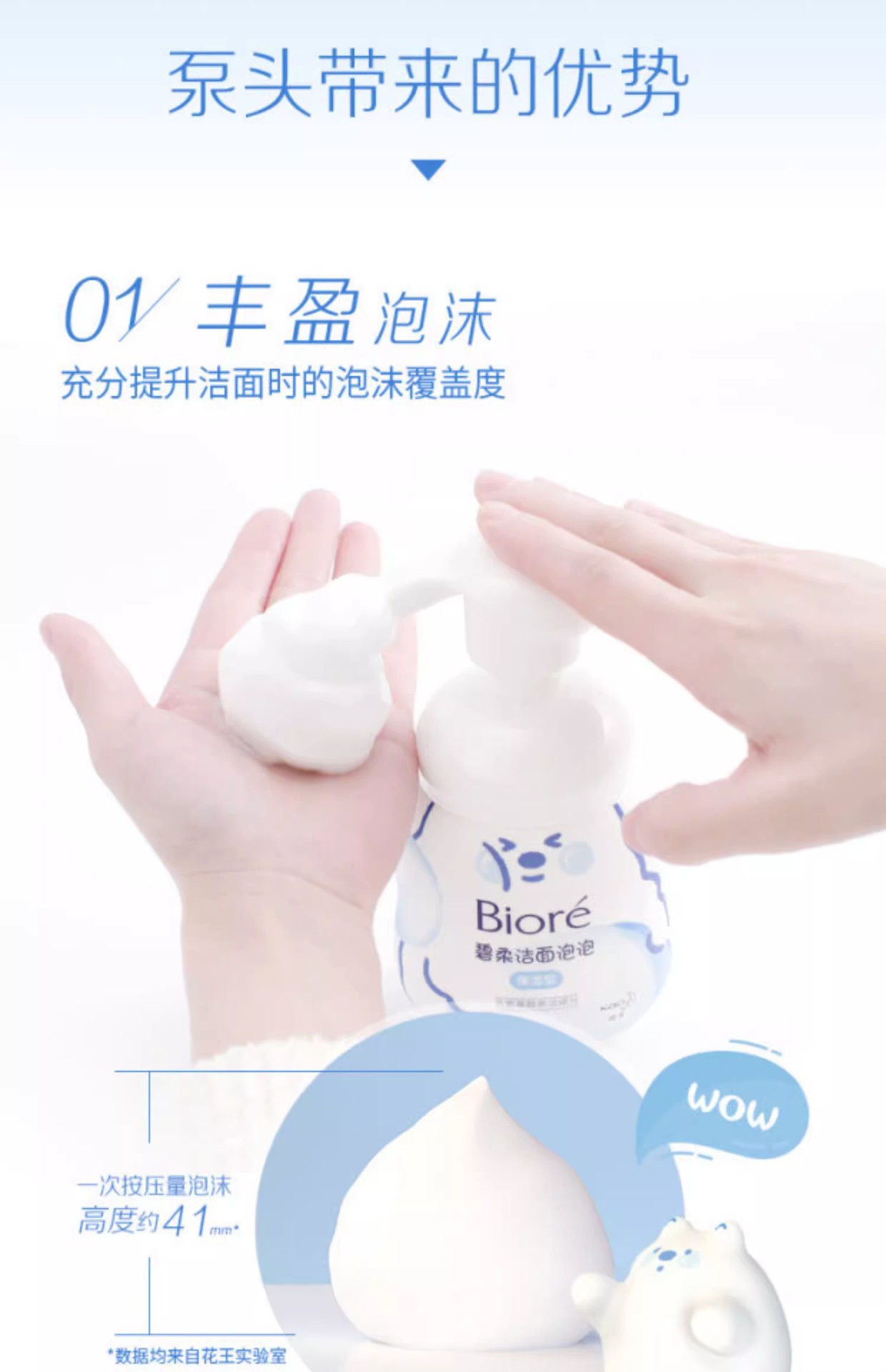 花王碧柔洁面泡泡温和清洁按压式微米泡保湿洗面奶160ml小熊款