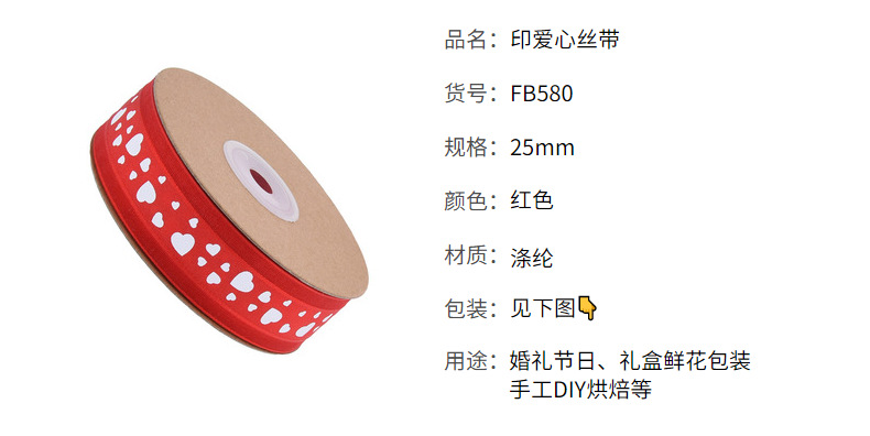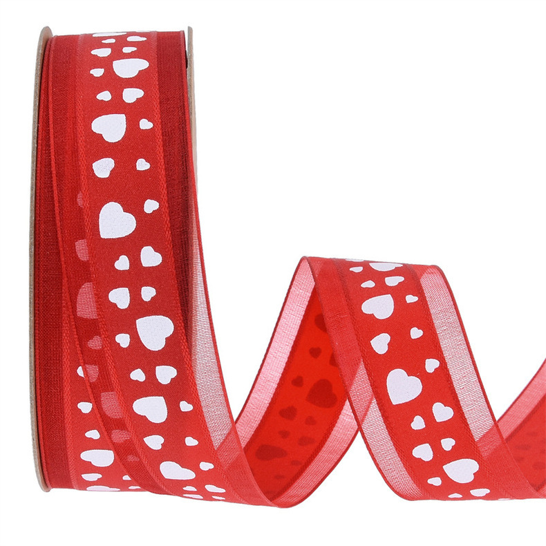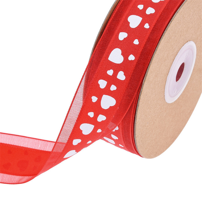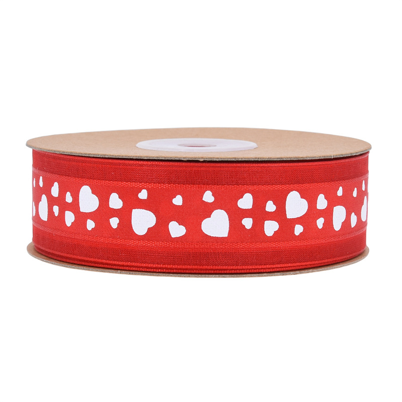 韩版经典双边涤纶雪纱带印爱心丝带装饰包装带diy发饰发夹红绸带