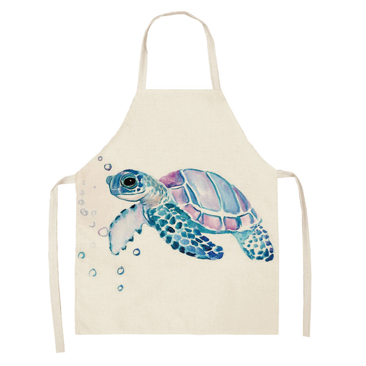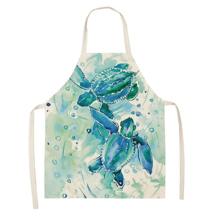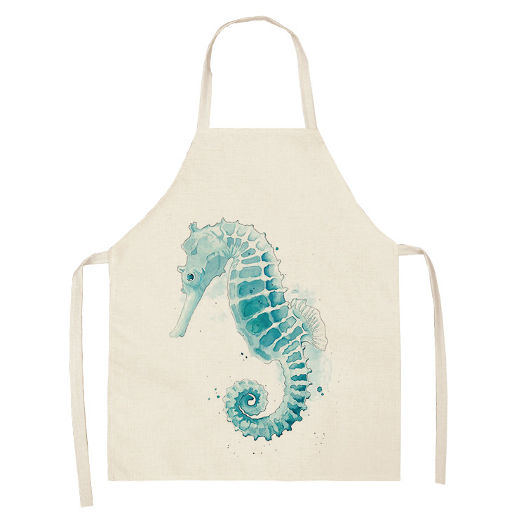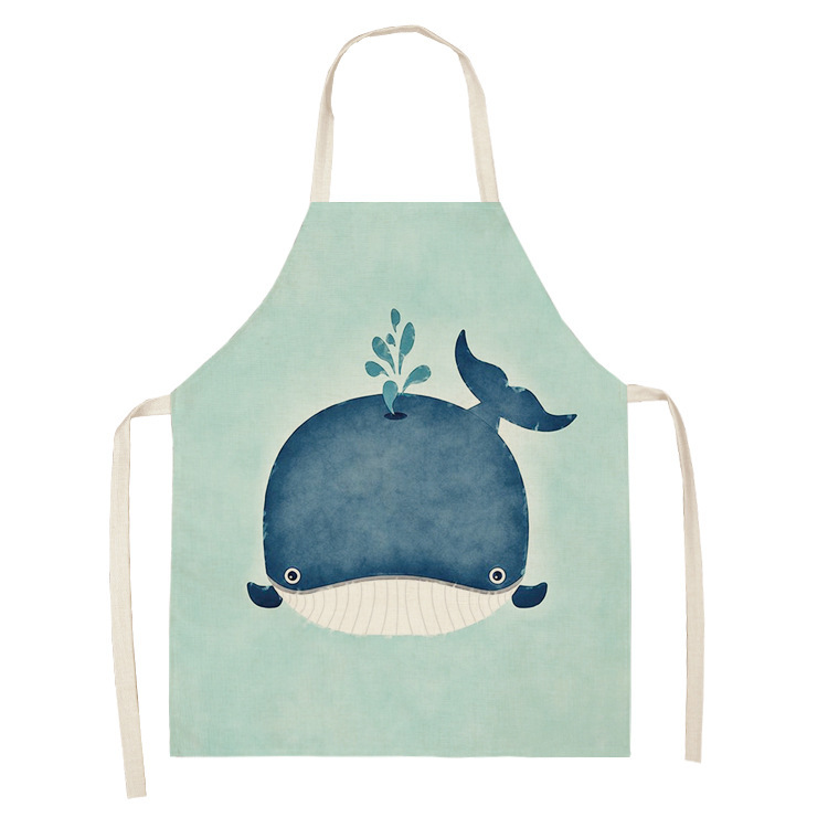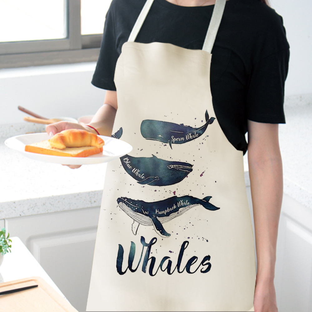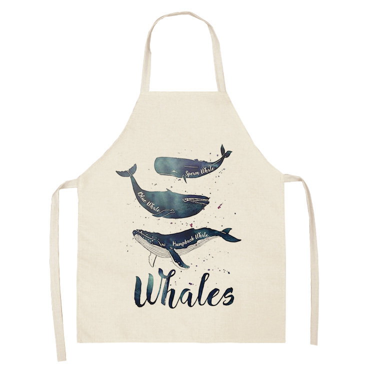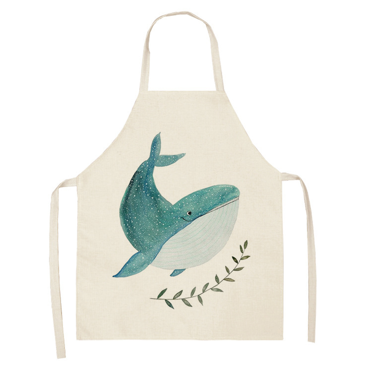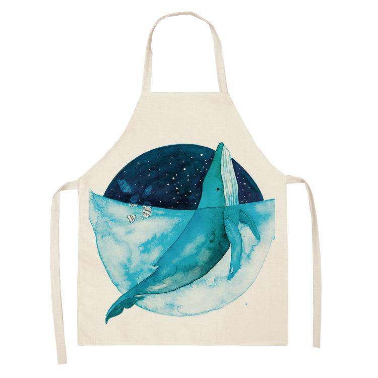 创意海洋系列印花围裙 厨房棉麻围裙 防水防油污家用罩衣可定logo