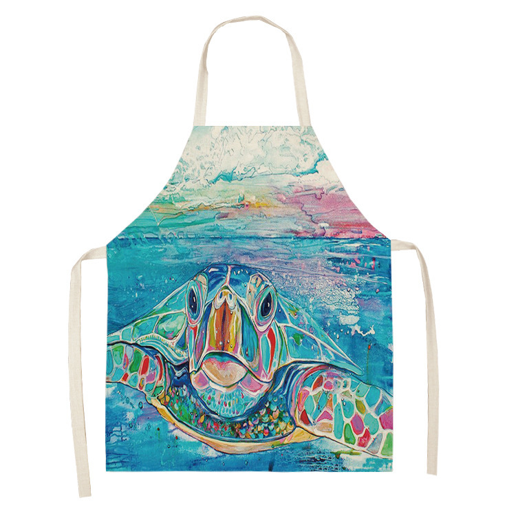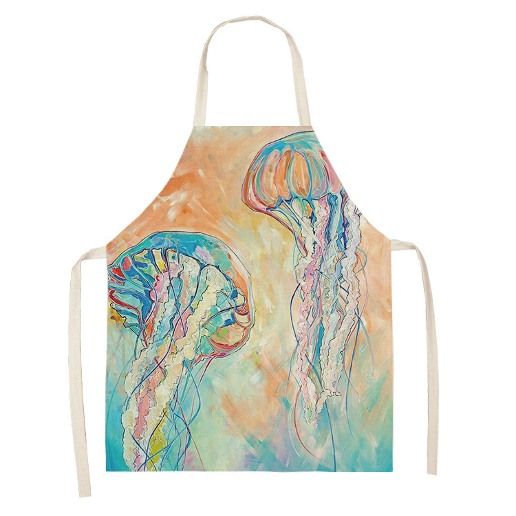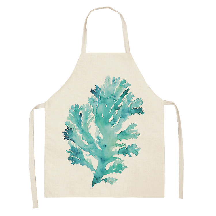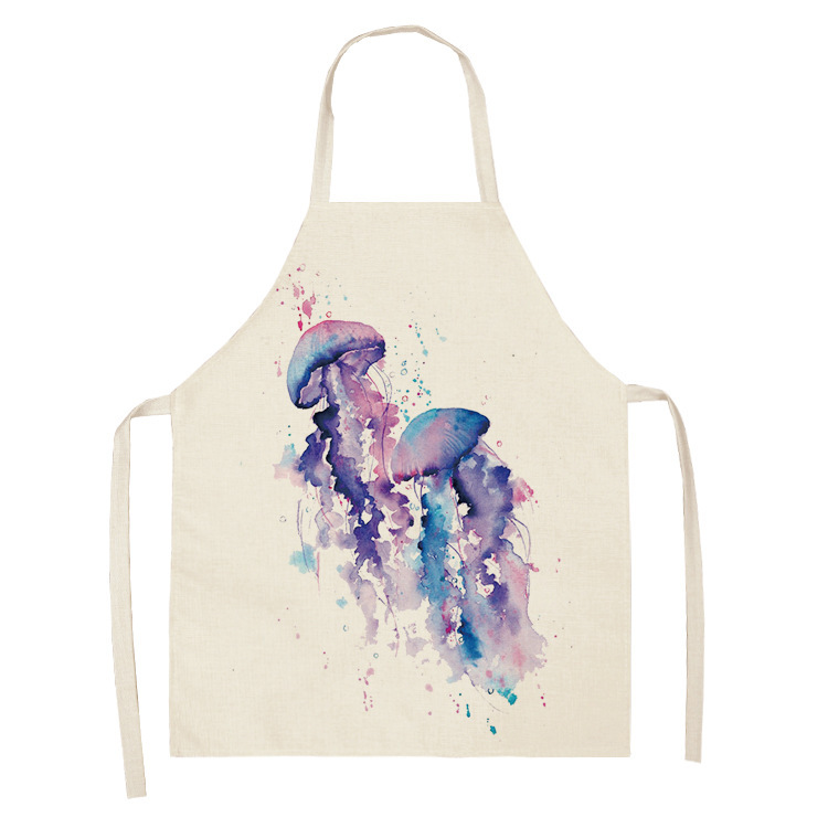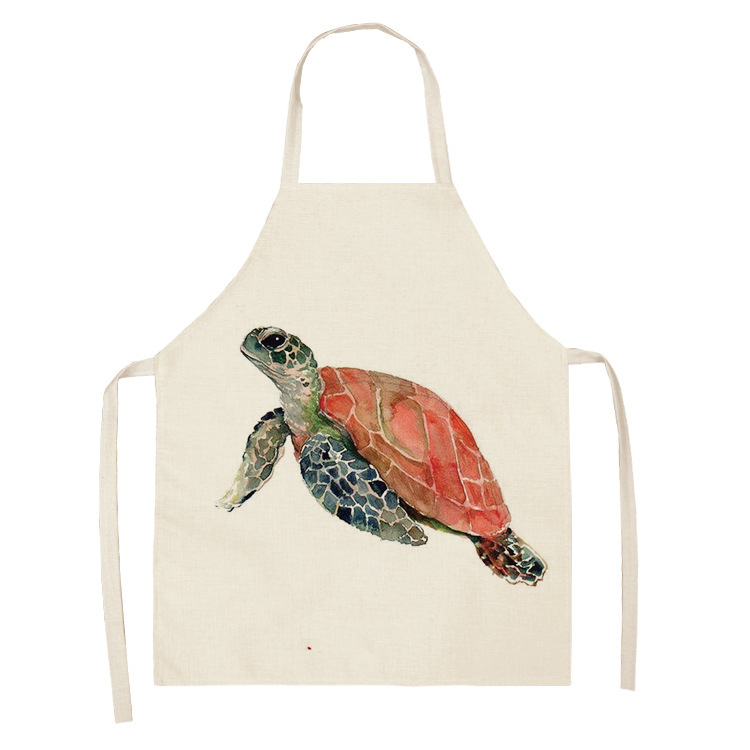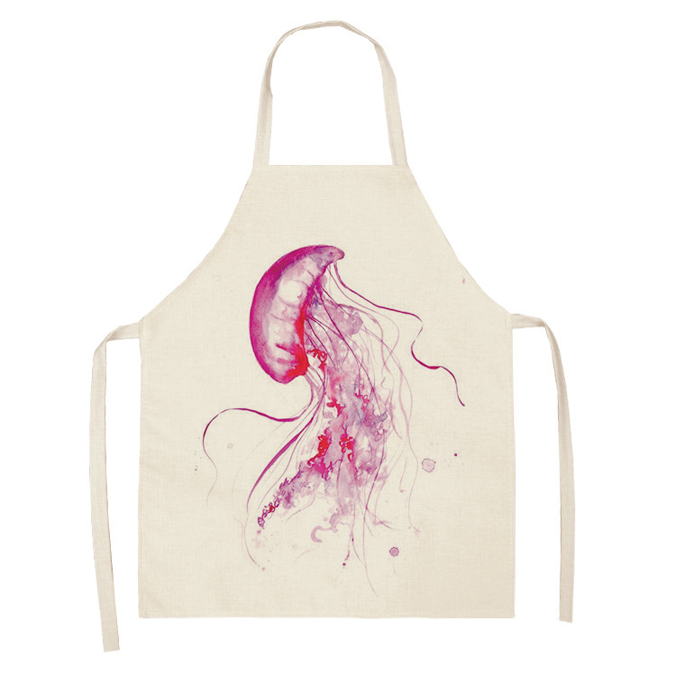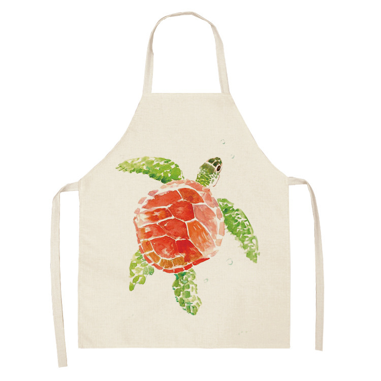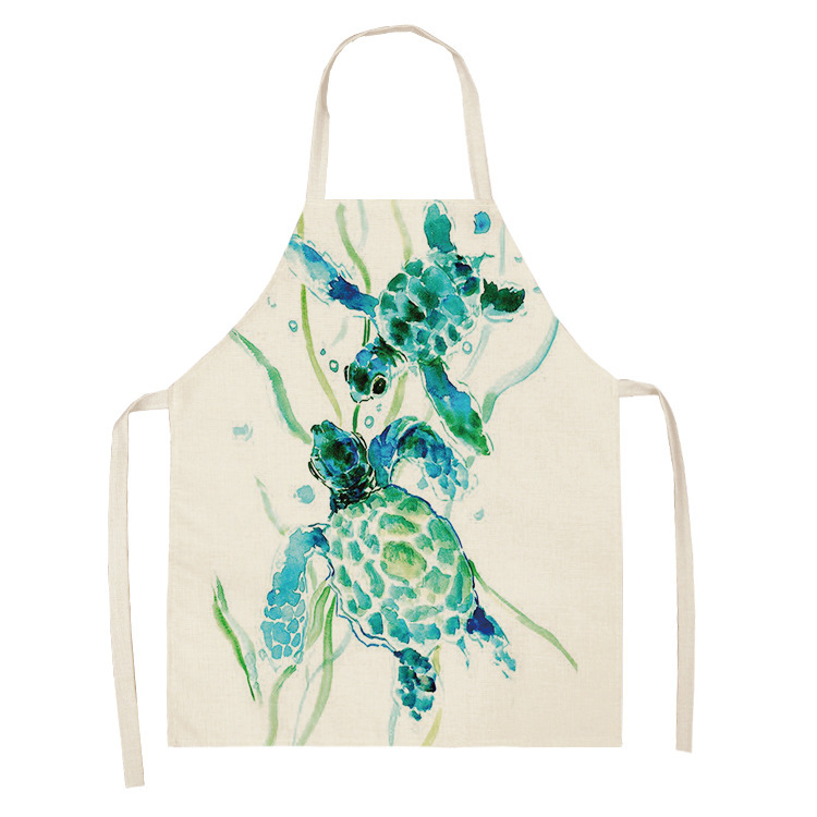 创意海洋系列印花围裙 厨房棉麻围裙 防水防油污家用罩衣可定logo