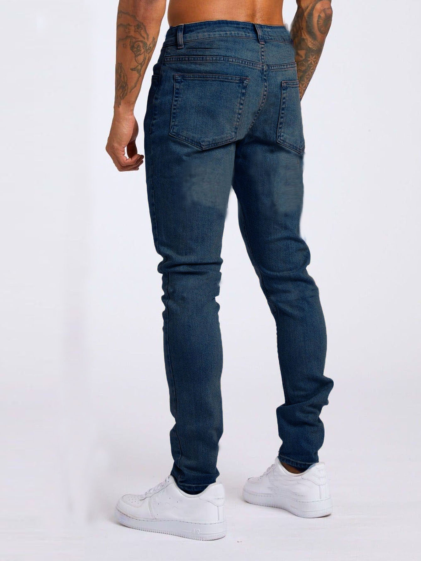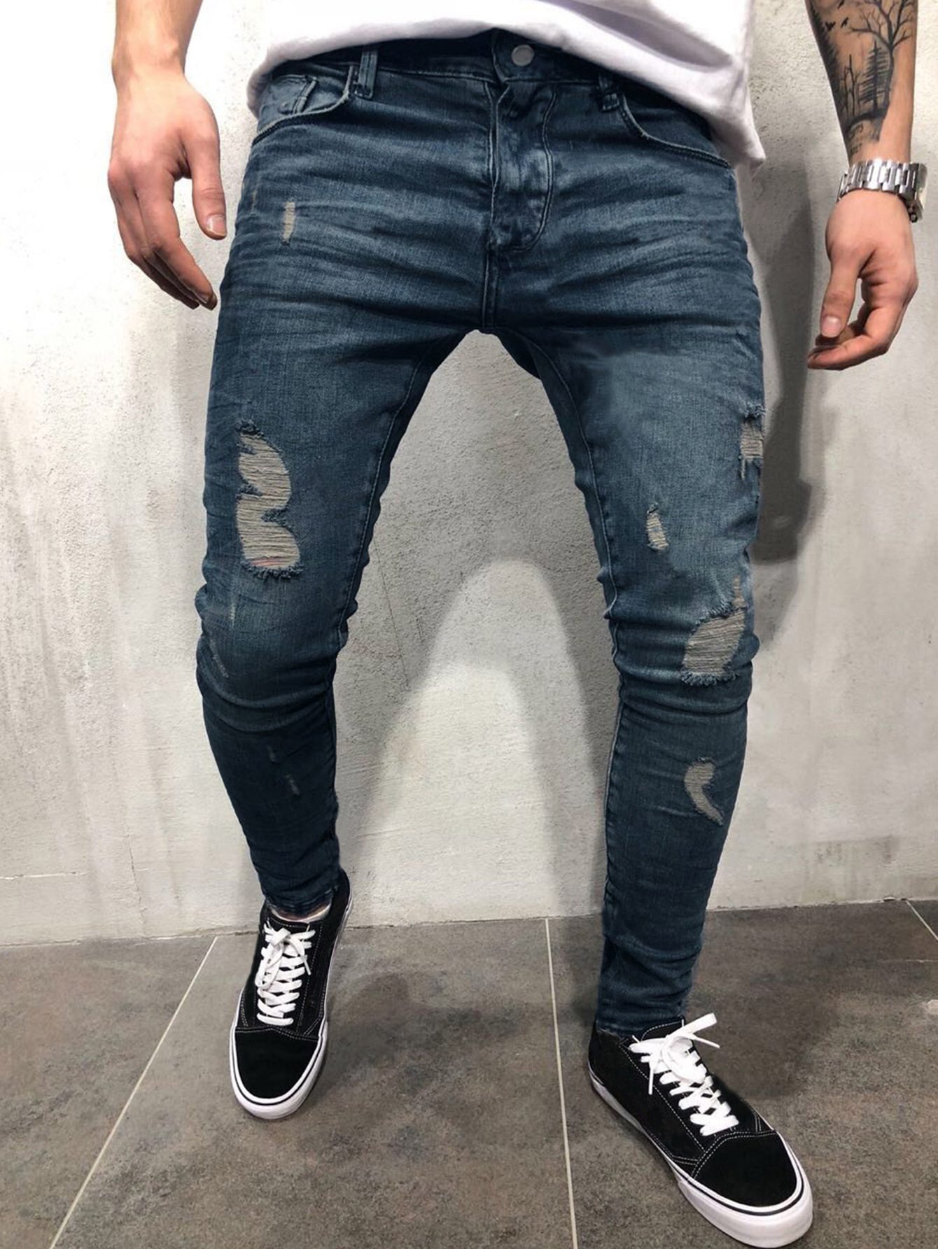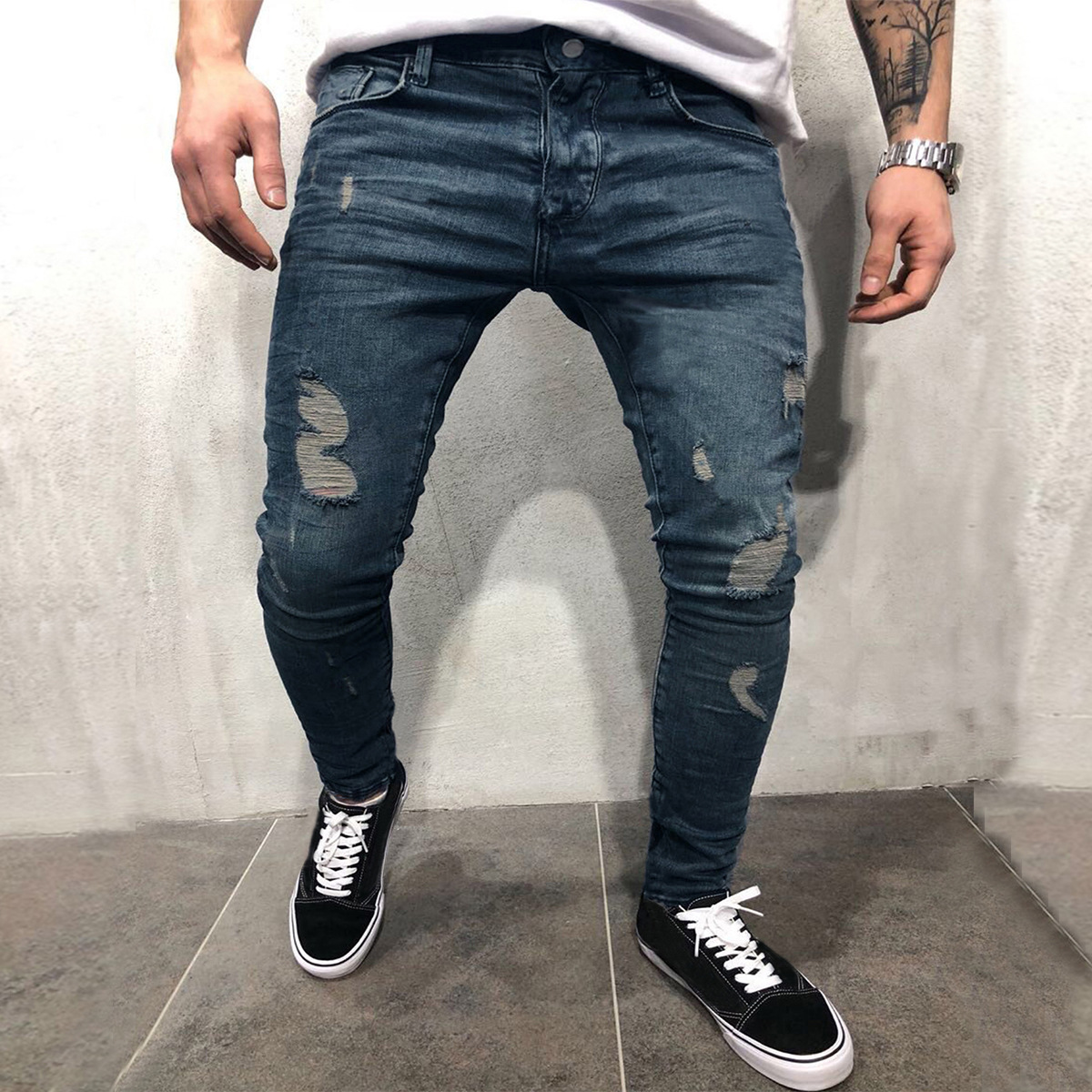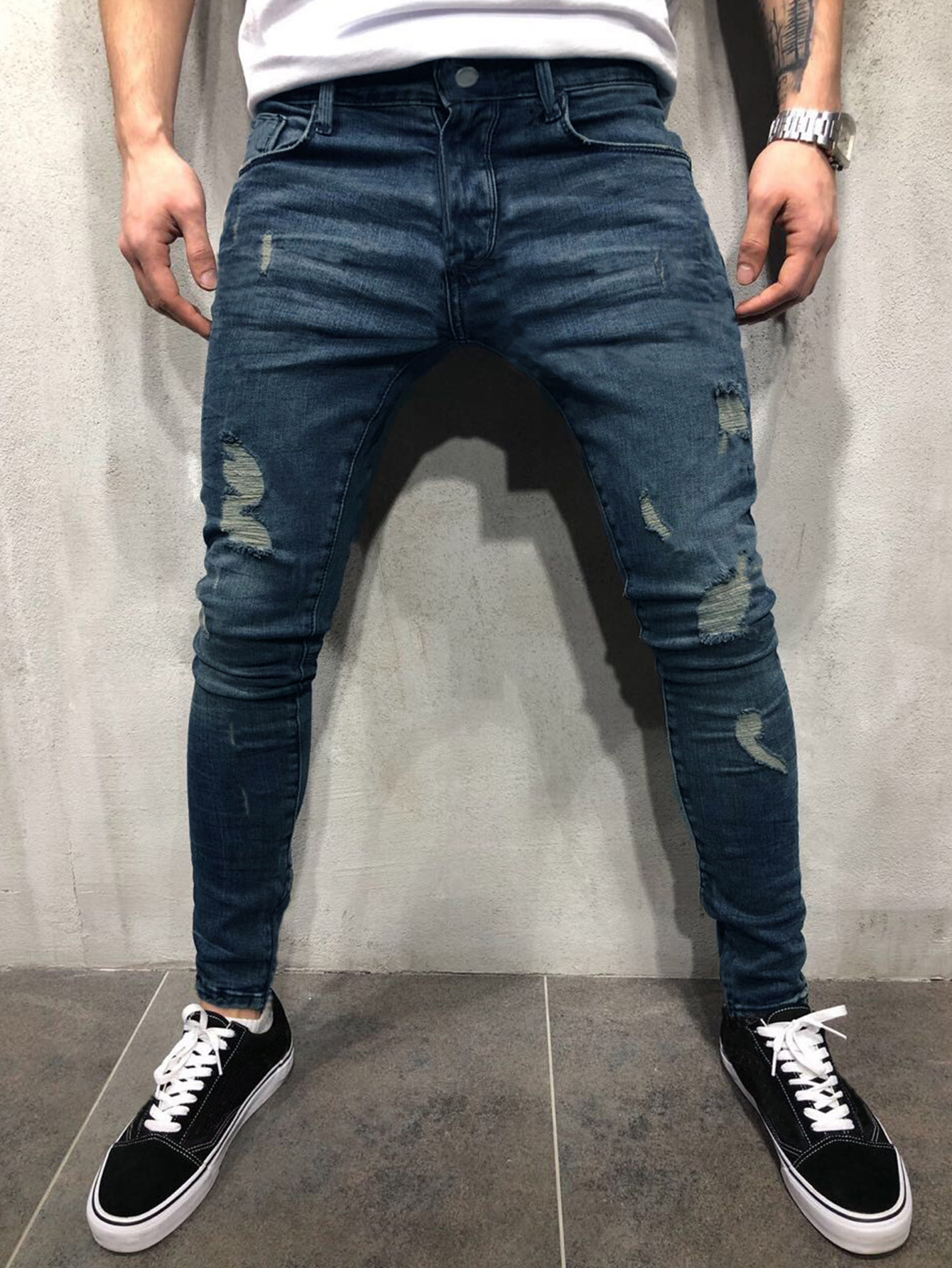 欧美速卖通新款牛仔男裤跨境外贸破洞潮流黑色修身牛仔小脚裤男