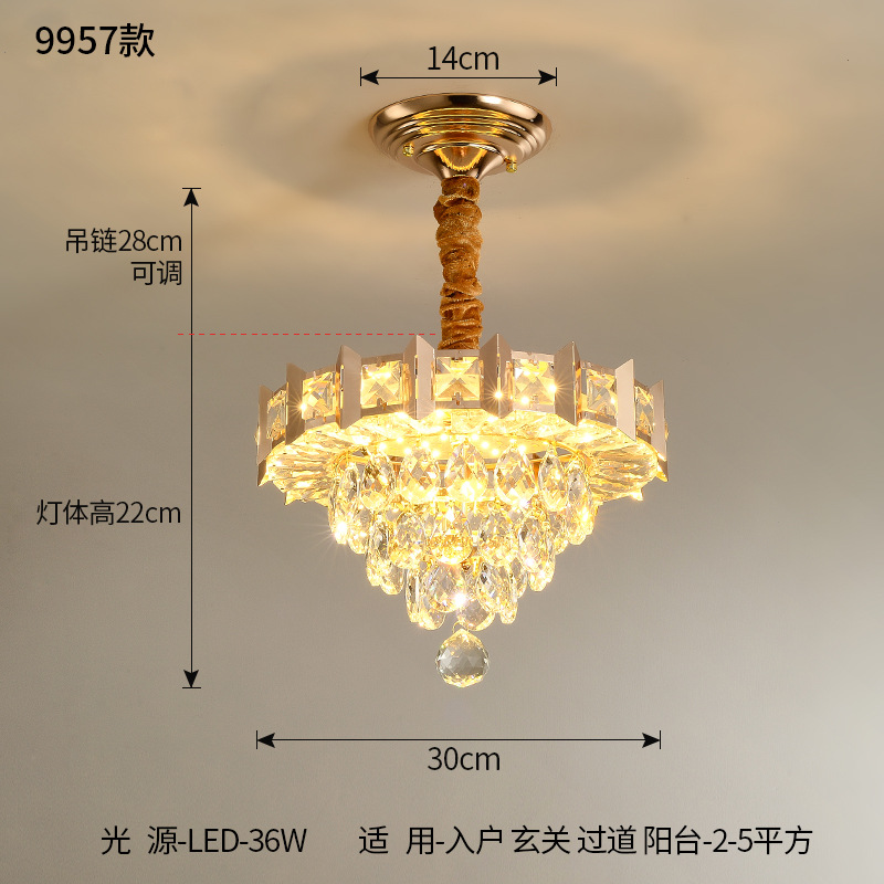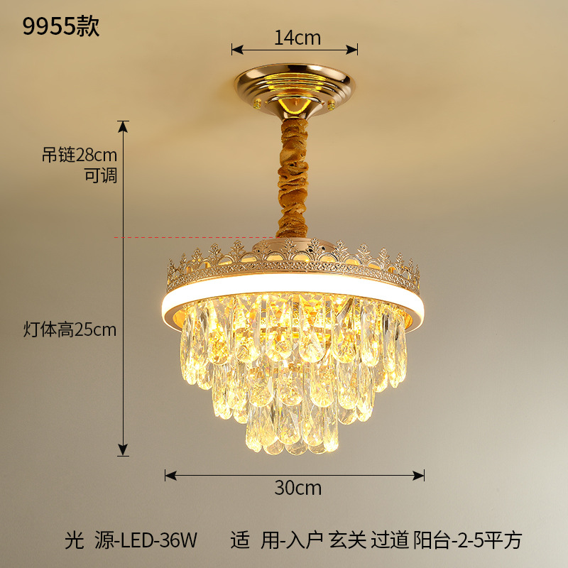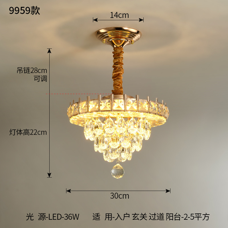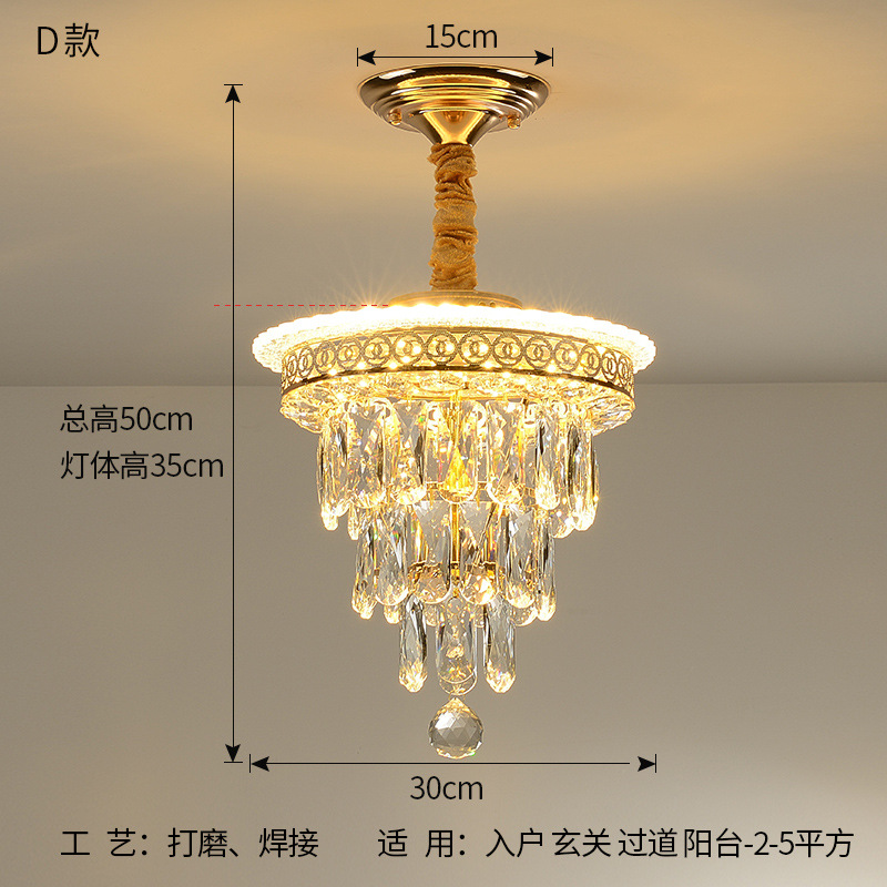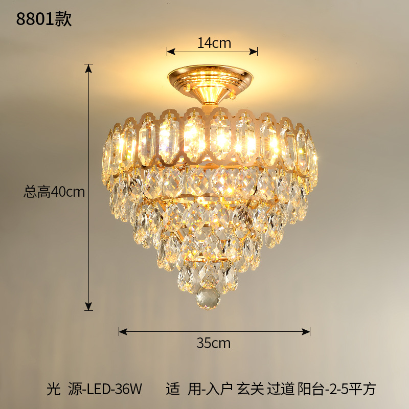 外贸专供美式轻奢水晶小吊灯过道走廊欧式后入户玄关阳台灯具