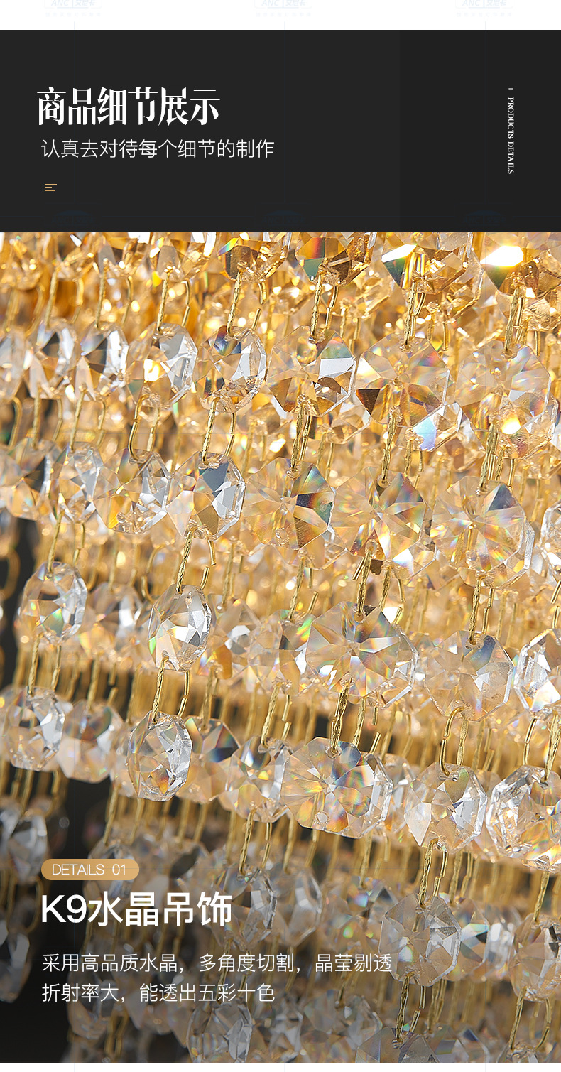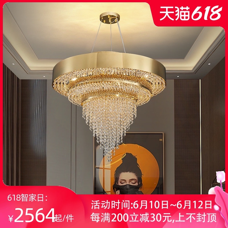 外贸专供后轻奢家用水晶吊灯设计师别墅复式楼简约大气客厅灯