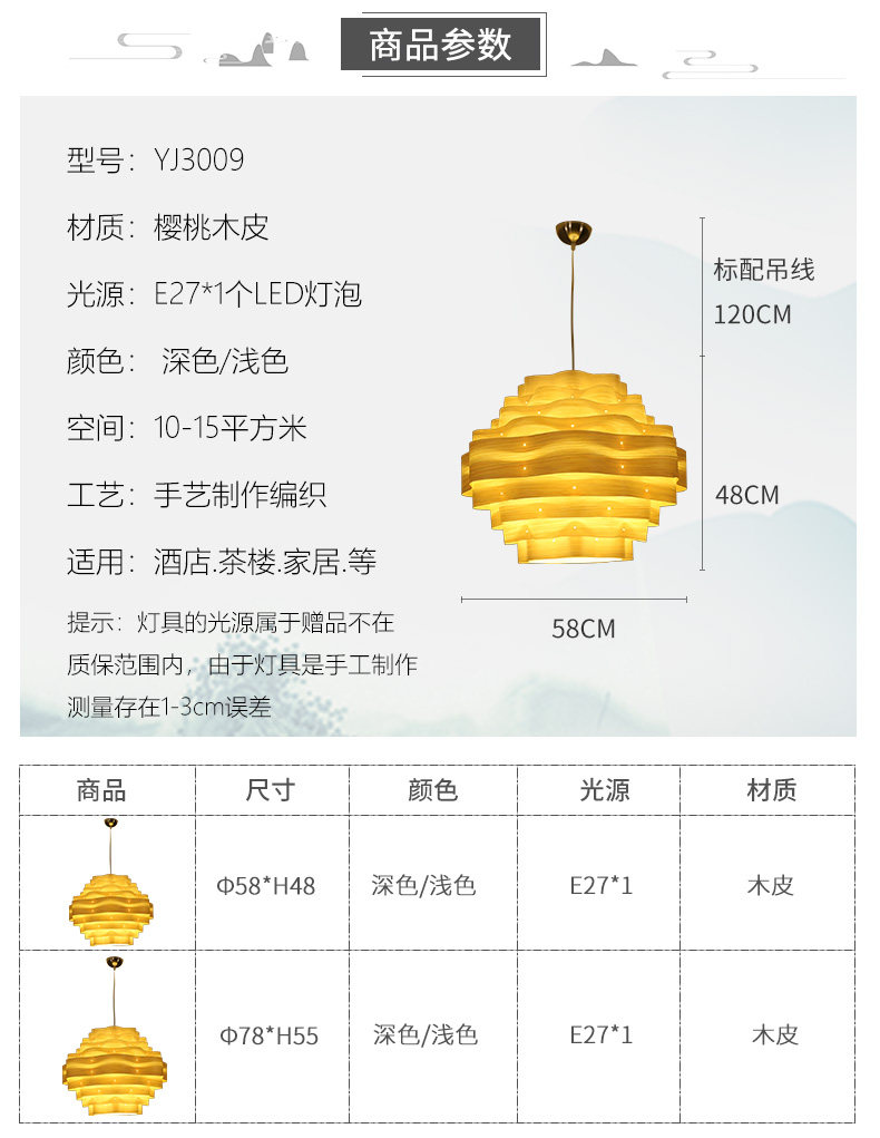 外贸专供东南亚吊灯简约客厅书房灯民宿吧台餐馆木皮灯具