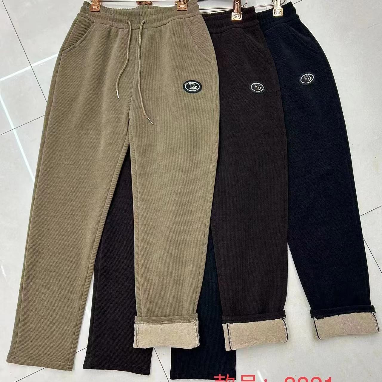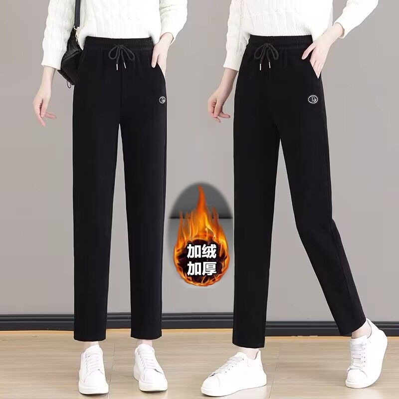 欧棉绒哈伦裤2023秋冬新款宽松显瘦直筒裤加绒加厚百搭小脚休闲裤